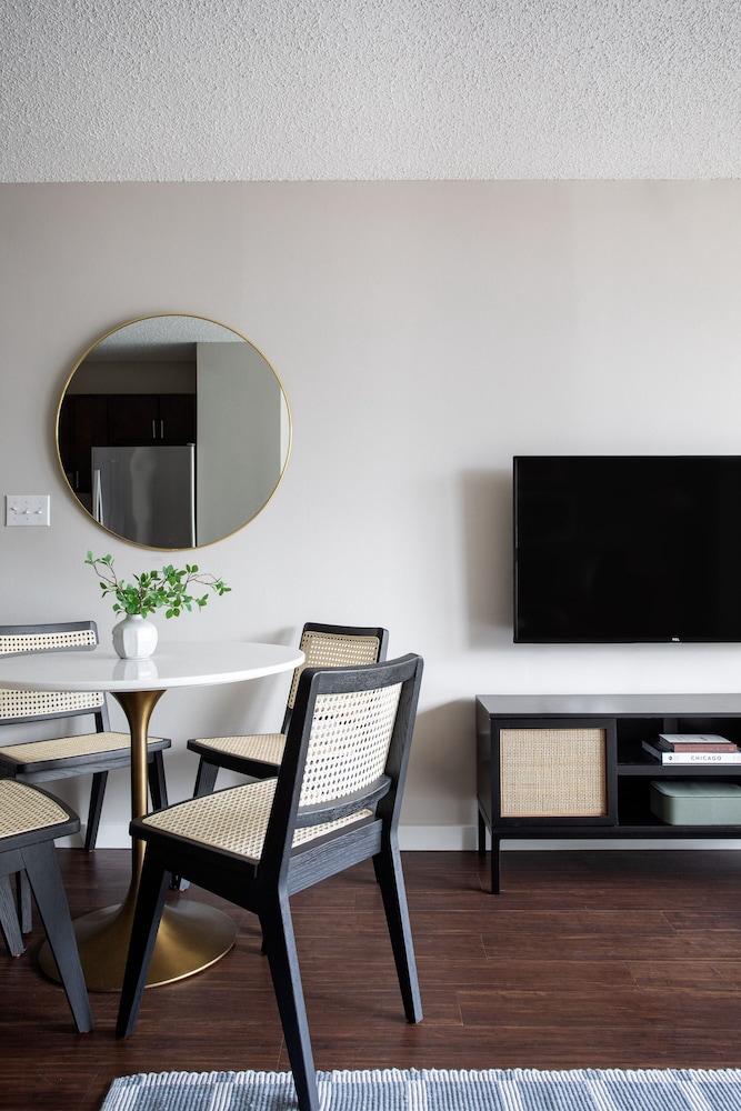Great location for shops, restaurants, bars. The river was a 10-15 minute walk away. Pretty easy to get to from O’Hare on the blue line.