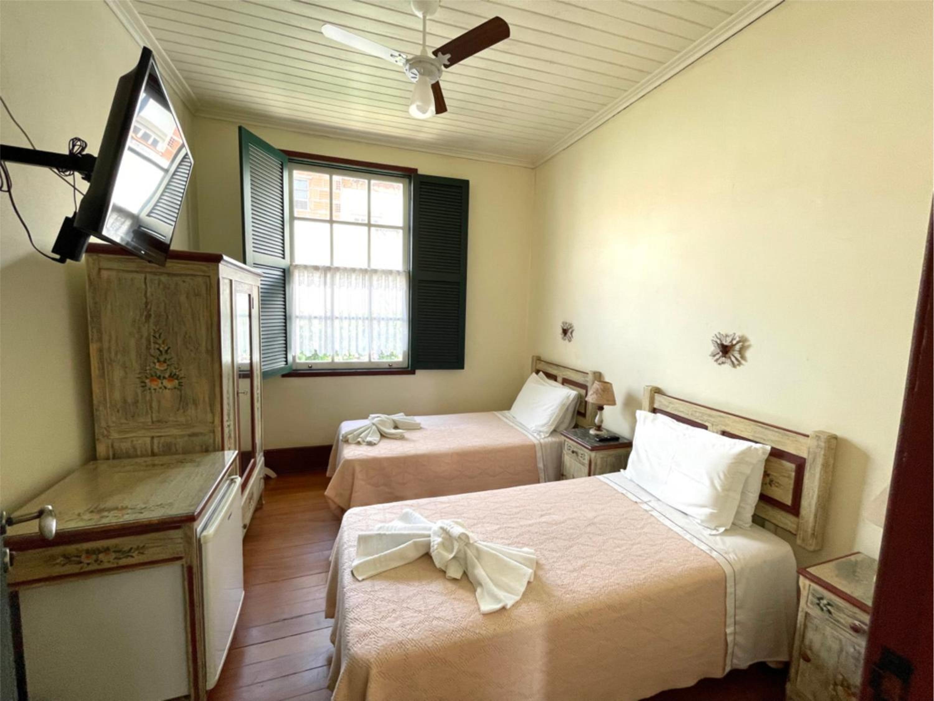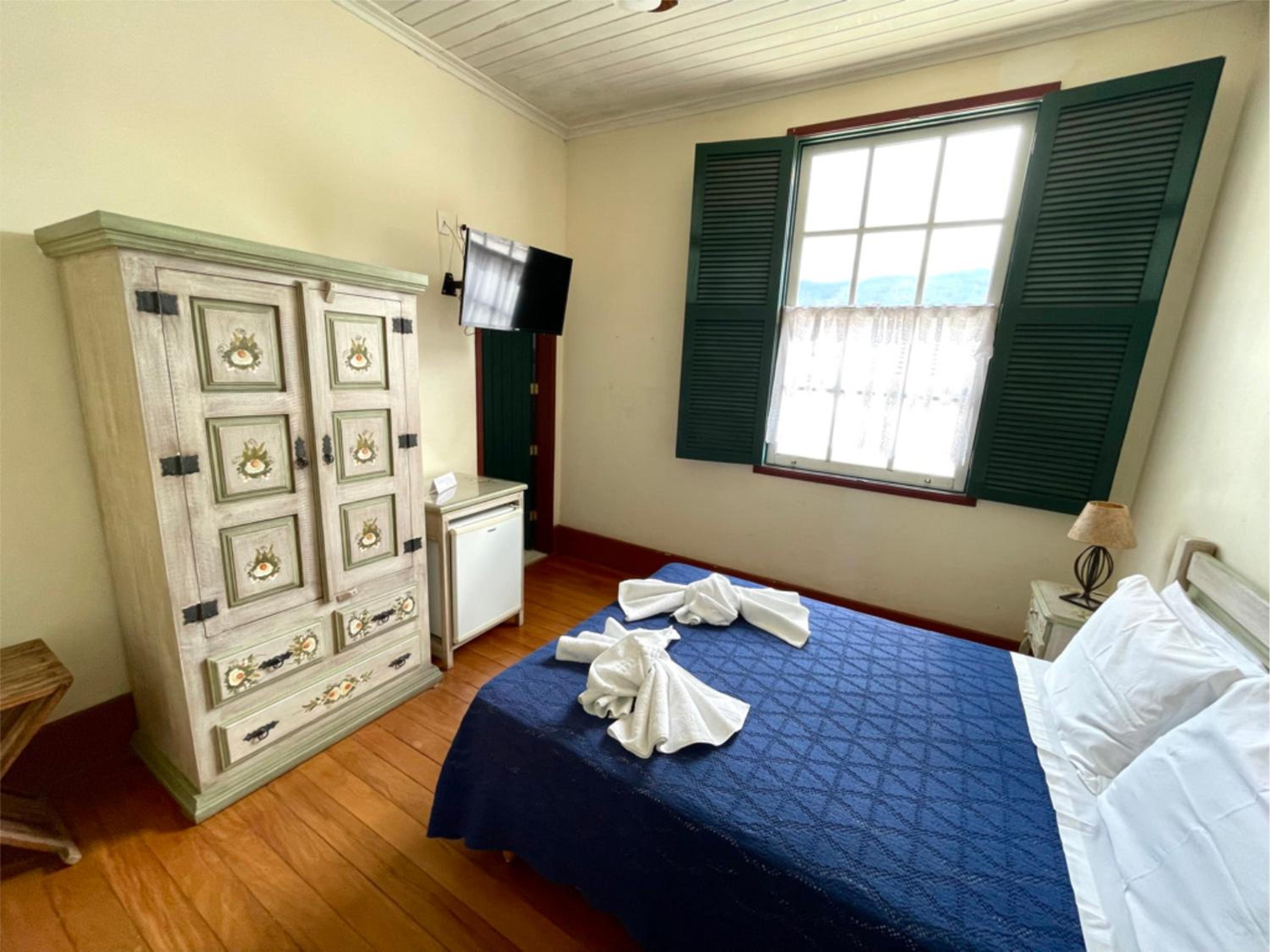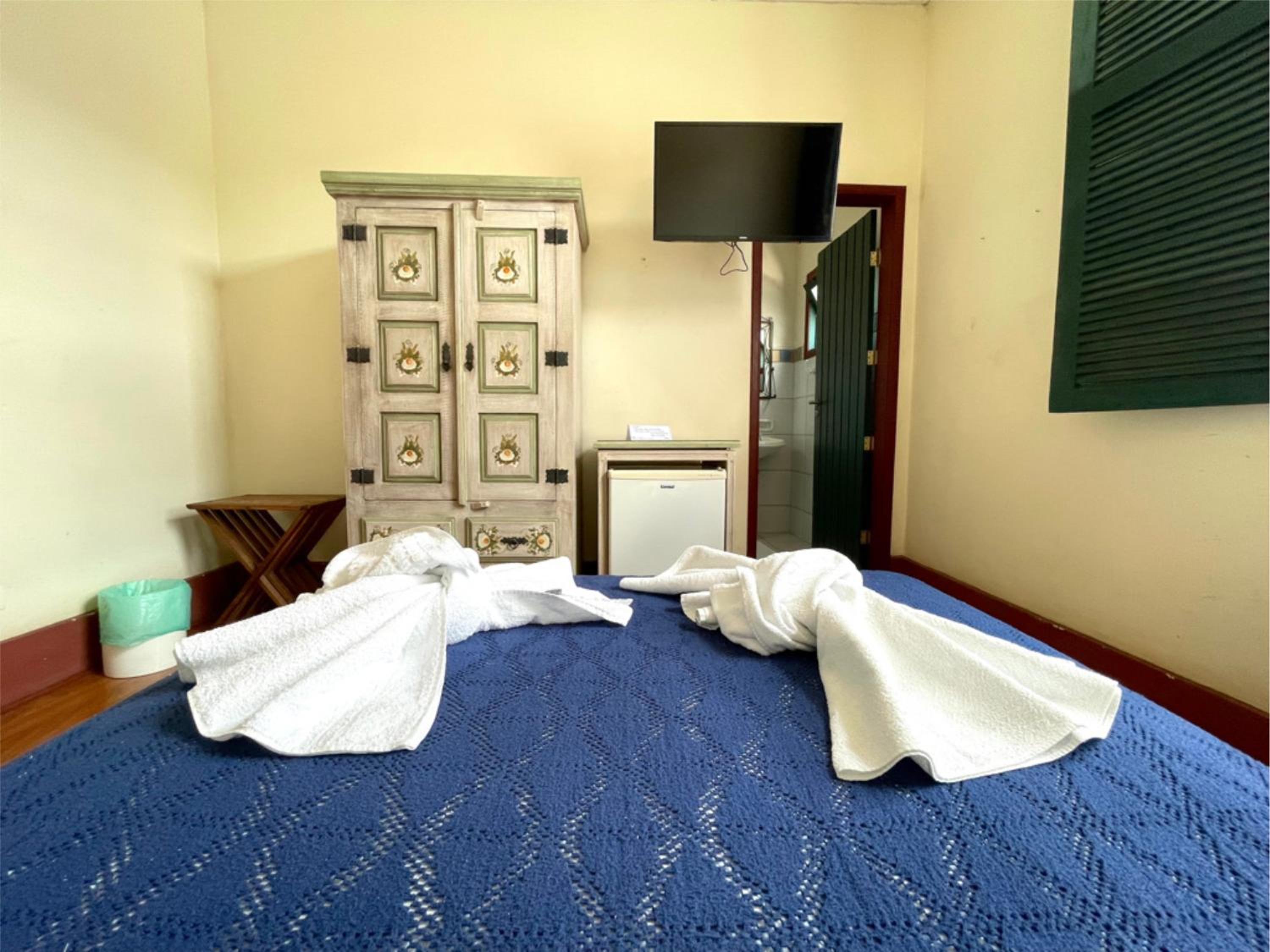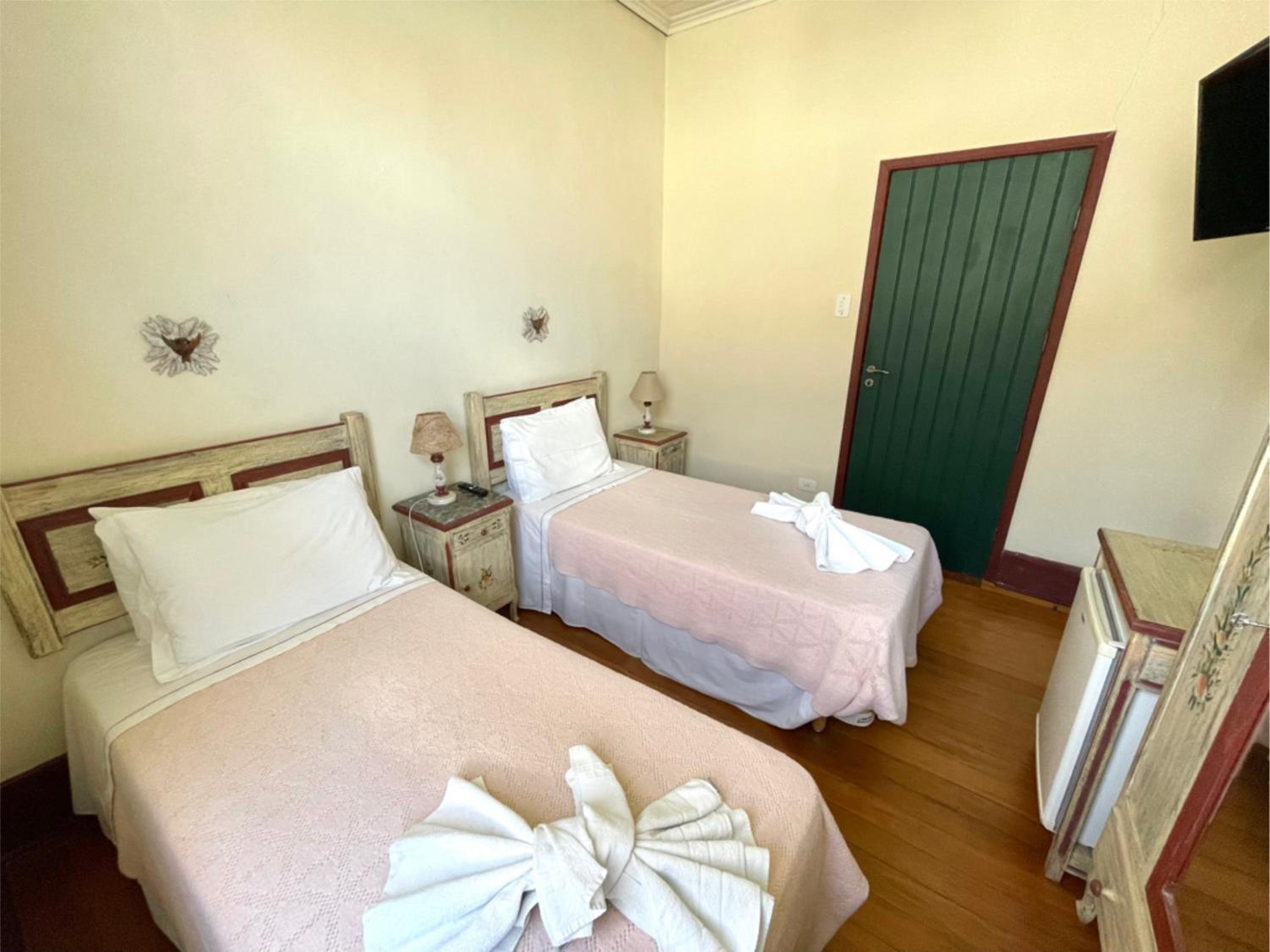 Pousada do Duque in Lambari offers a luxurious stay with well-equipped rooms featuring modern amenities like TV, fridge, and comfortable bedding.
