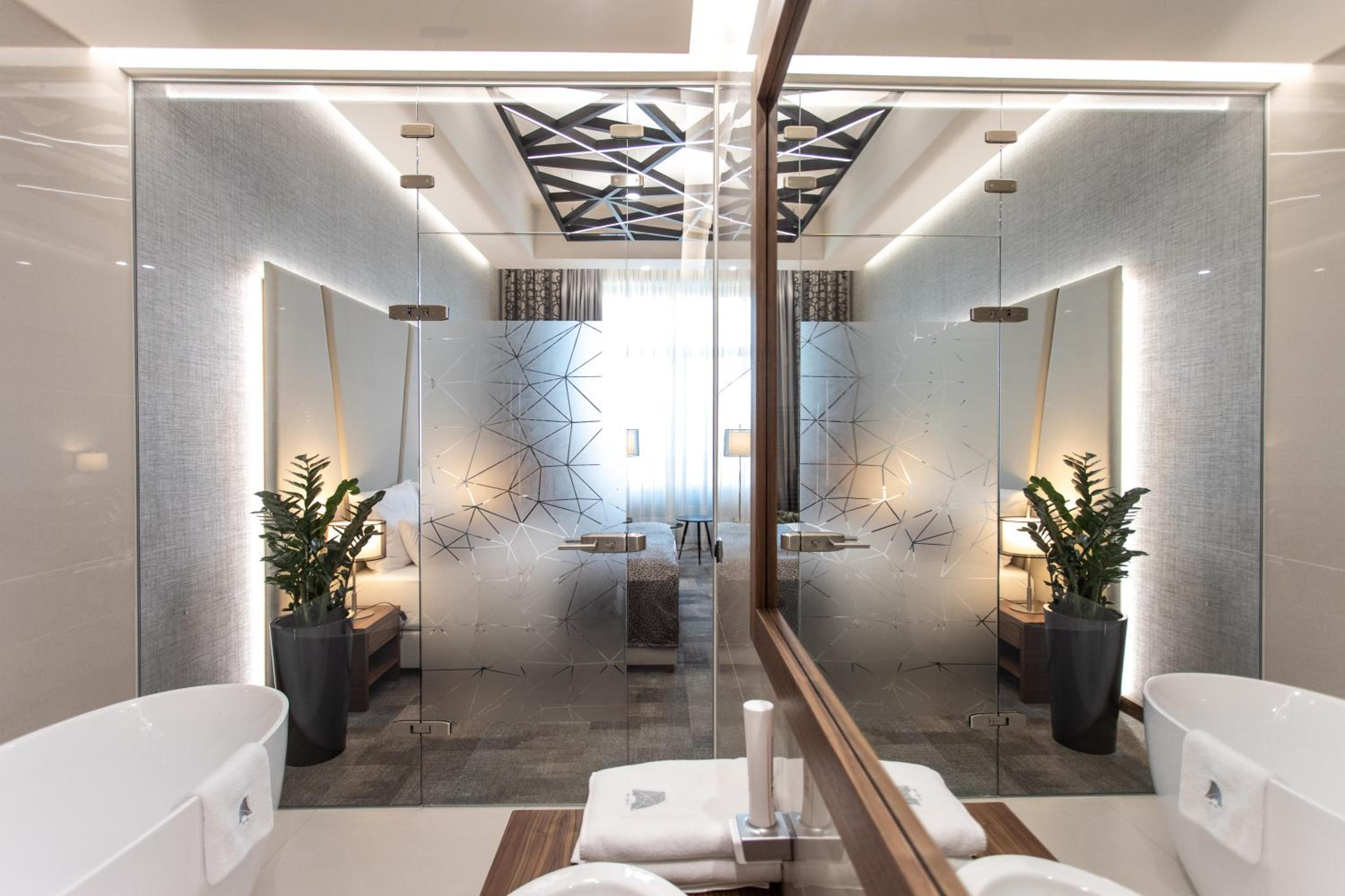 Nagyon szépen megtervezett szálloda, a design szuper volt. A szoba nagyon tágas és kényelmes. A szálloda kapszulás kávéval és ásványvíz bekészítéssel várt minket.