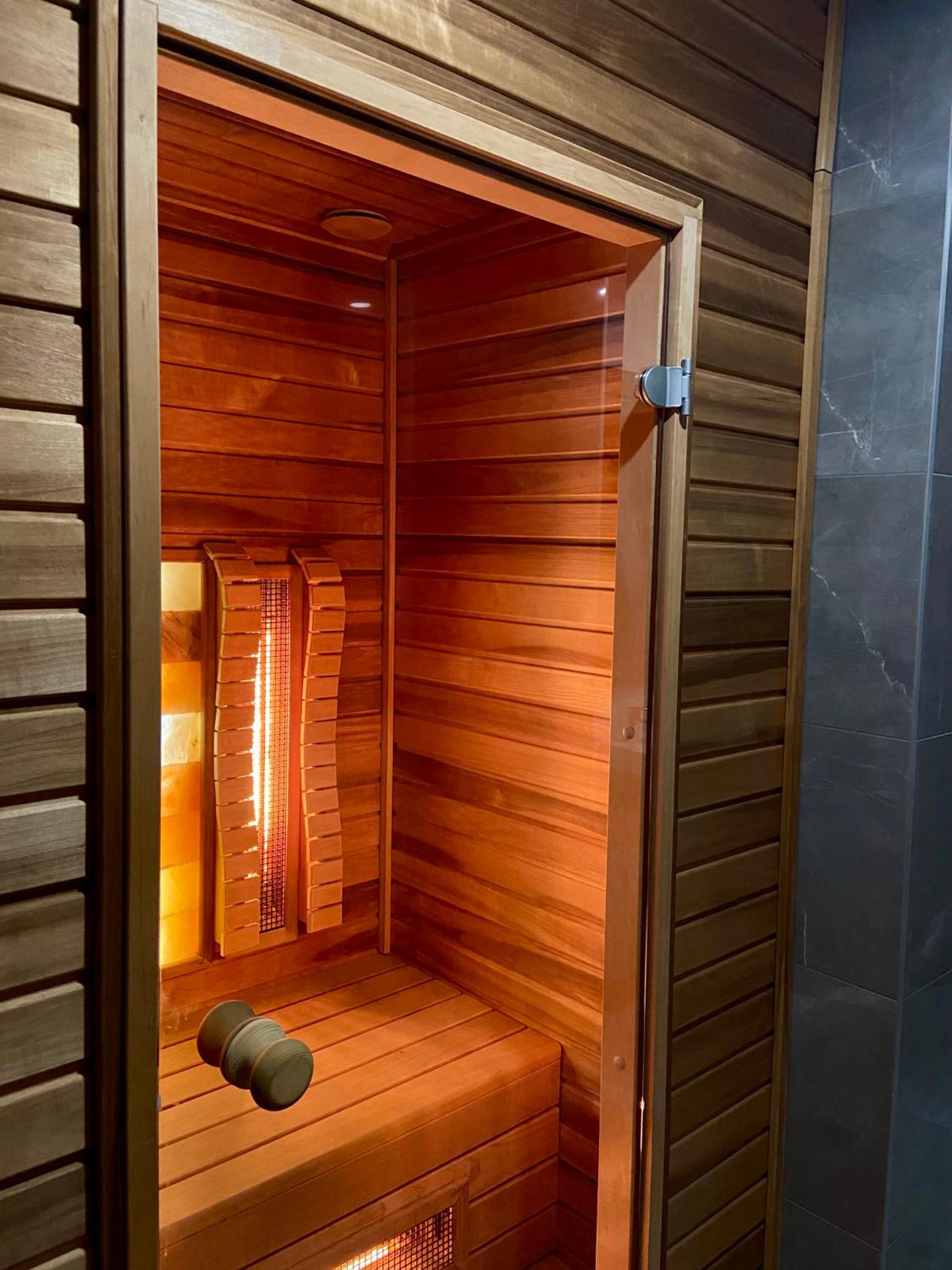 A wellness részlegnél nem volt szekrény vagy tároló, ahová le lehetett volna pakolni és leülésre vagy pihenésre alkalmas lehetőség sem a szaunázások között.