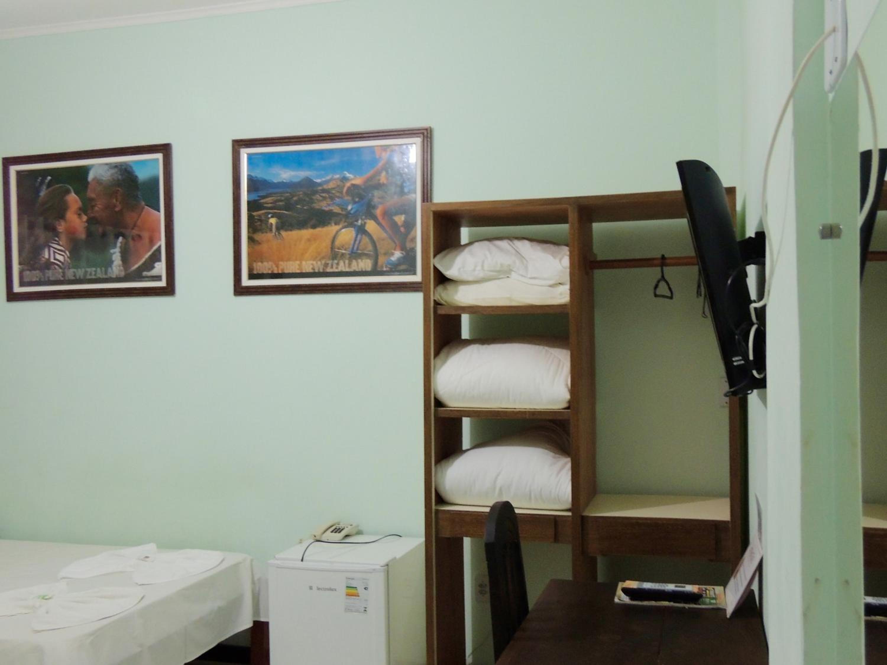 As instalações estão bem desgastadas. Os corredores escuros causam má impressão. O apt que fiquei contava com apenas uma lâmpada fraca sobre o espelho do banheiro e a janela do quarto nao encaixava para fechar. O tamanho do quarto não comporta uma cama de casal como a que estava instalada, obrigando o hóspede a transitar por um vão entre a cama e a parede, com menos de 30cm, para chegar até a mesa ou janela.