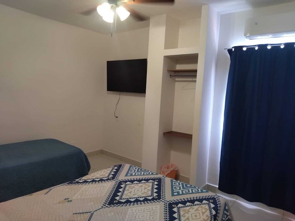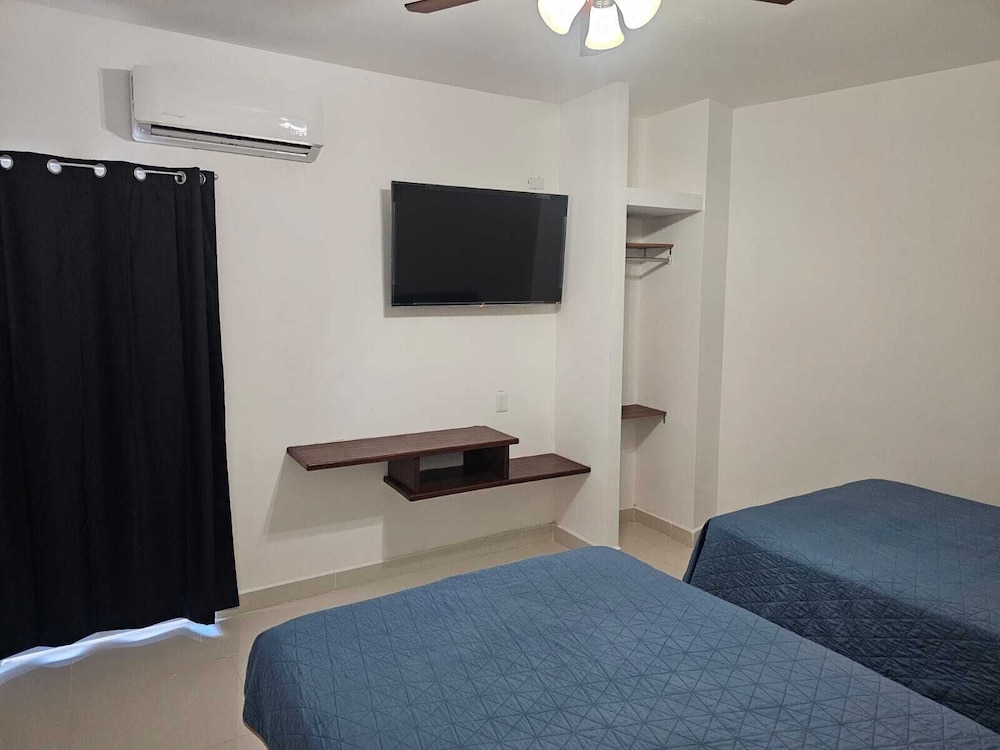 Habitación con lo básico, cama y TV. Hay muchos zancudos y al salir al balcón y cerrar la ventana para que no se metieran la ventana se cerró por dentro.