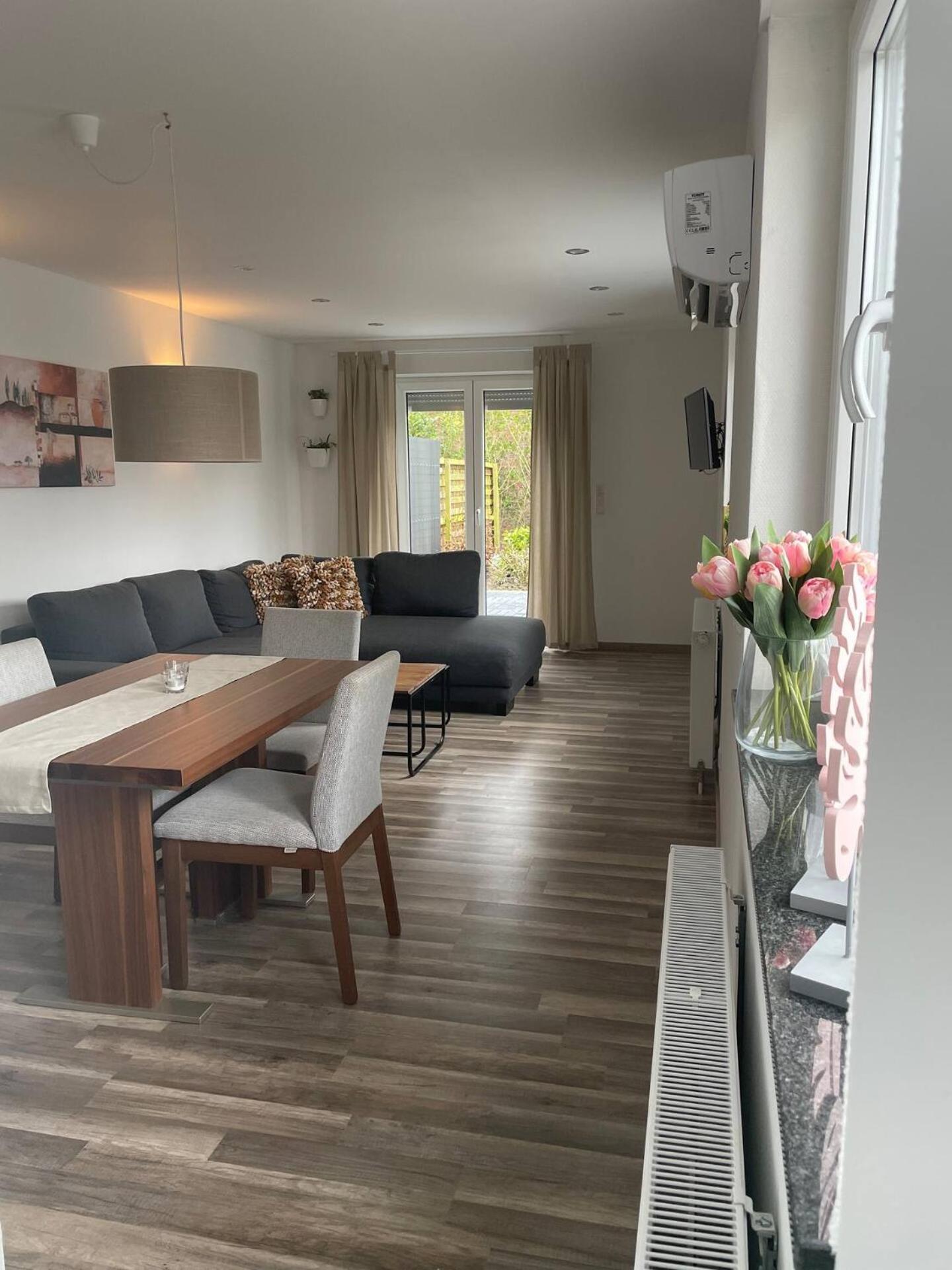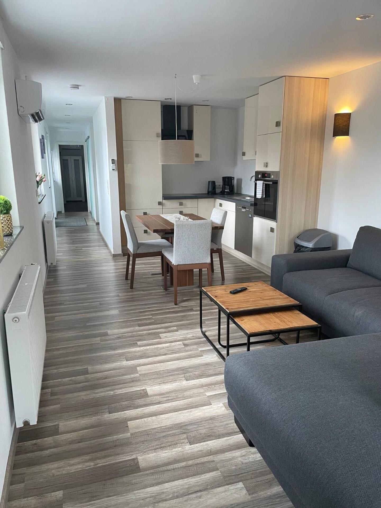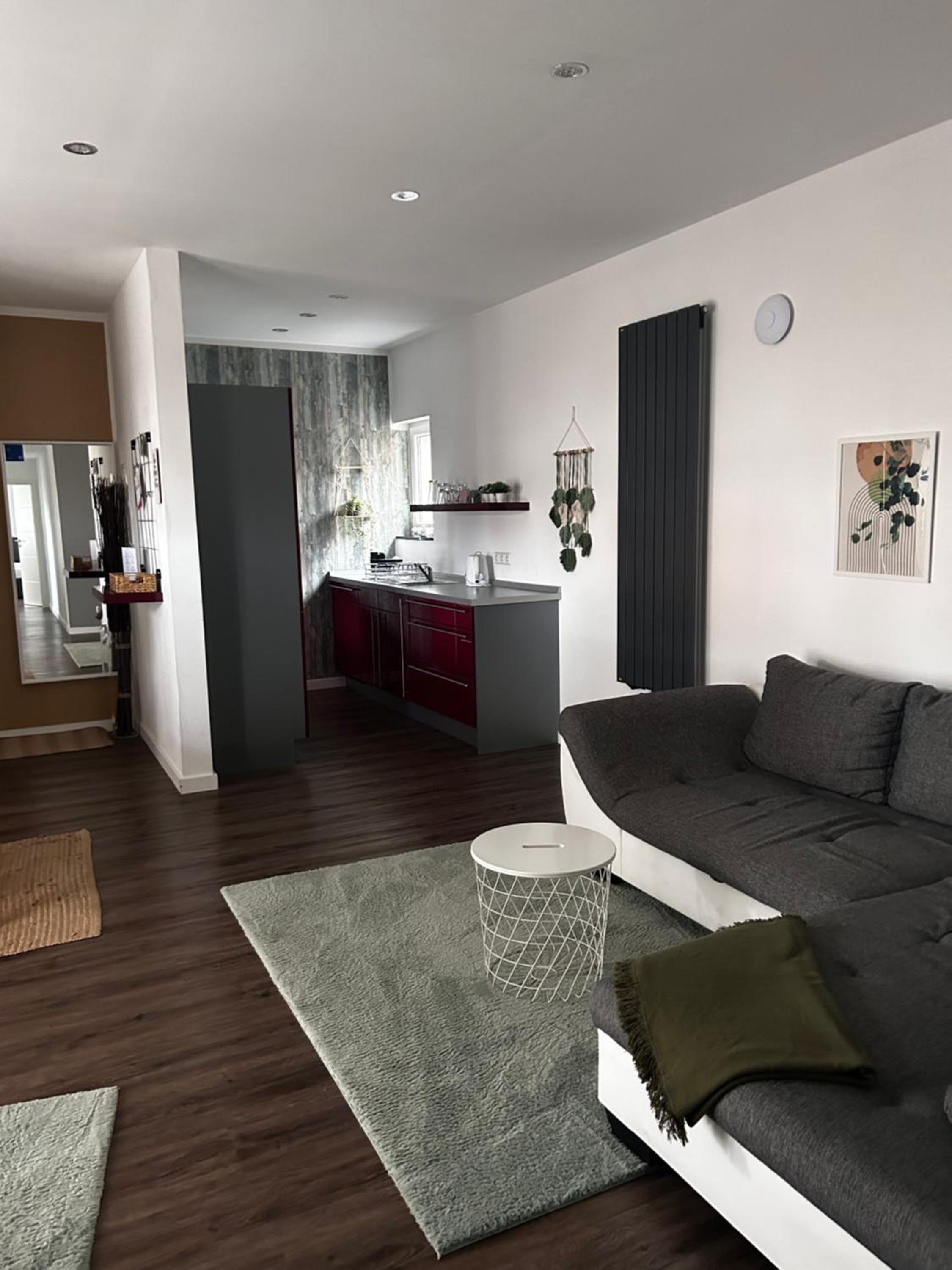 Die Einrichtung war sehr schön, modern und sehr gut gepflegt. Die Wohnung war super ruhig und groß, sodass man sich prima aufhalten konnte. Das Bett war sehr bequem.