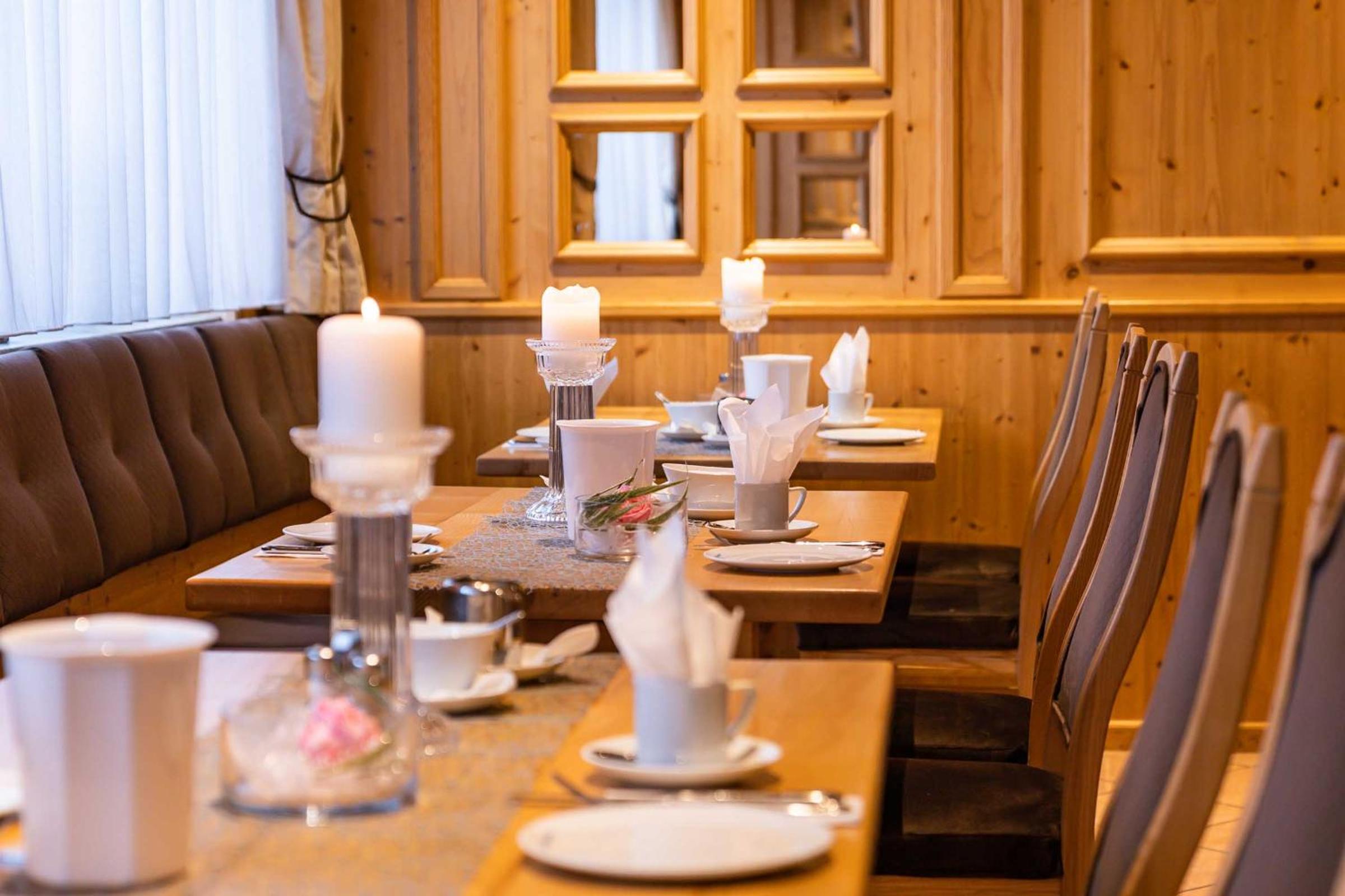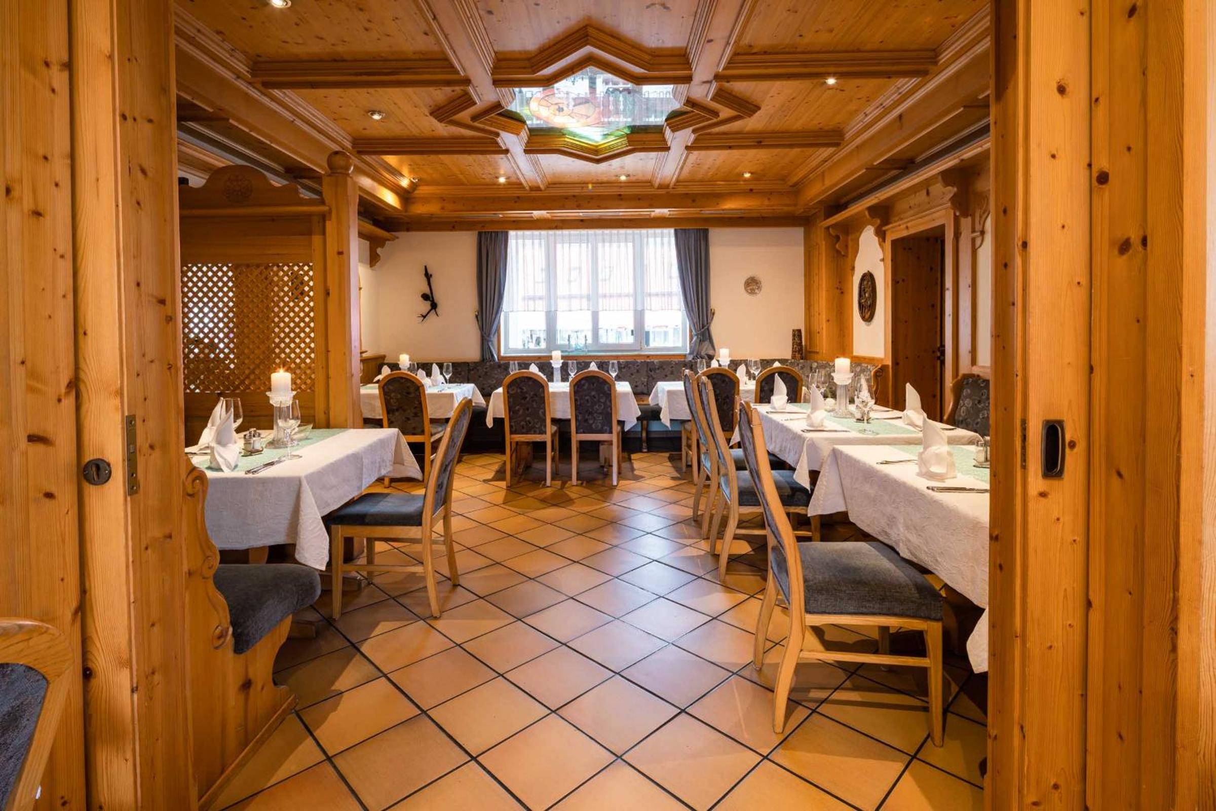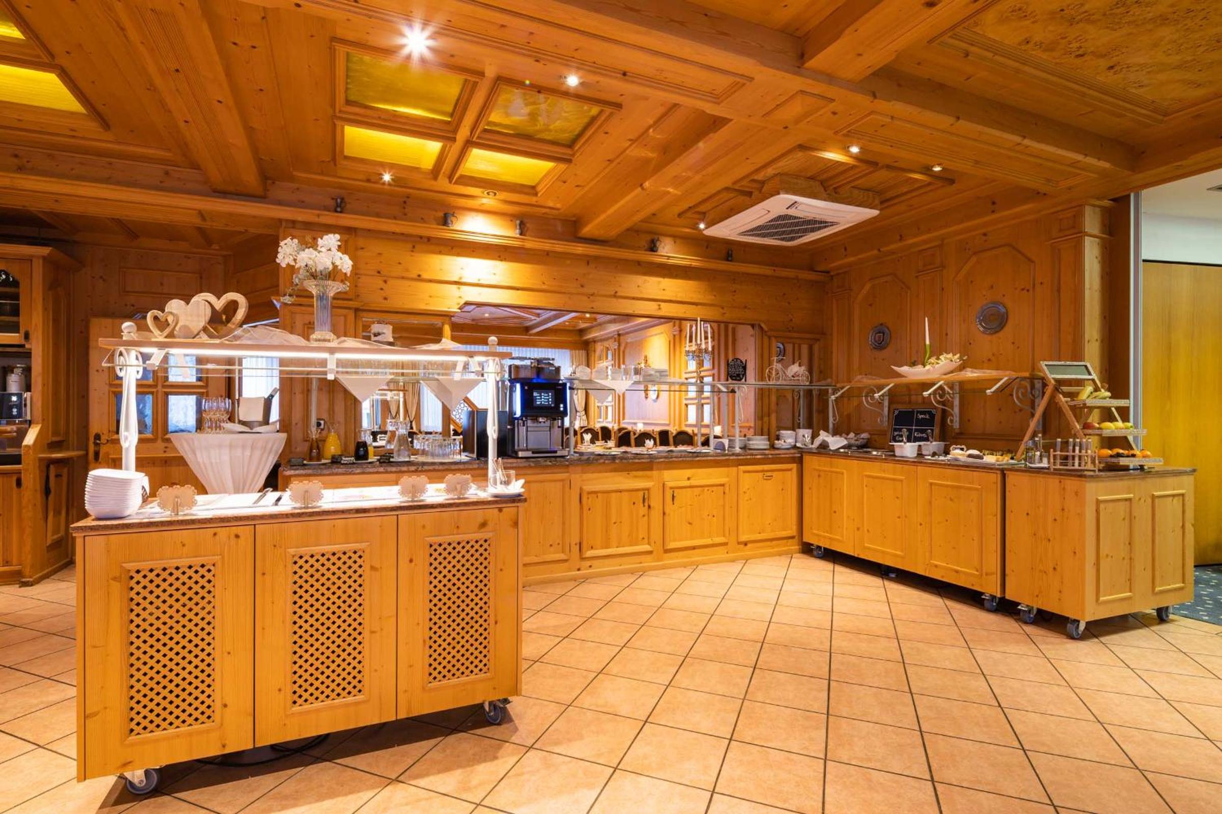 Bavarian Delights: Savor light meals and hearty Bavarian specialties at the traditional restaurant with a cozy bar. The wooden furniture creates a warm and welcoming atmosphere.