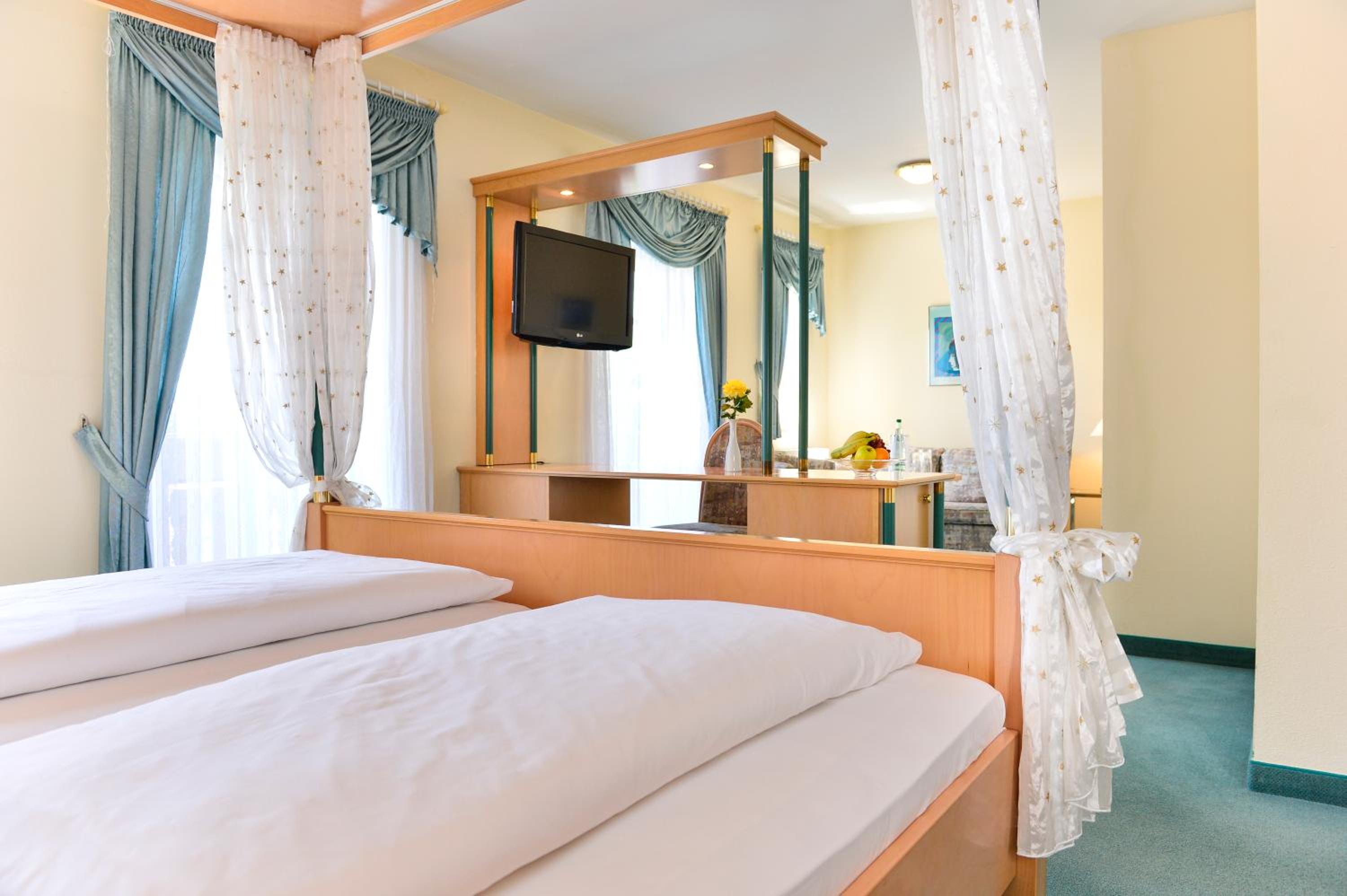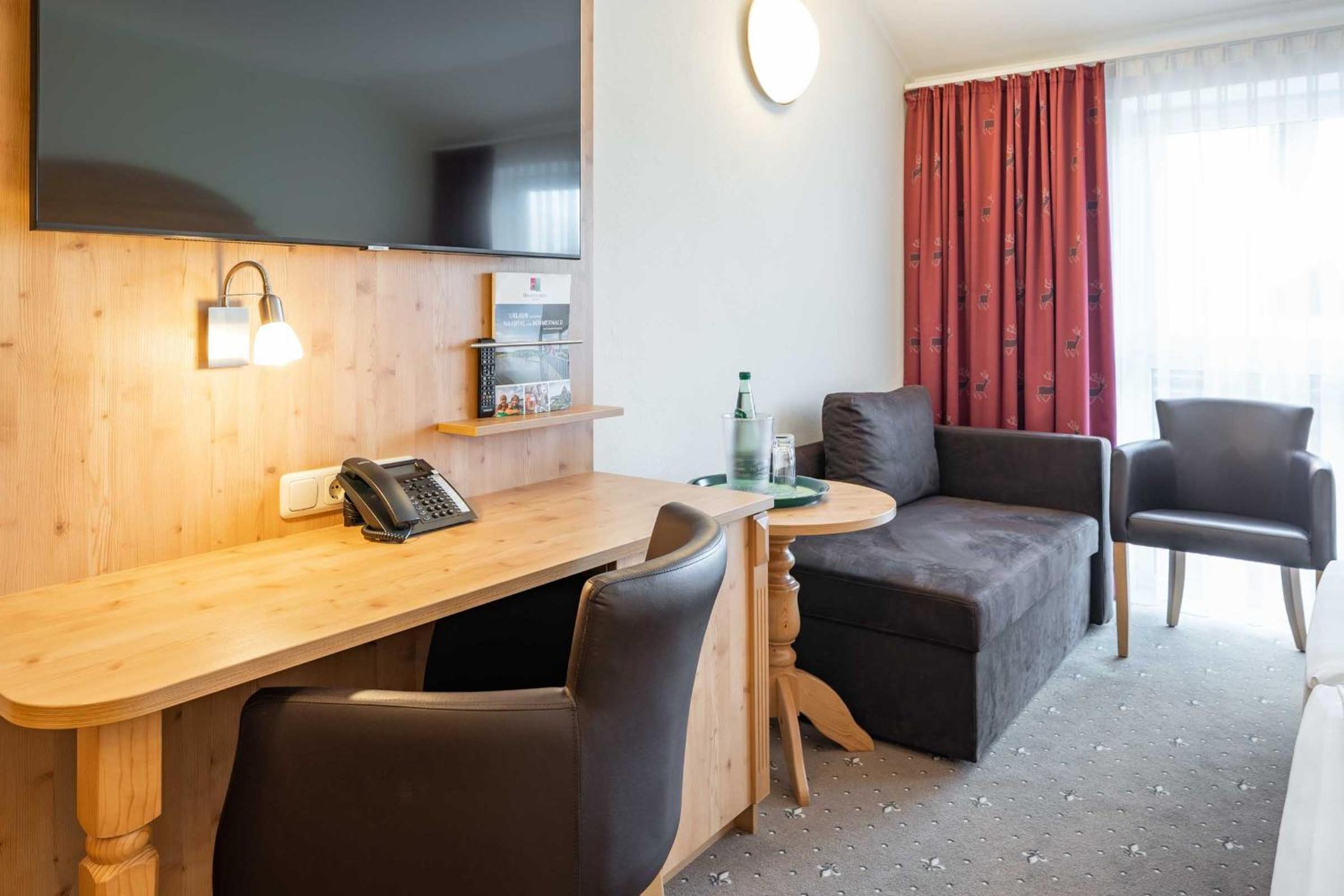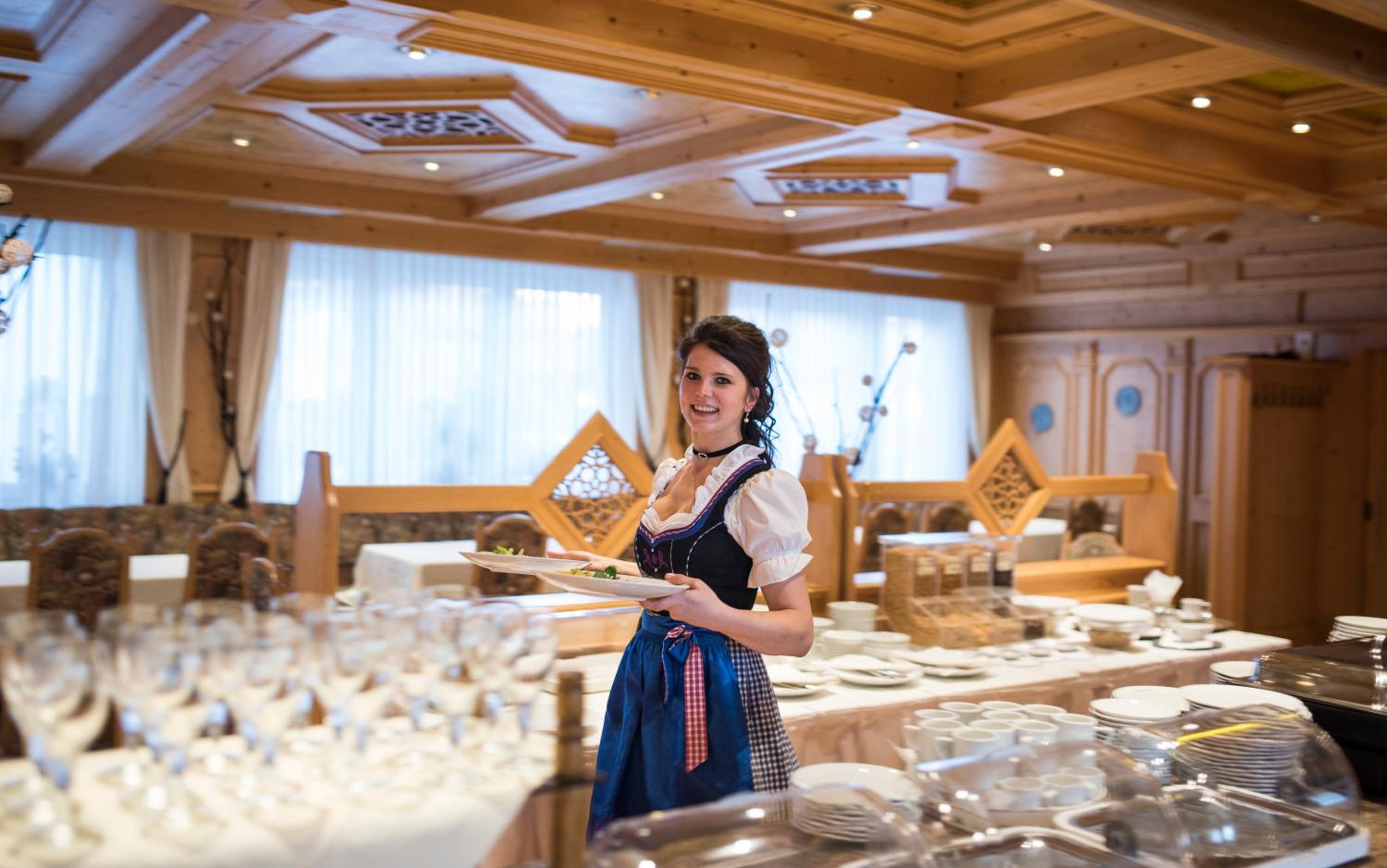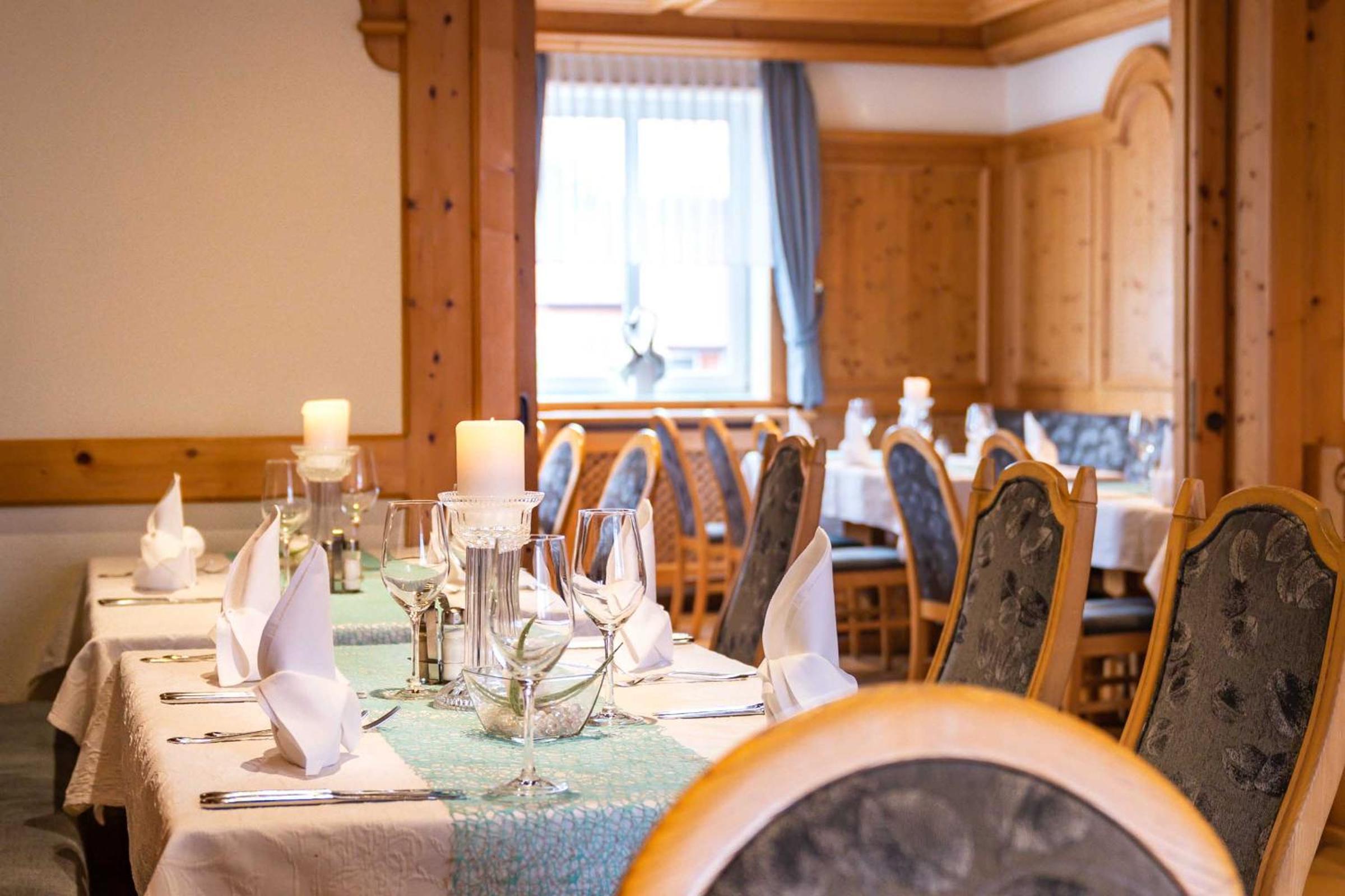 Bavarian Delights: Savor light meals and hearty Bavarian specialties at the traditional restaurant with a cozy bar. The wooden furniture creates a warm and welcoming atmosphere.