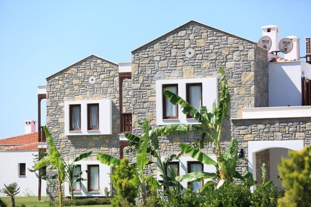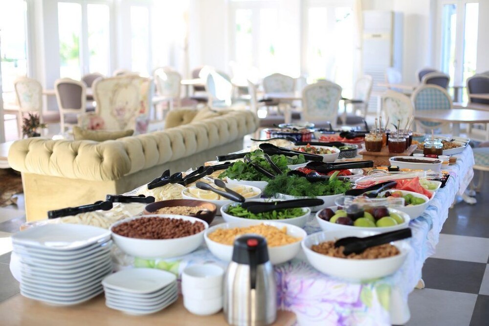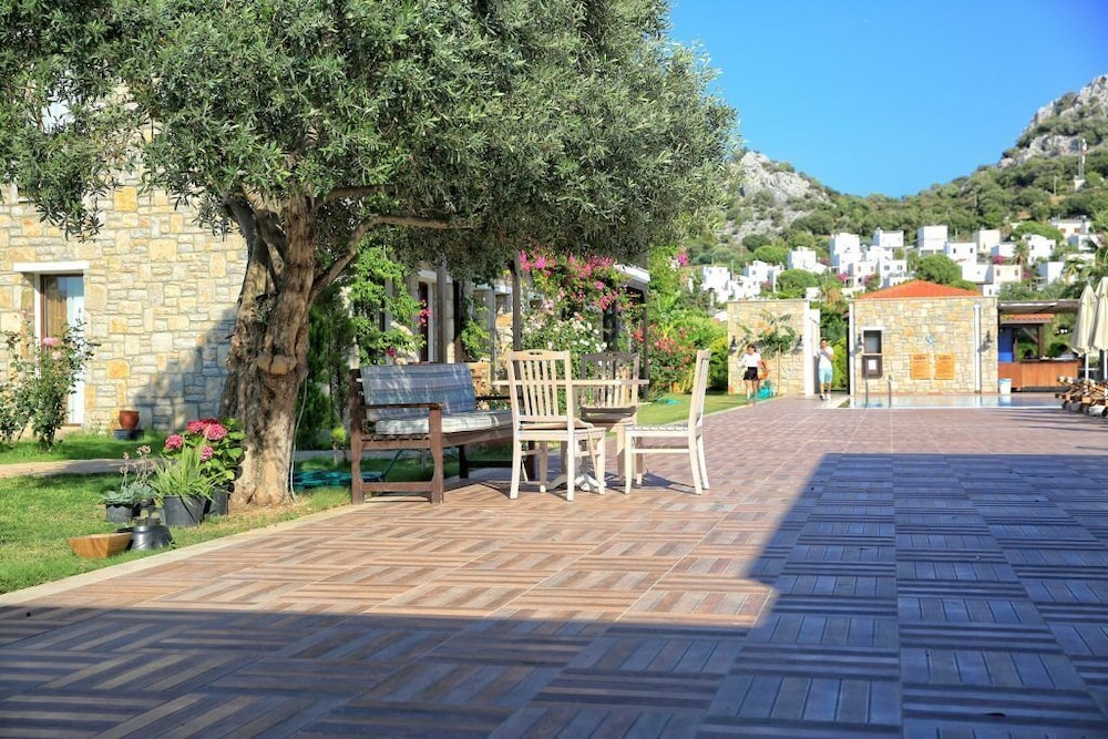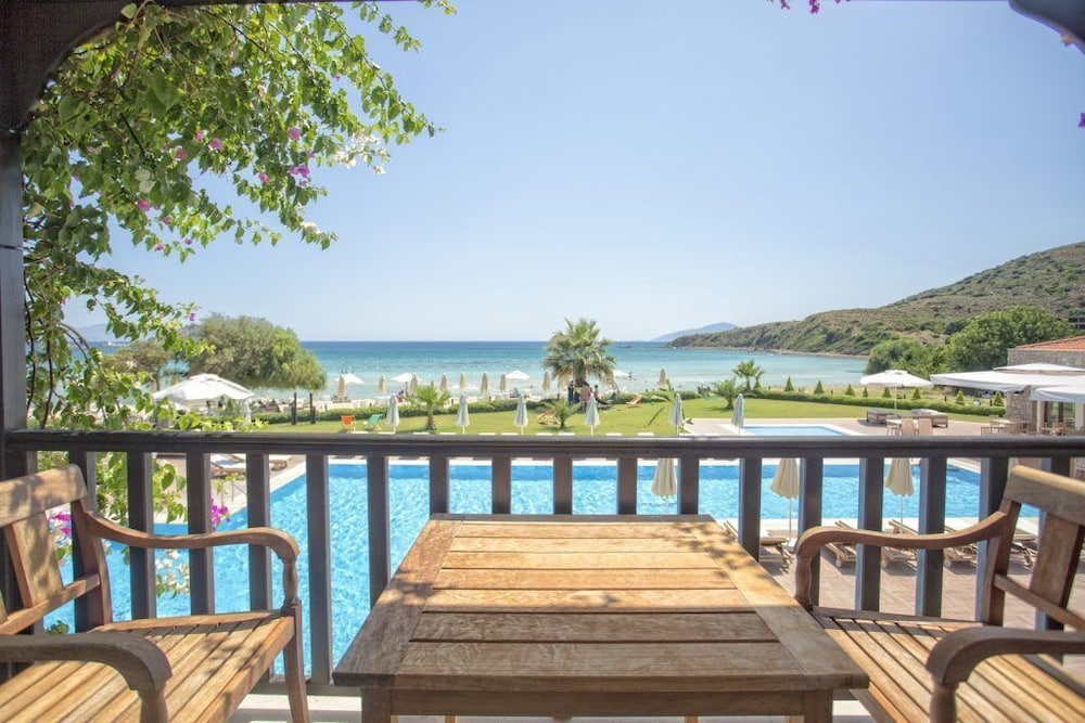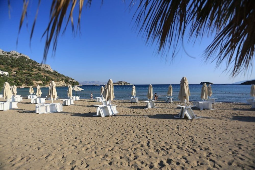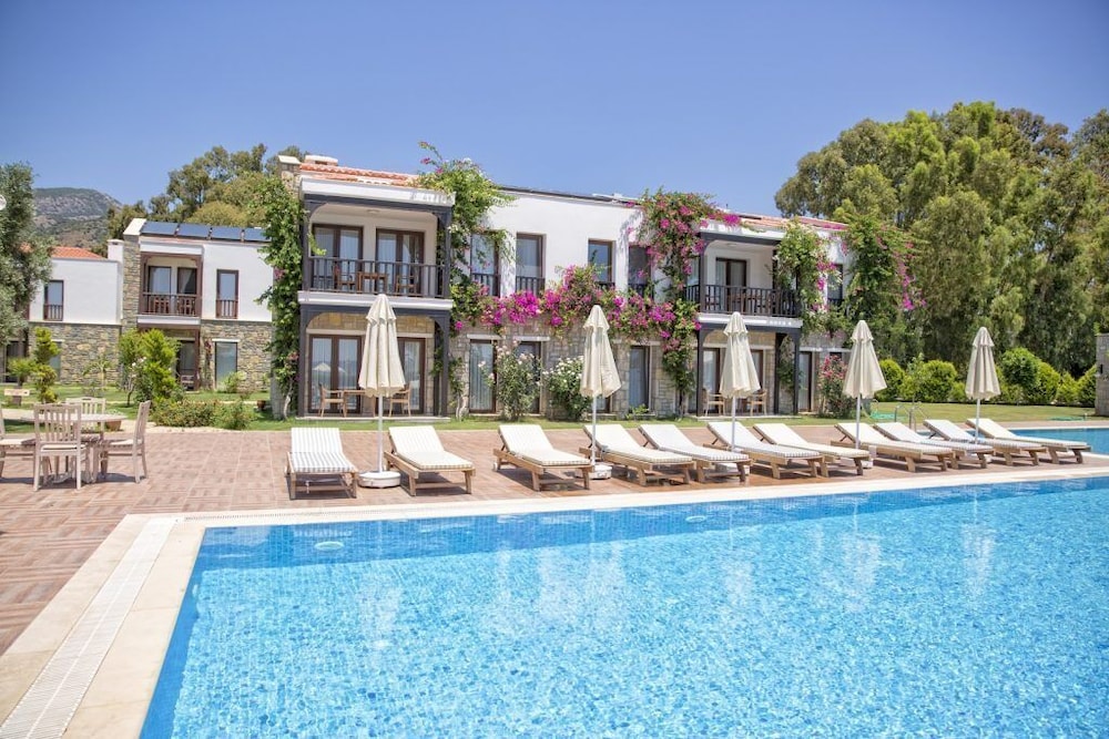 Relax on the private beach or take a refreshing dip in the outdoor pool at Datca Doris Butik Otel - Special Class, offering the perfect blend of leisure and tranquility.