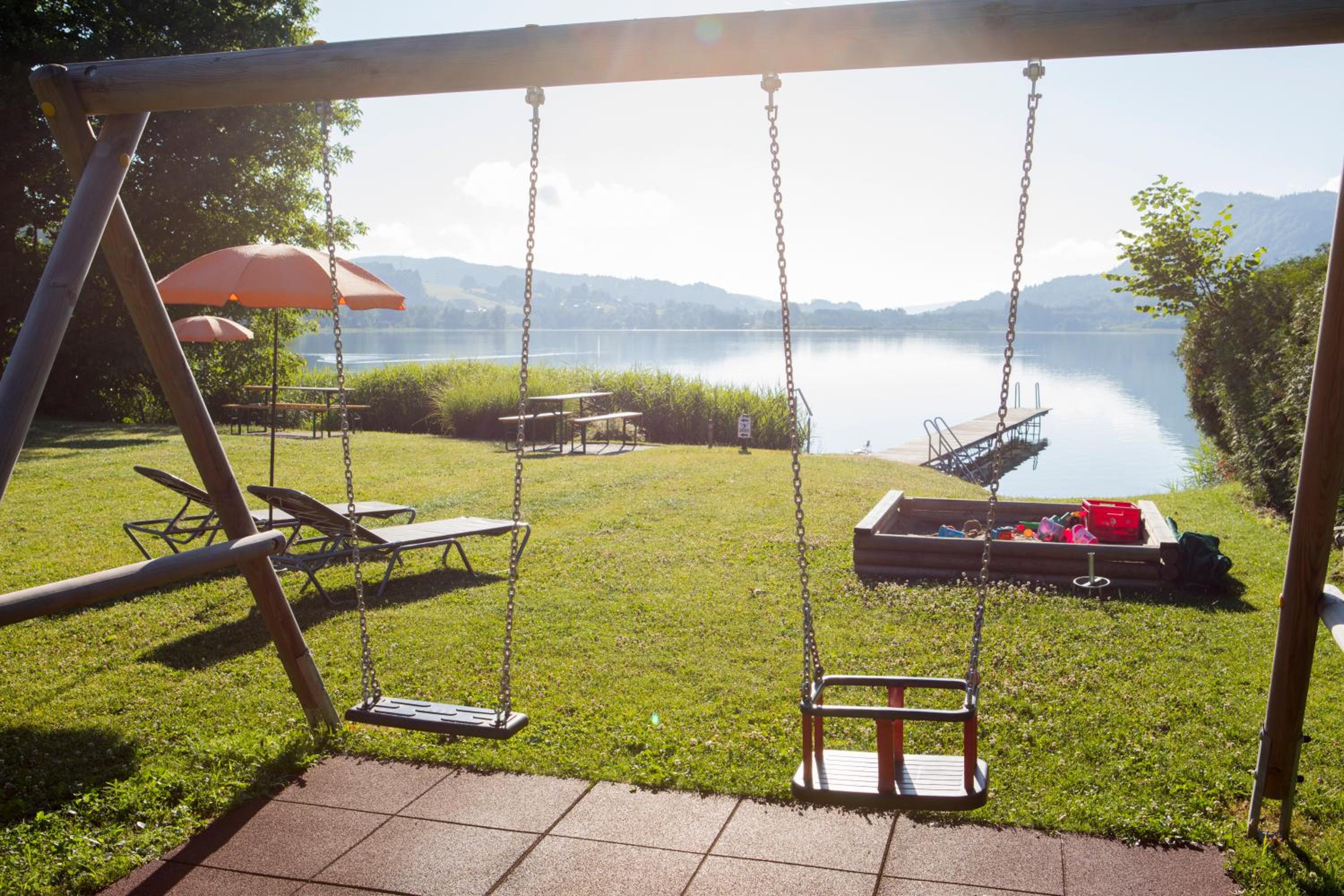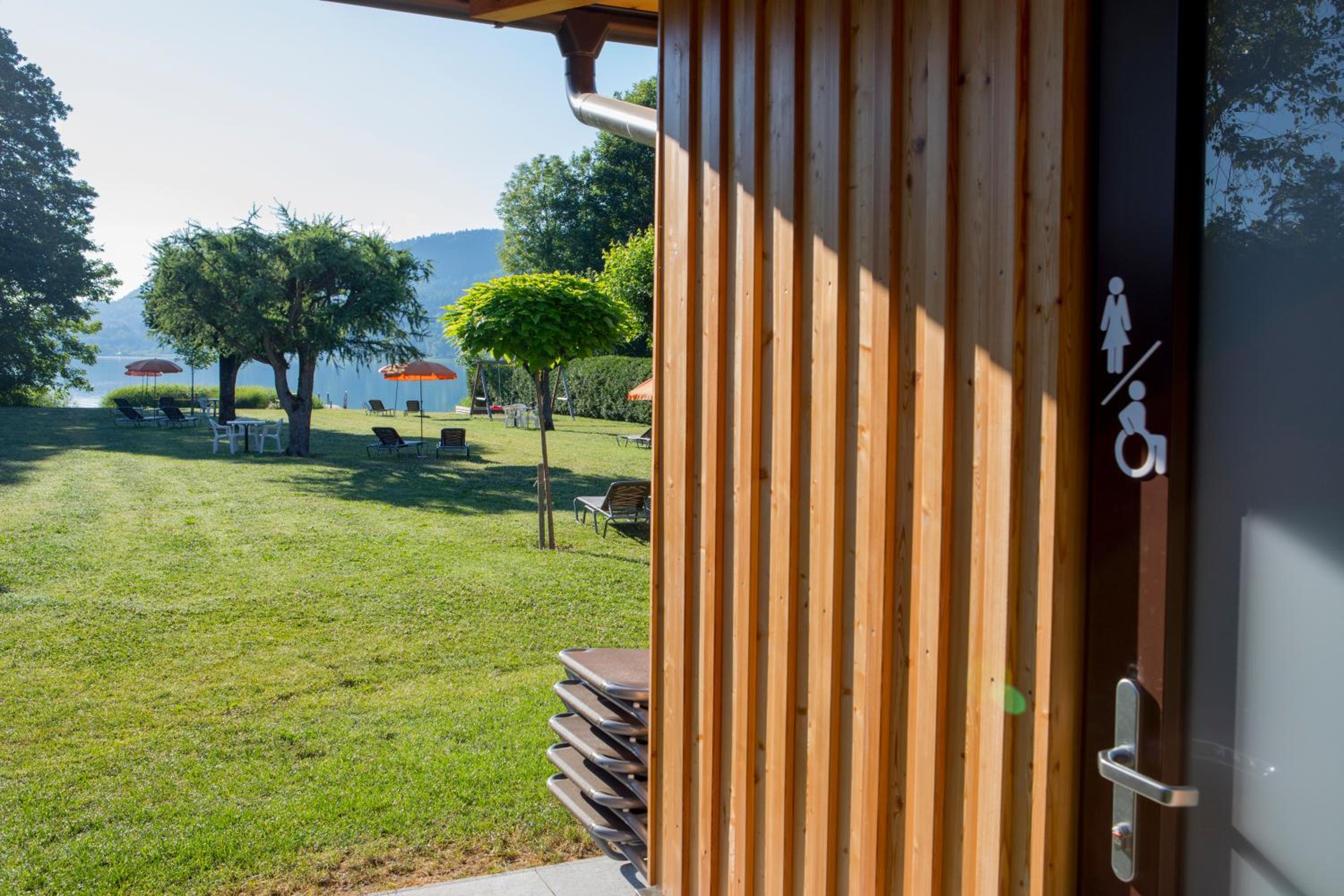 Top ist auch die nahe Liegewiese am See mit Umkleidekanbienen und Toiletten.