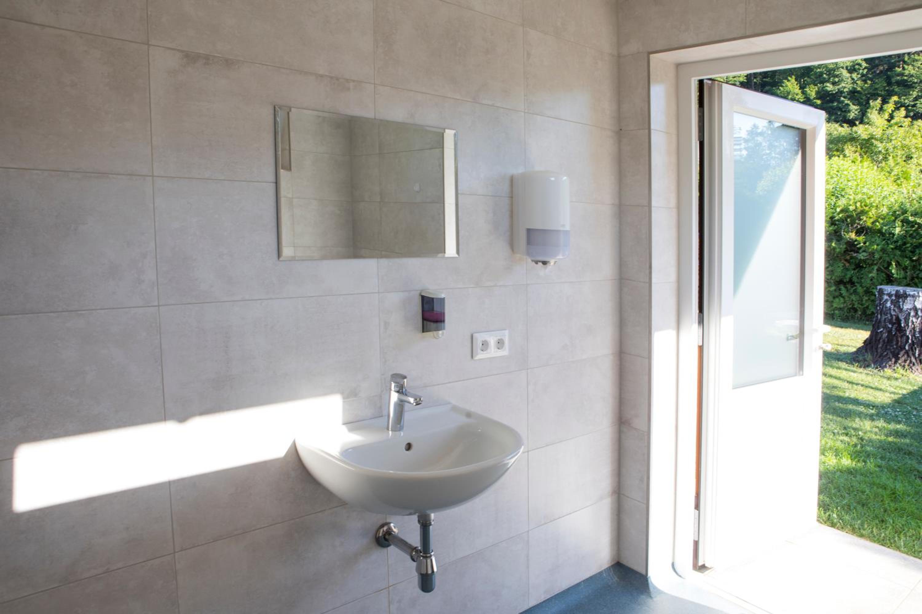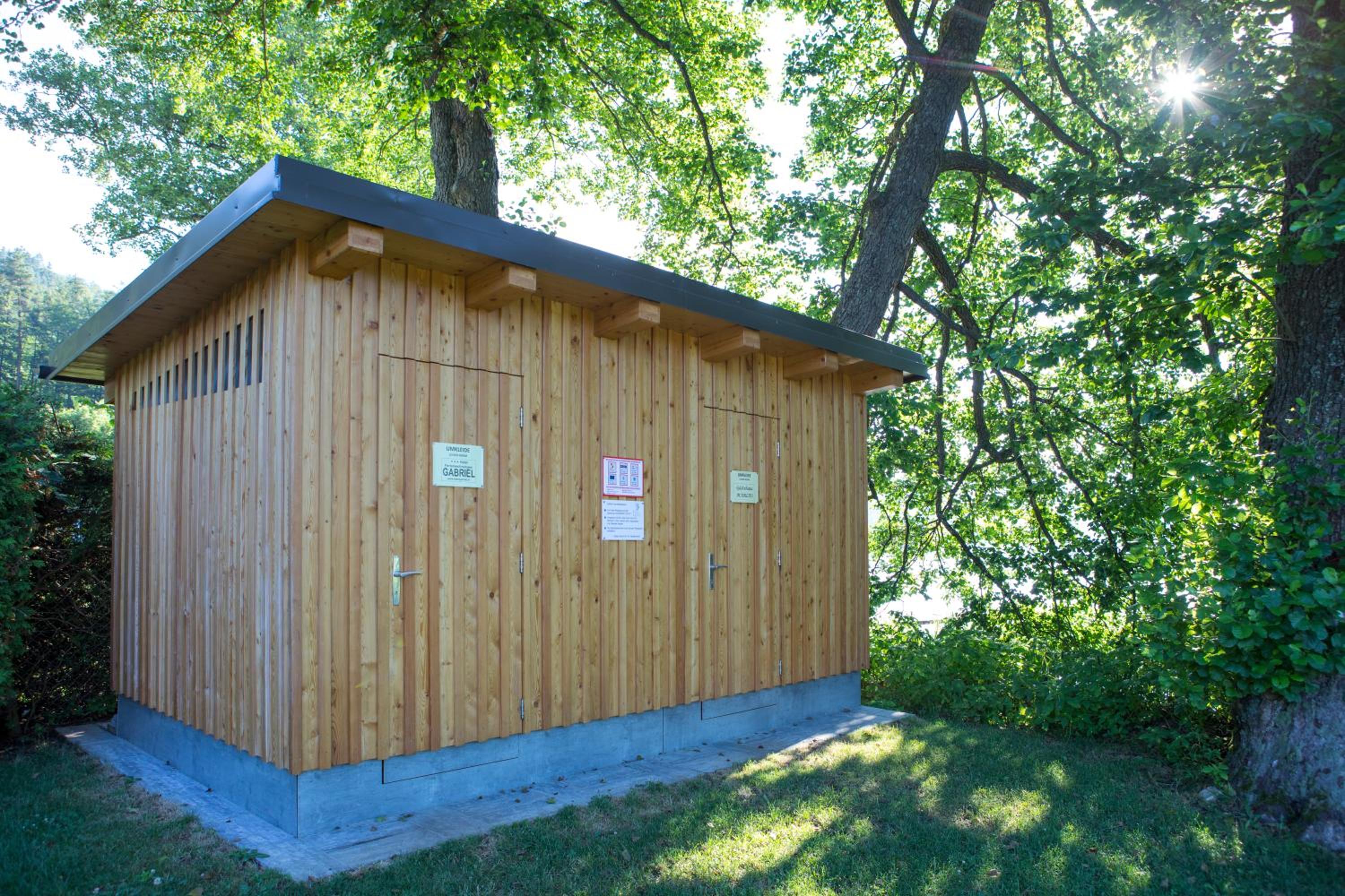 Toiletten und Umkleidemöglichkeiten sind vorhanden.