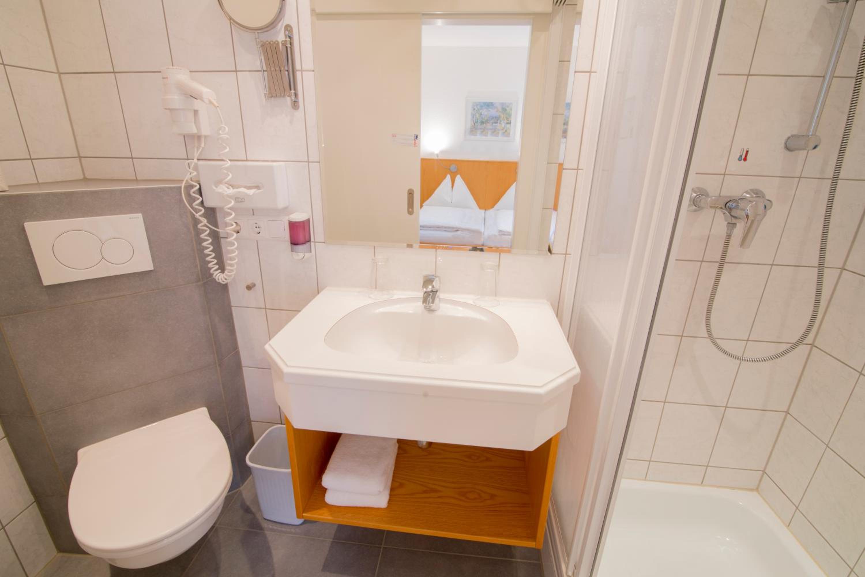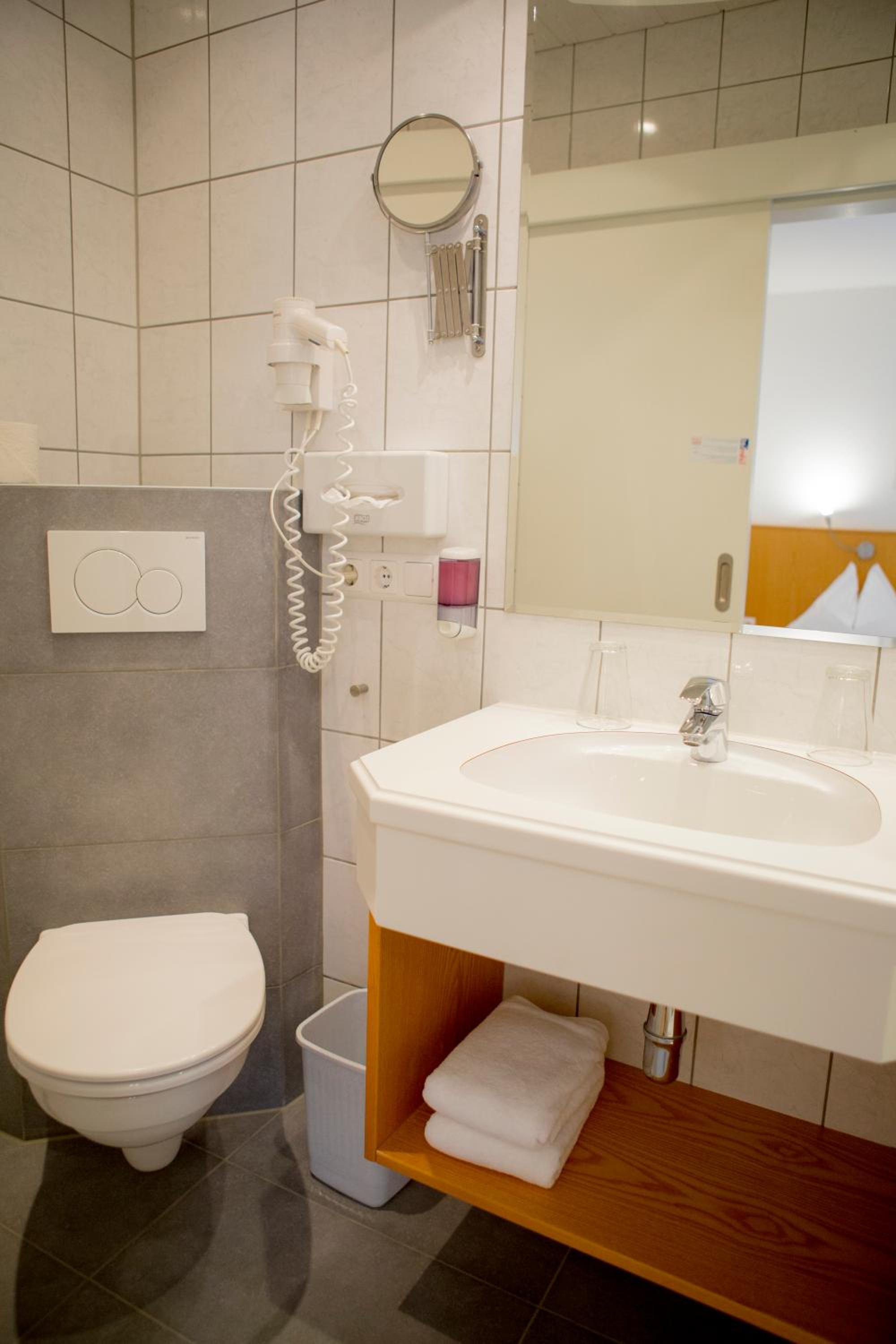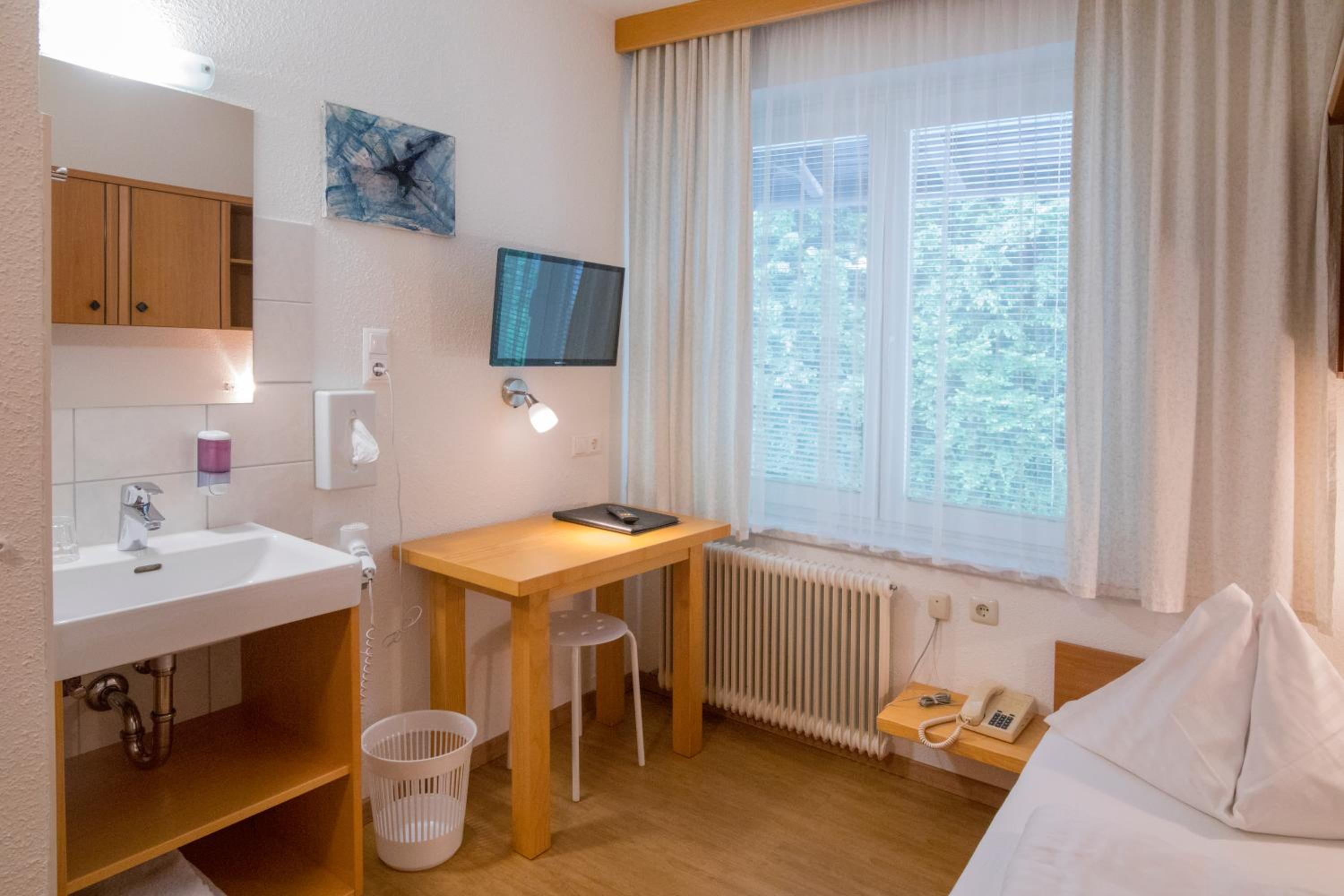 Familiengeführtes Hotel ca. 9 km von Klagenfurt mit Parkplätzen vor dem Haus, freundlicher Empfang an der Rezeption, kleines Einzelzimmer mit TV, Toilette und Waschtisch in einem Zimmer, Dusche extra, sehr bequemes Bett, ausgiebiges Frühstücksbuffett mit großer Auswahl.