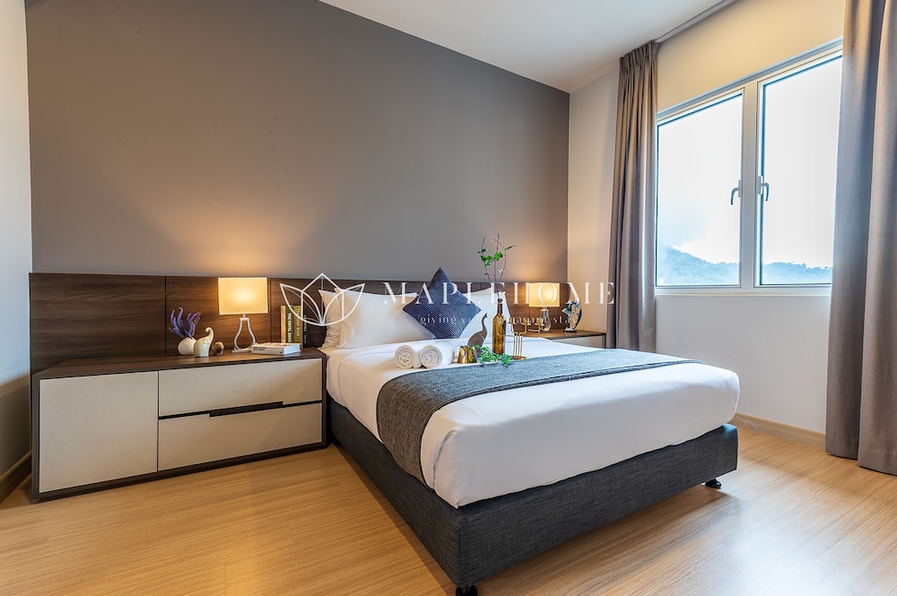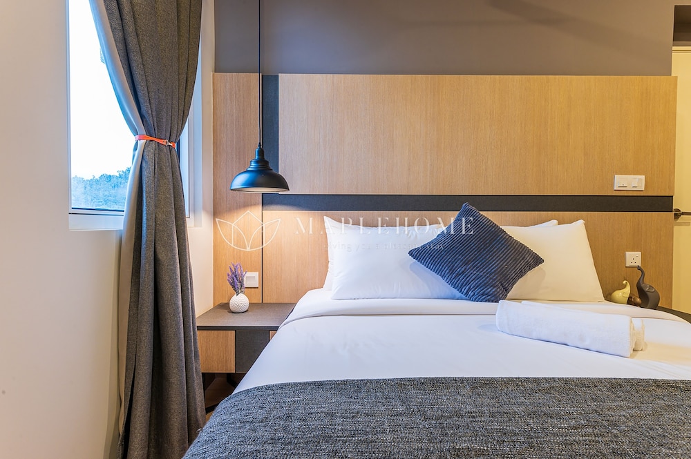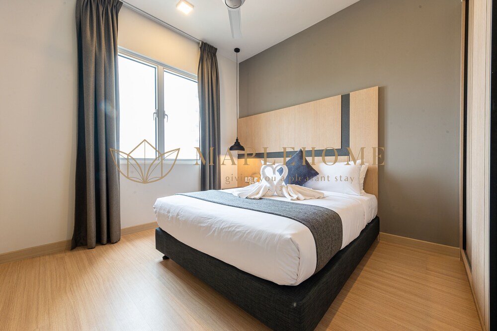 Property was well below standard. Upon arrival we were told to travel to another hotel for check-in. We also paid an extra 100RM for early check in as we have two small children. Parking was inconvenient. The Duplex had no aircon except for one room. The curtains were all ripped. The bathrooms were really inadequate. Mostly they were very smelly. This apartment was an Airbnb which we didn’t realise. We though it was part of the Swiss Garden Hotel. Very misleading. Well below the luxury we were expecting. Staff were unhappy and miserable. Remote control for TV didn’t work. After pulling out the second bed in the bedroom downstairs you could shut the door.