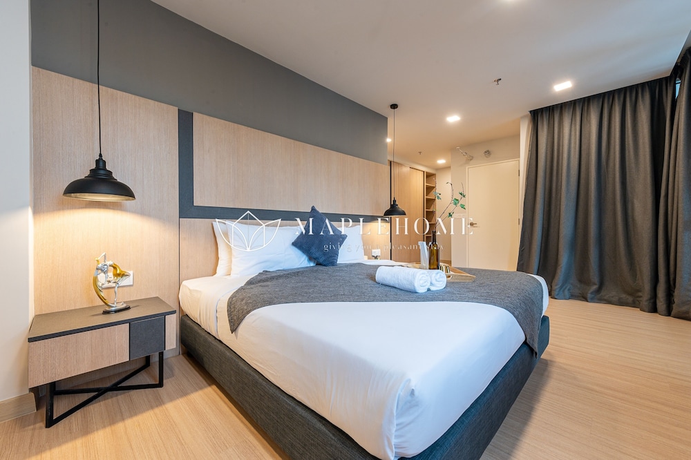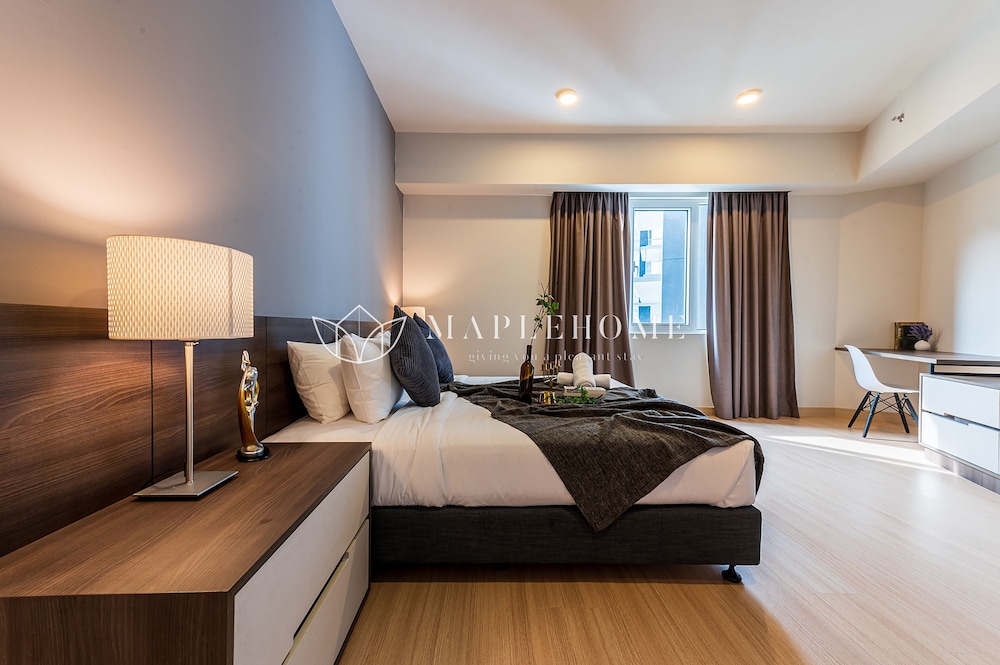 I would suggest to not the put a hanging lamp inside the bedroom. This is because, the lamp keep hitting the wall when we open the fan. And it would be nice if they can put the aircond inside the bedroom. And also, please provide the iron board since the unit have iron. We pay for quite a high price for the unit, but there's no complimentary for drinks. At least 3in1 sachet.