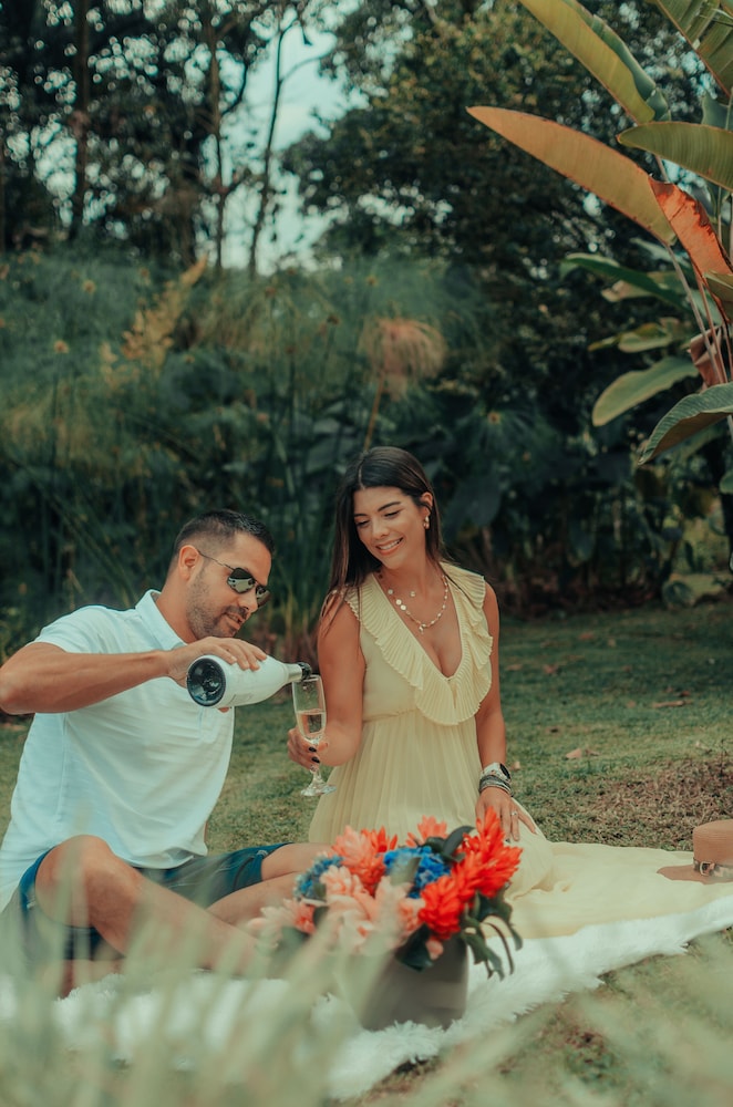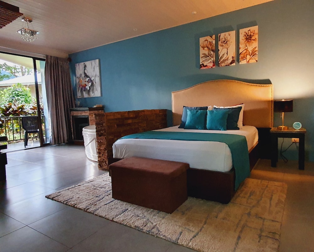 Wow, what an amazing time here! The property is so beautiful and the rooms have everything you could need, including wine glasses and a bottle opener! To sit on the patio in the morning to hear the birds was amazing. There is also a cat and a few dogs there who are very well taken care of and very sweet. The staff were very helpful and friendly, and the food at the restaurant was superb! We will definitely be back here when we go to La Fortuna again!