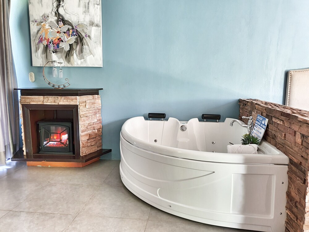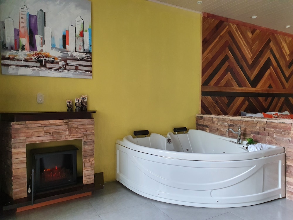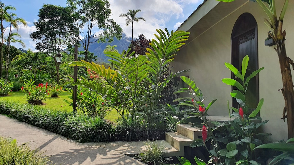 Nice room, hot tub, view of the volcano, and private patio overlooking the nice flora in the garden. Nice to be a little outside of town, but you need a car.