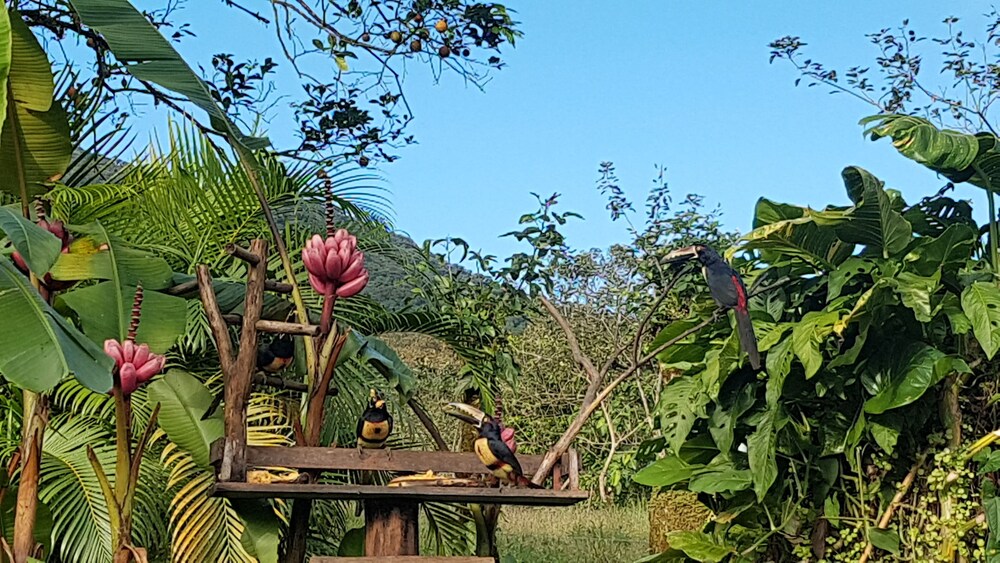 La localizaciòn es excelente. Todos los empleados fueron muy amables. El servicio al cliente 10/10. Me encanta que el hotel es pet lover. Tienen perros, gatos y aves. Amè poder jugar con los perritos y ver los Tucanes. El hotel y sus alrededores es muy lindo. Rodeado por la naturaleza. El desayuno fue muy bueno, el arroz en el desayuno tìpico estaba delicioso. El precio es de $10. Mi ùnica observaciòn es la habitaciòn que necesita un upgrade urgente. Es grande y còmoda, pero necesita cambios y actualizaciòn. Los muebles, puerta y baño se ven viejos y desgastados. La decoraciòn no me gustò.