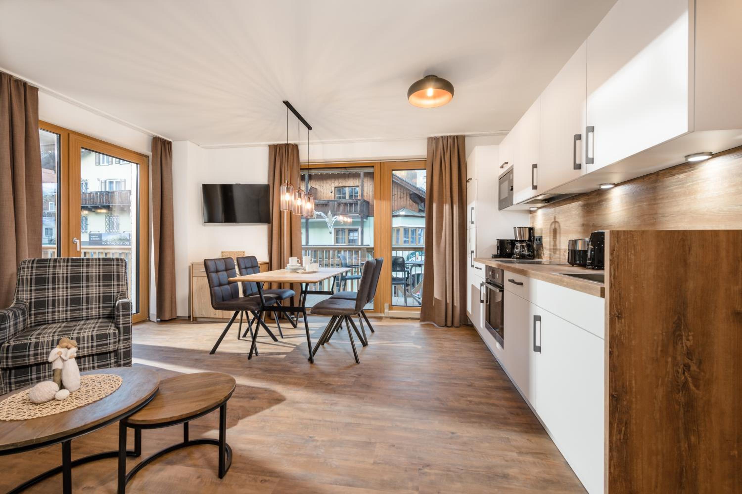 Modernes Gebäude in der Ortsmitte nahe zur Skibushaltestelle und wichtigsten Einkaufsmöglichkeiten. Skiweg zurück vom Lift führt direkt zum Haus.