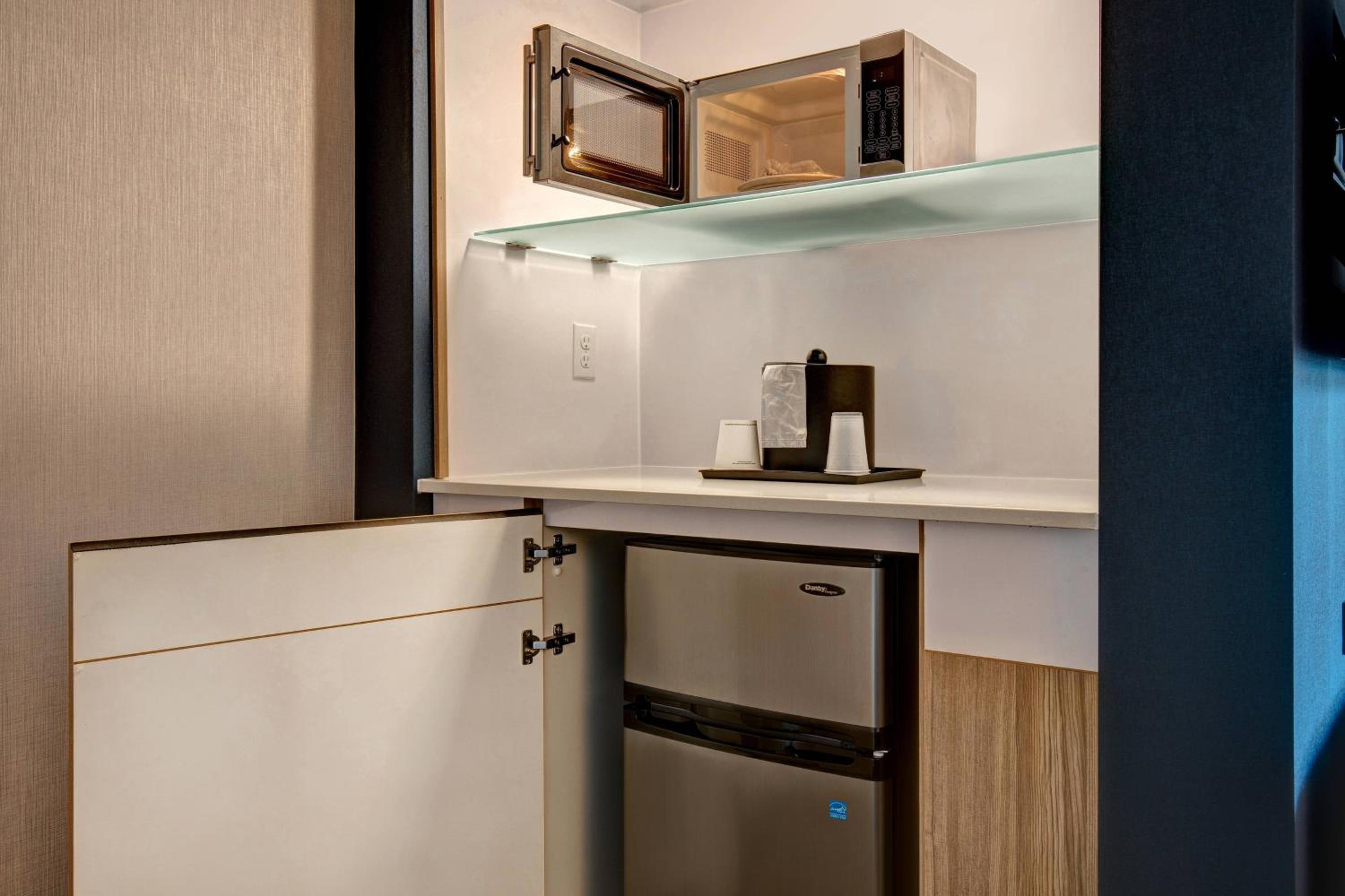 They didn't have a mini Fridge. The room was very sound proof. The kids across the hall screaming half the night was not pleasant. Elevators was dirty. The breakfast was just ok.