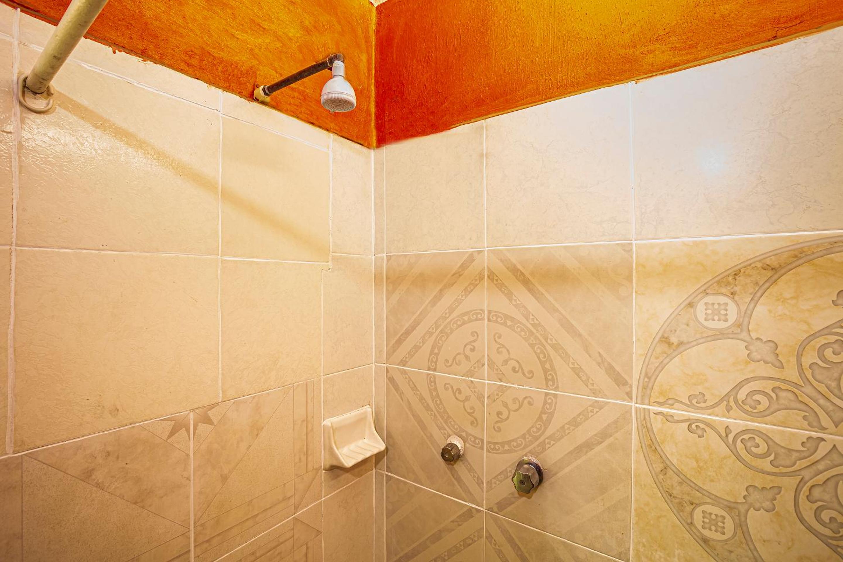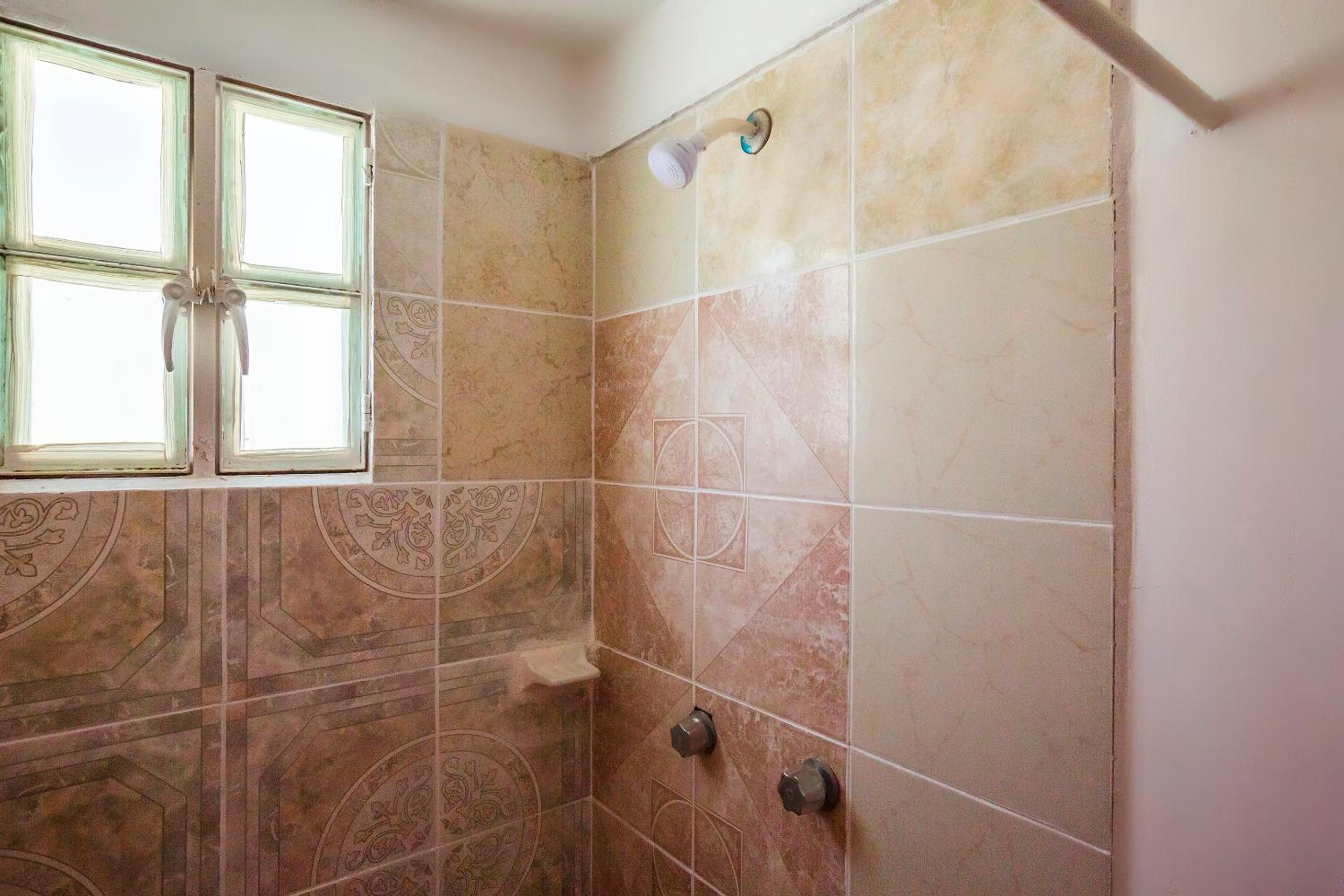 Room very worn, minimal mismatched linens, scuffed wall paint, no AC, ceiling fan with a couple bare bulbs we unscrewed to make it dark, a toilet paper roll with about three turns left and no second roll, no seat on the toilet, and only one side of the window could be opened and it looked right into an adjacent room. Bed hardness was very high - we barely slept.