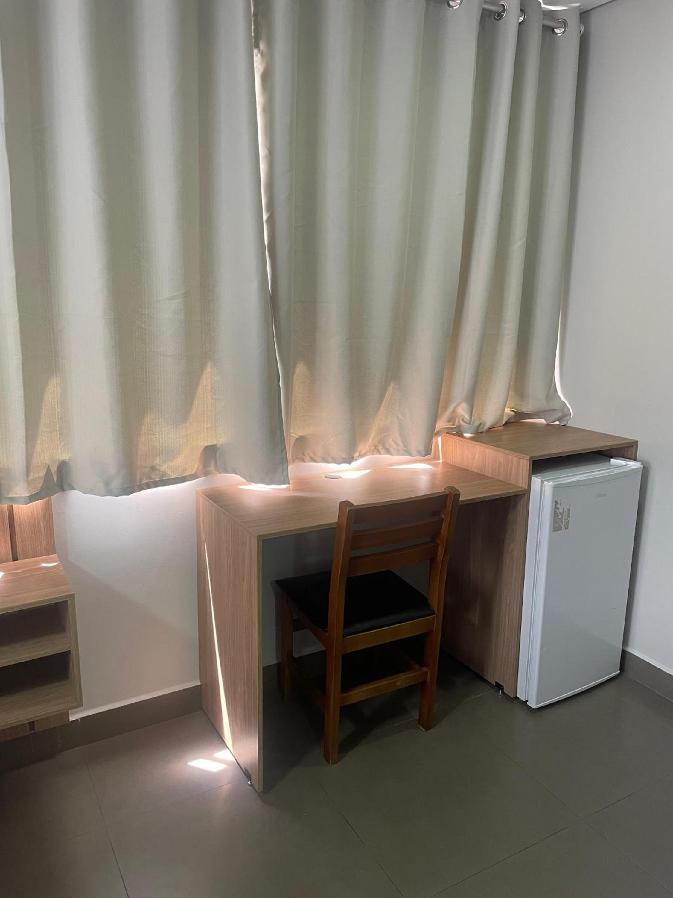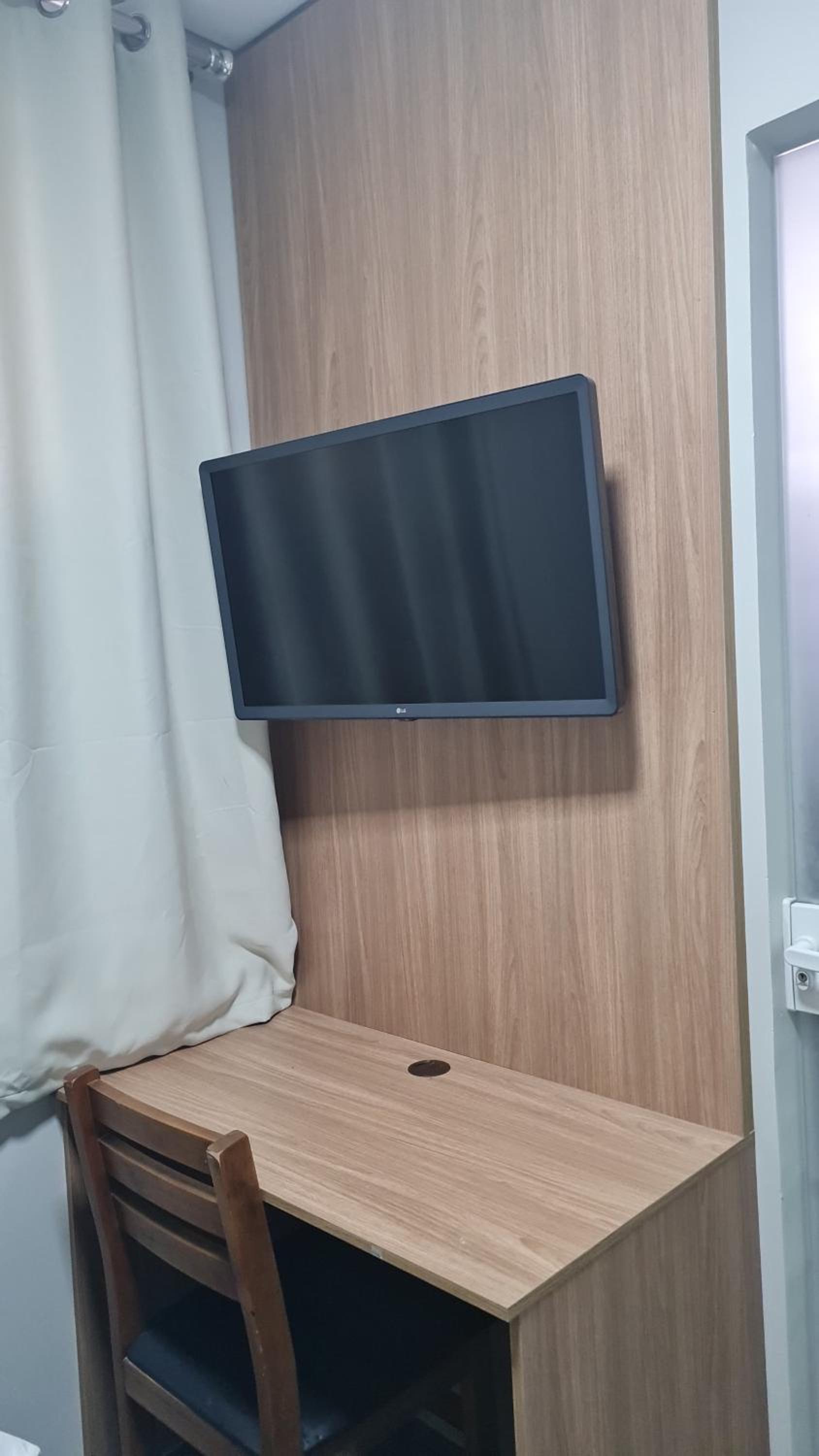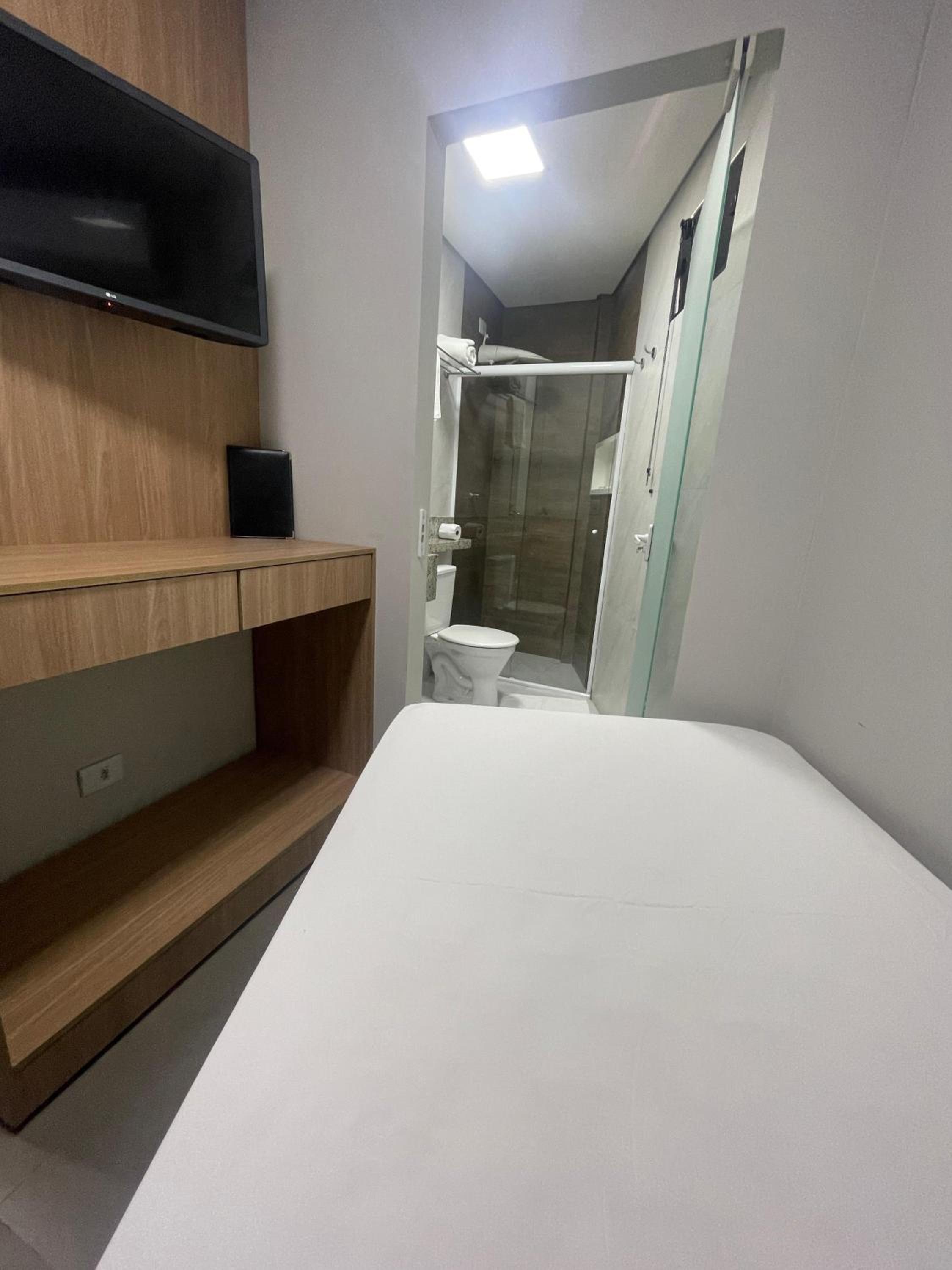 Estadia muito boa. O quarto, apesar de ter um formato diferente, com paredes em ângulos variados, foi excelente. Consegui trabalhar e descansar sem qualquer problema. Mesmo com três janelas — sendo uma no banheiro — o ambiente era bastante silencioso.