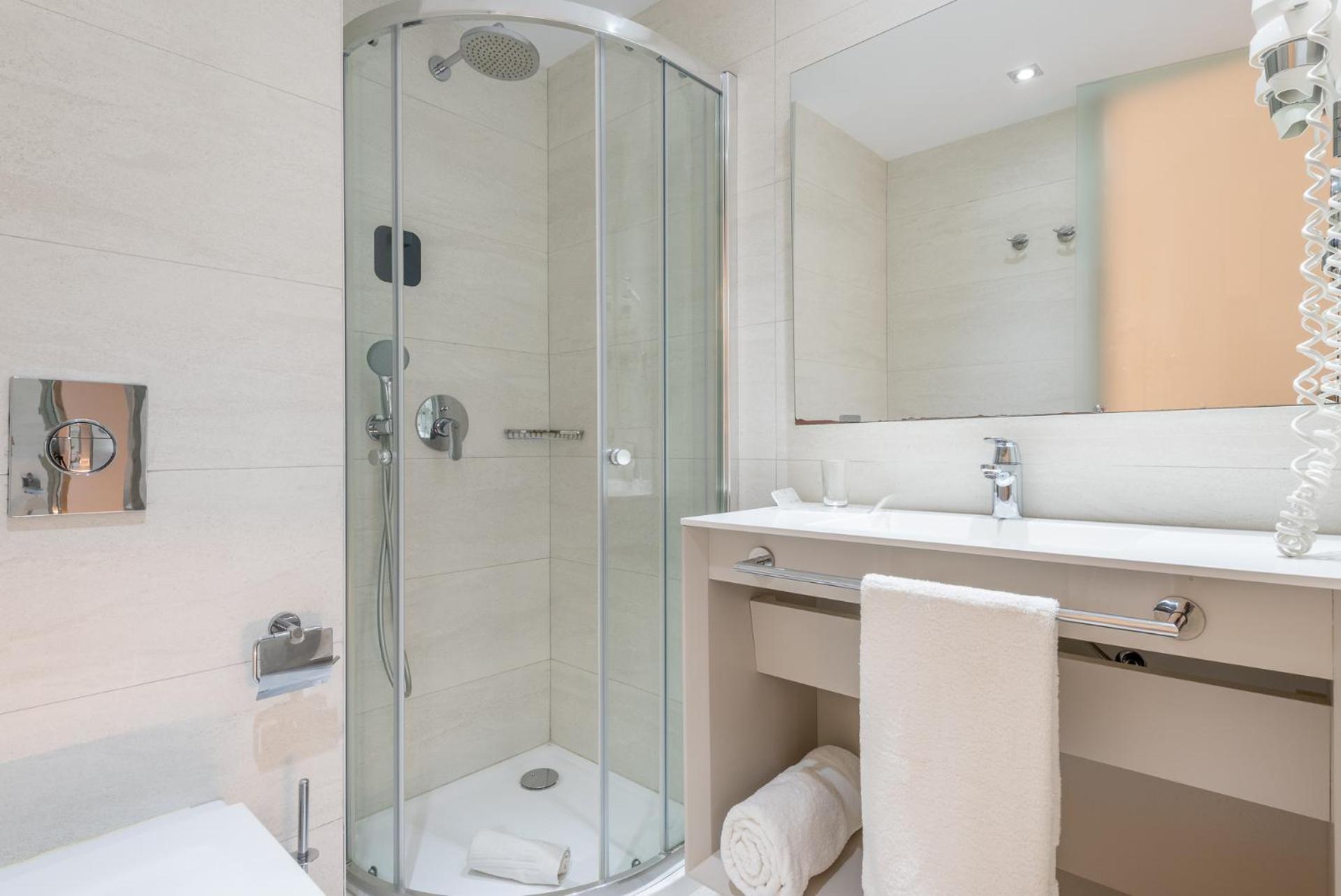Relax in air-conditioned rooms equipped with modern amenities including a desk, coffee machine, minibar, and flat-screen TV. Feel secure with a safety deposit box and refresh in the private bathroom with a shower. The hotel ensures your comfort with plush bed linen and towels provided in each room.