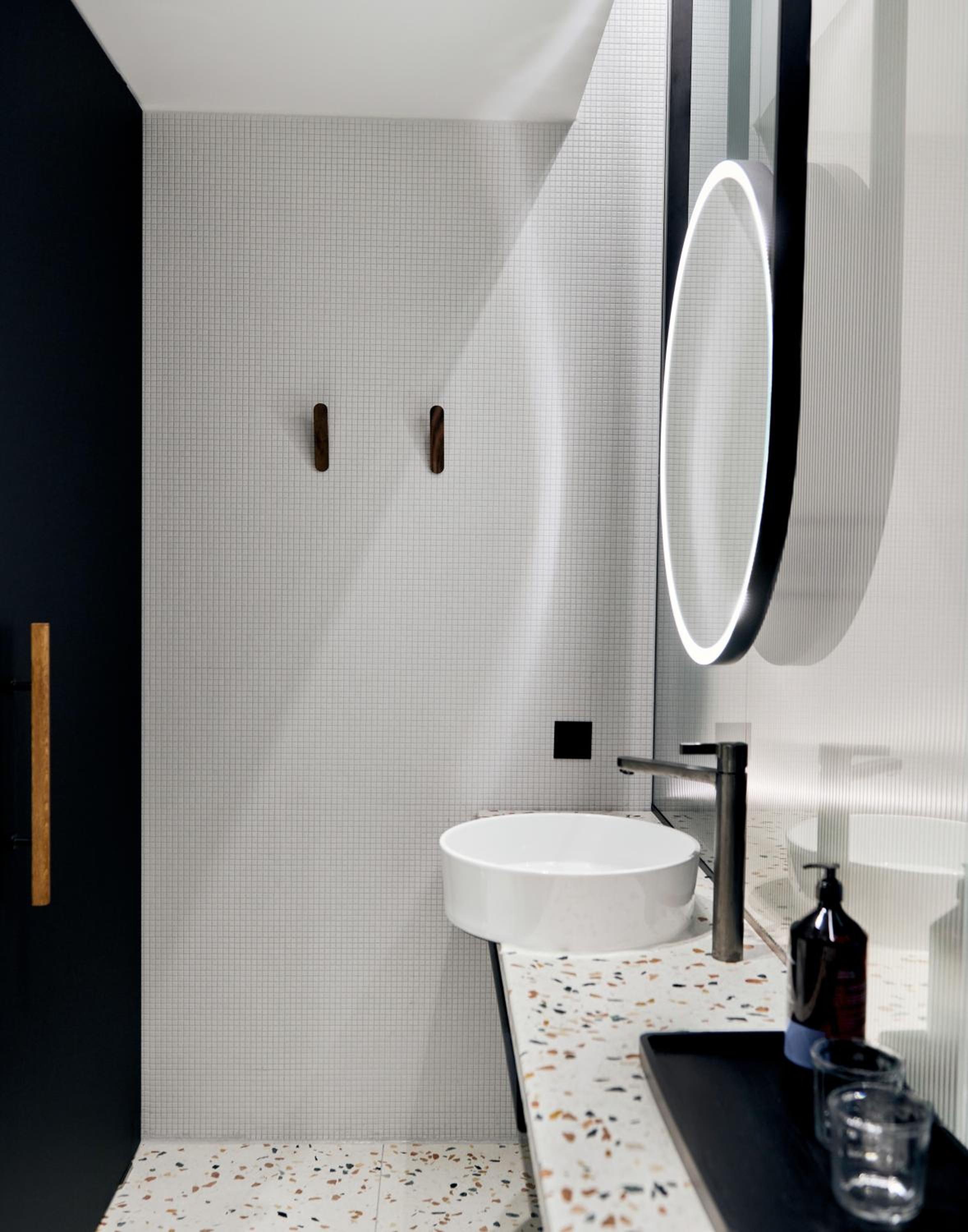 das ins Zimmer gebaute Bad ist nicht ganz so ideal- man wird durch den Lichtschein wach, wenn der Partner nachts zur Toilette geht