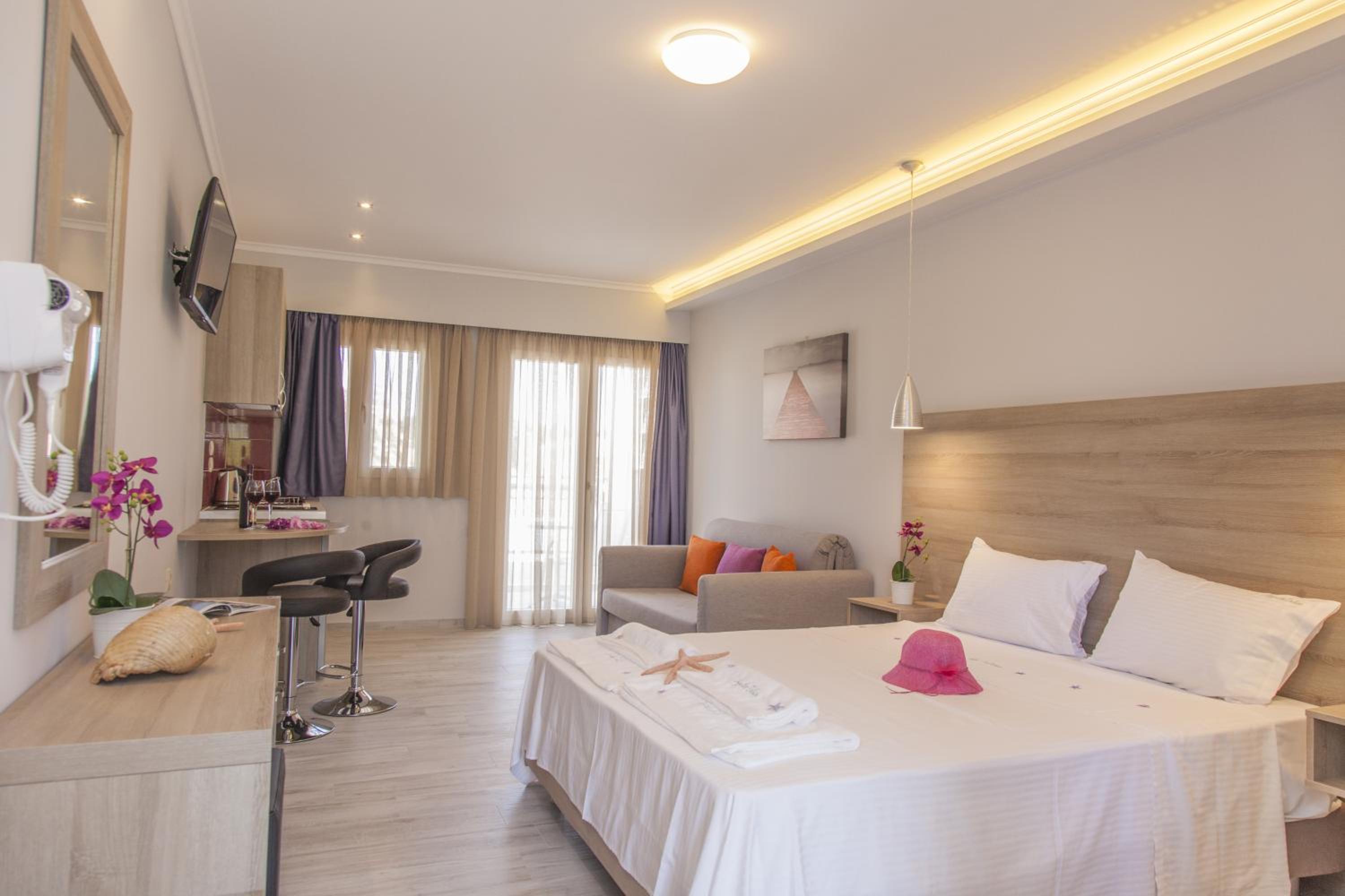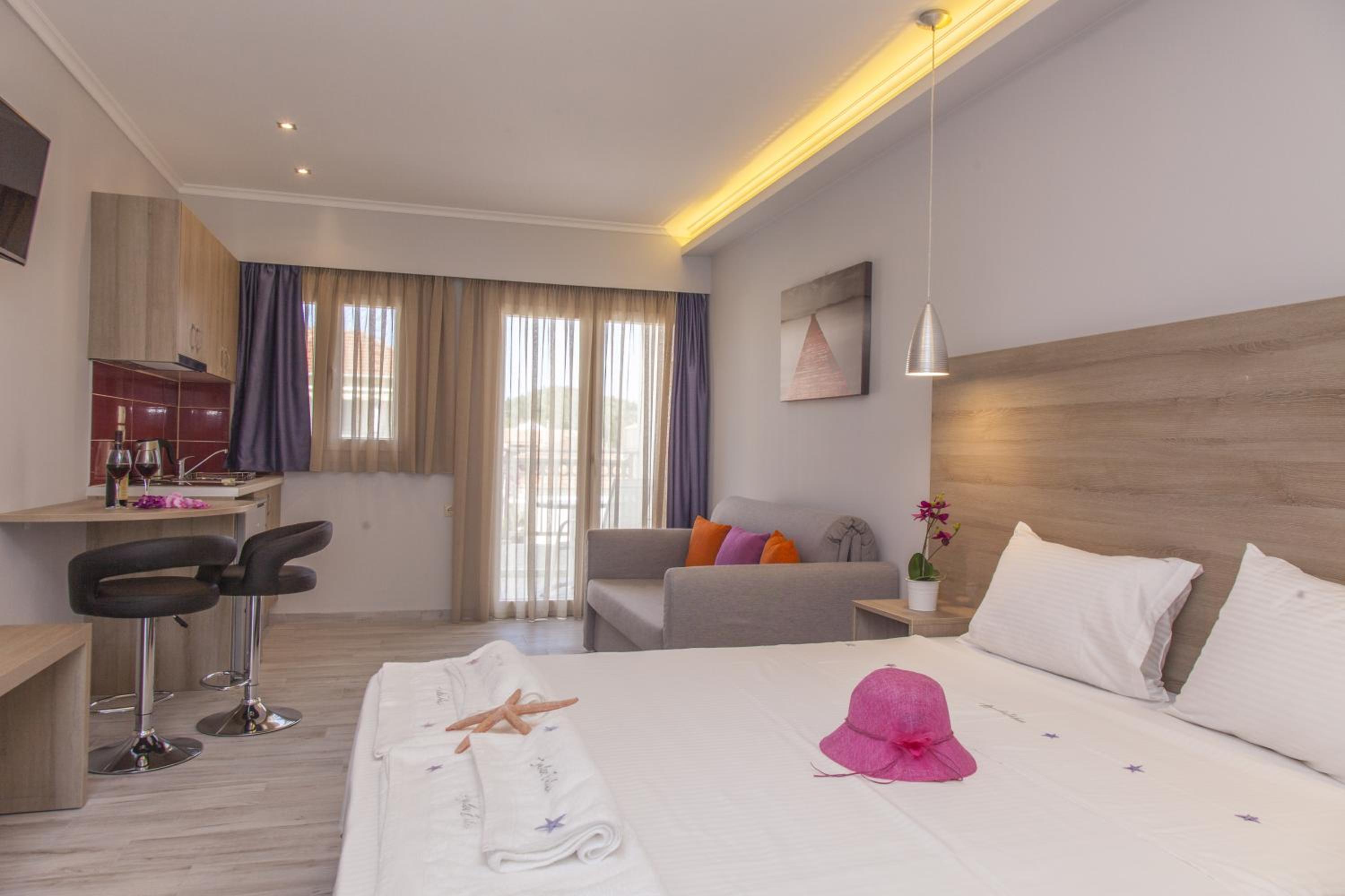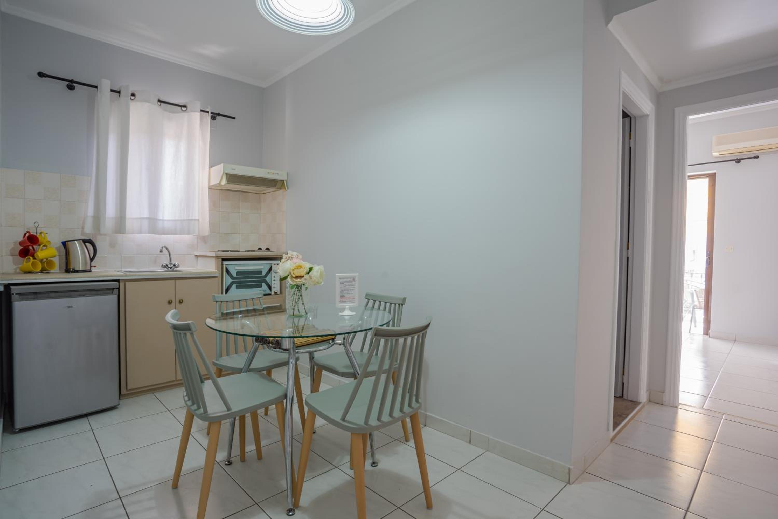 Luxe appartementen. Prachtig zwembad met bar met snacks. Geweldig ontbijt . Maar vooral de vriendelijke familiaire atmosfeer. Een plek waar je terug blijft komen