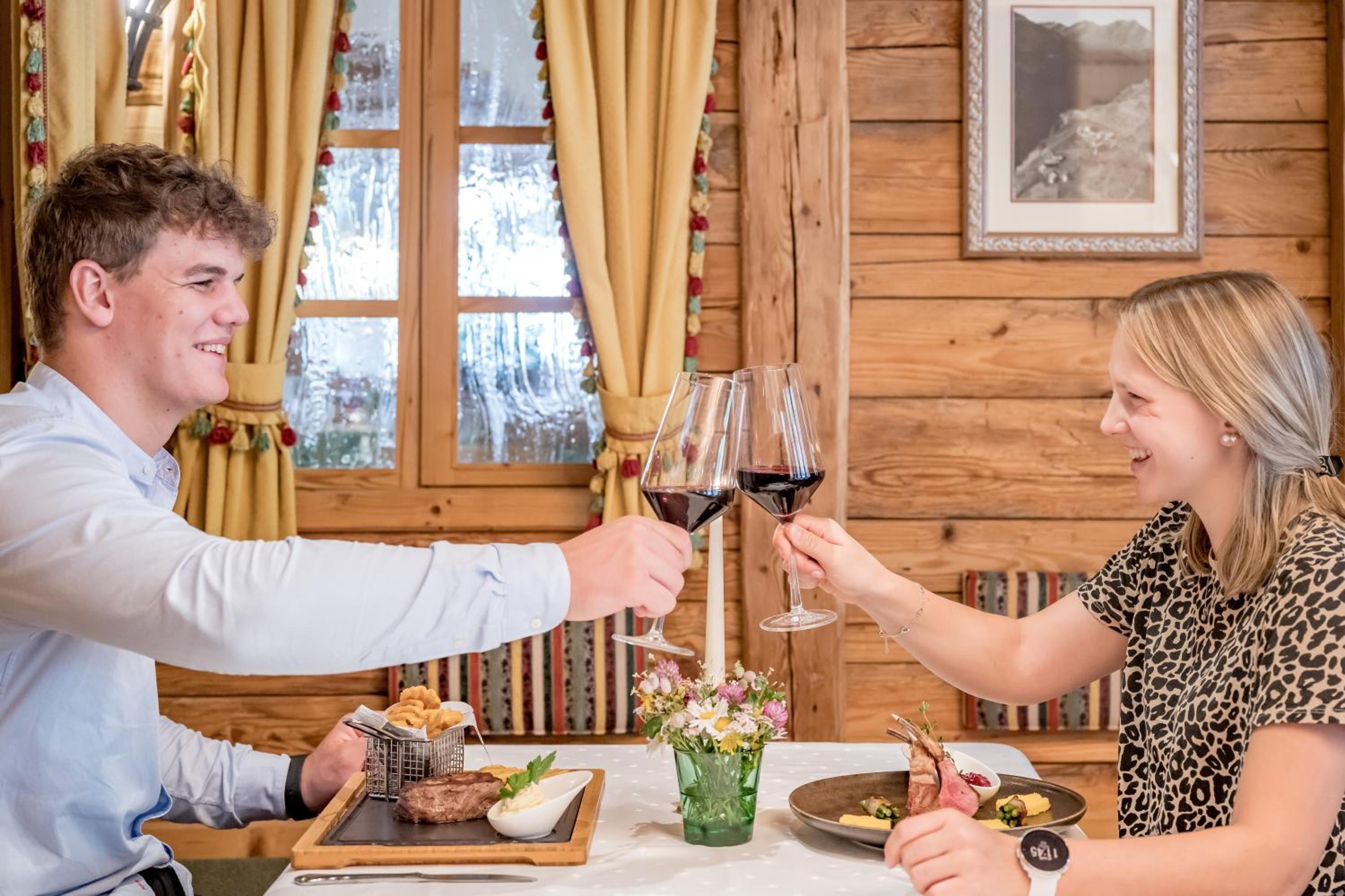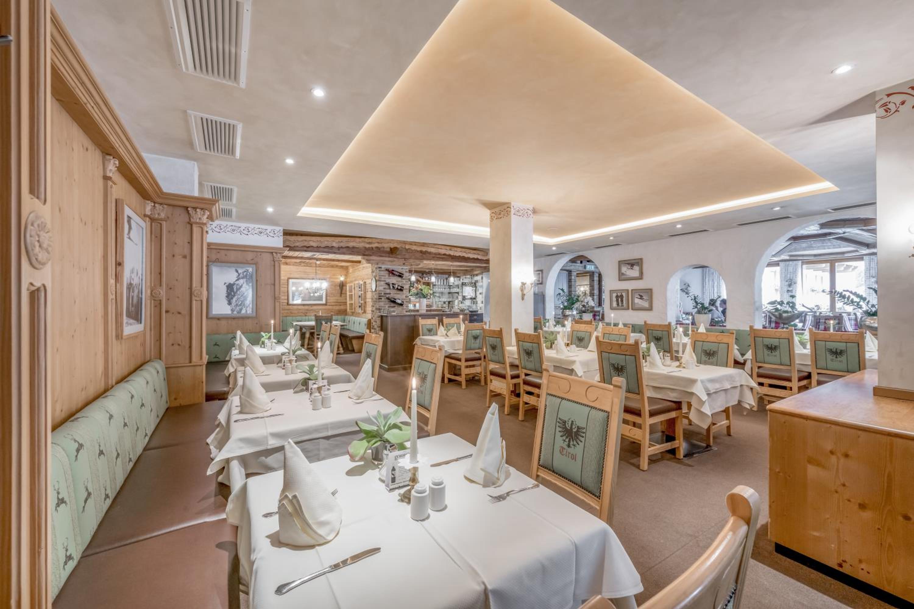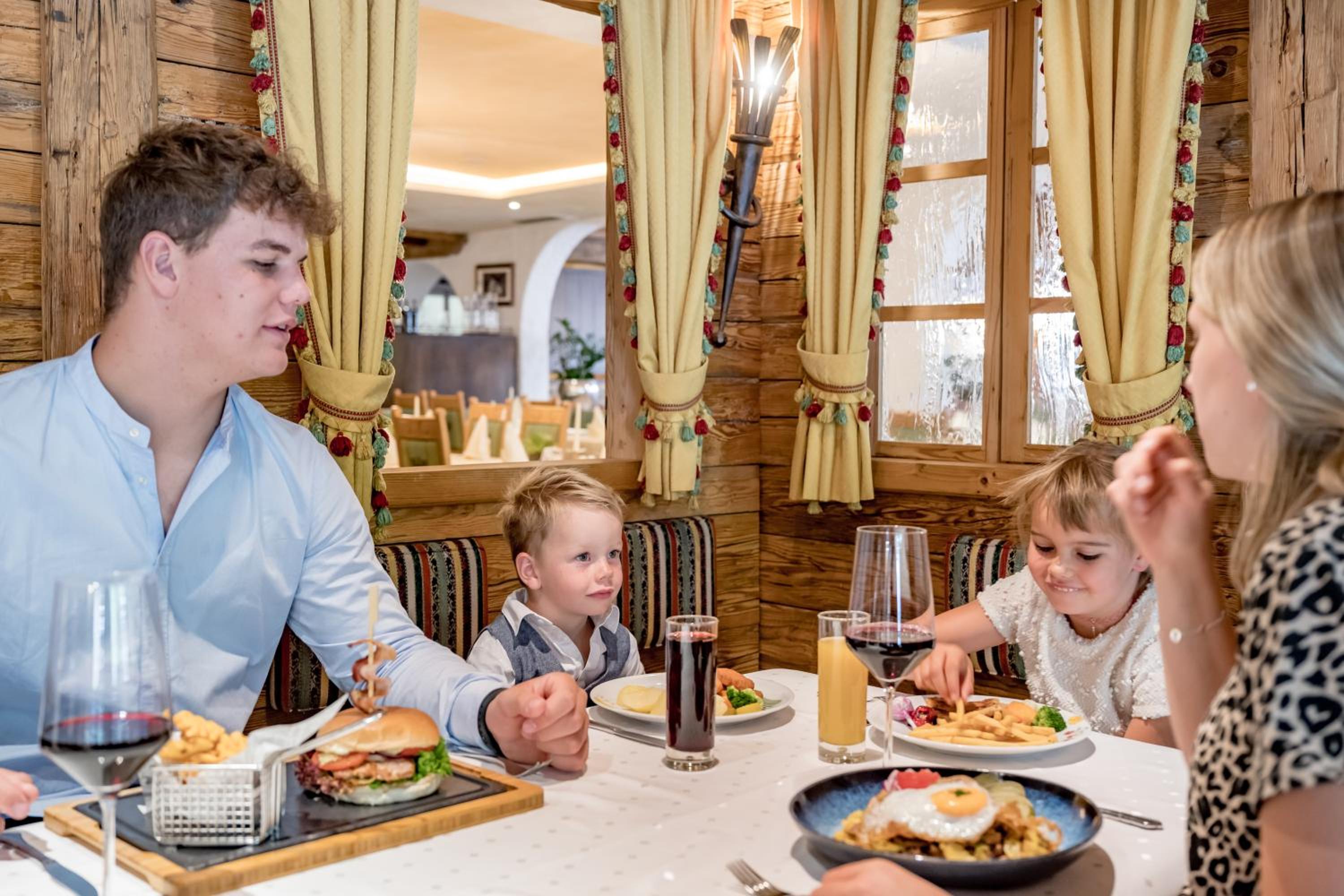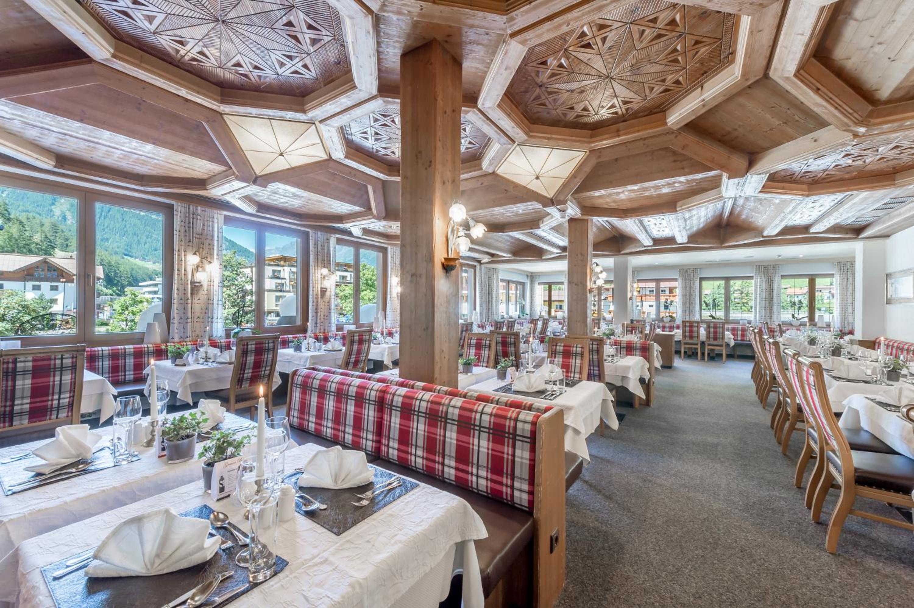 Indulge in Tyrolean and international cuisine at the hotel's restaurant, complemented by a lively cocktail bar. From hearty meals to refreshing drinks, guests can savor the flavors and unwind in a cozy atmosphere.
