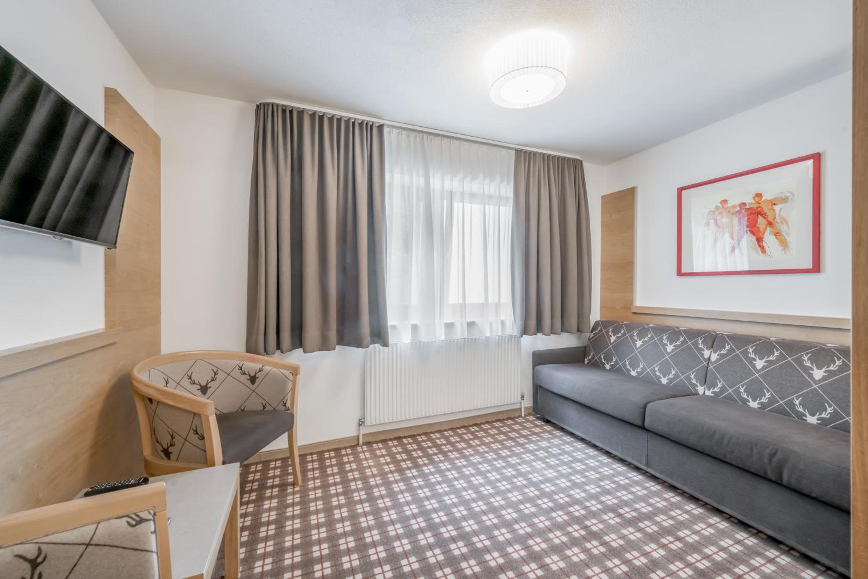 Each room features a private bathroom, cable TV, and a desk, with some offering picturesque mountain views from a balcony. After a day of activities, guests can unwind in the sauna, steam bath, or solarium, rejuvenating for the next mountain escapade.