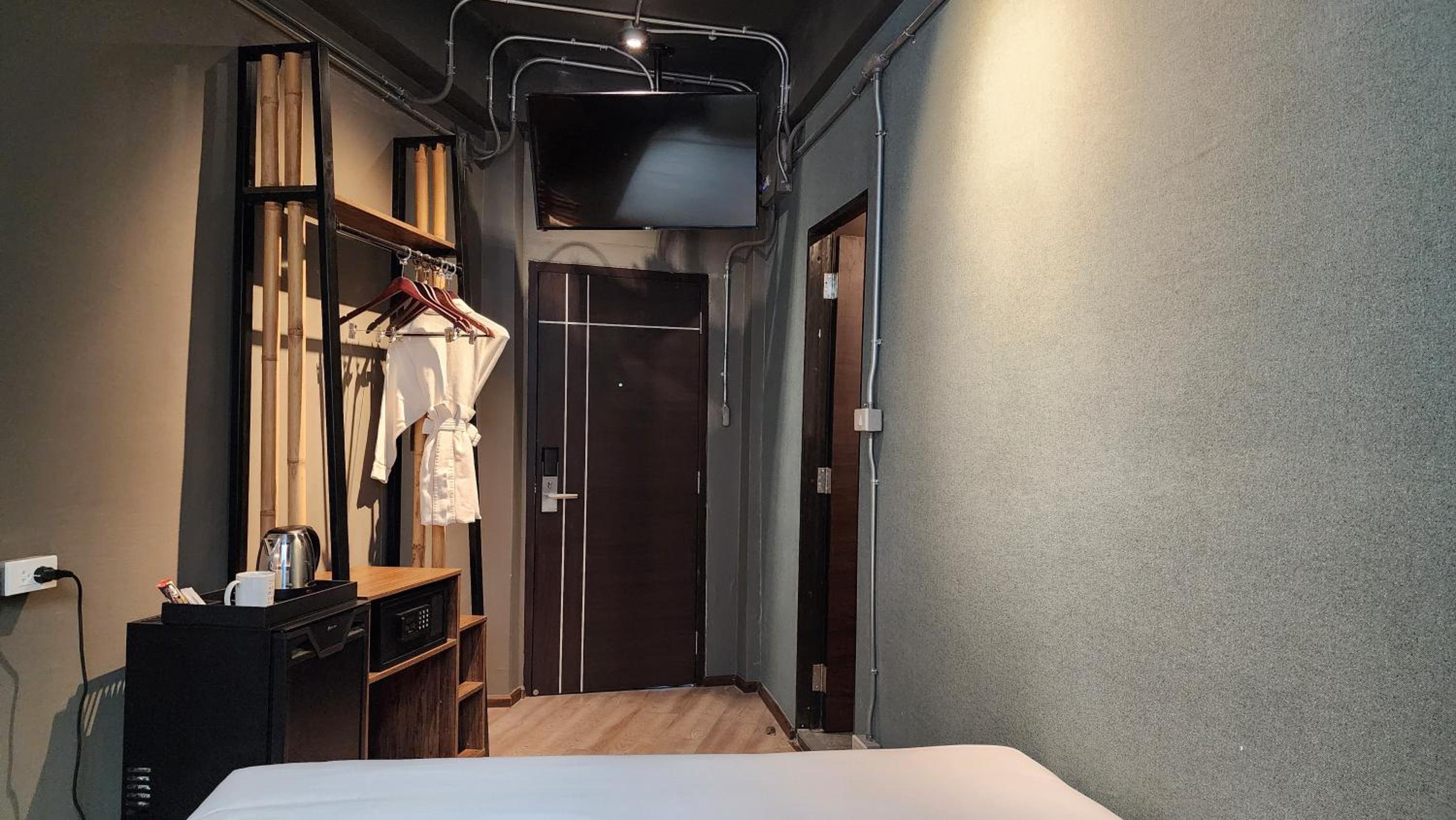 Bed is so comfortable, i sleep so well. Staffs are polite and helpful. They also provided simple self service breakfast and instant noodles. Location is good, next to the airport link. 4 minutes.to Marko supermarket by walk, 15-20 minutes to Central world by walk, and on the way there are some other shopping mall.