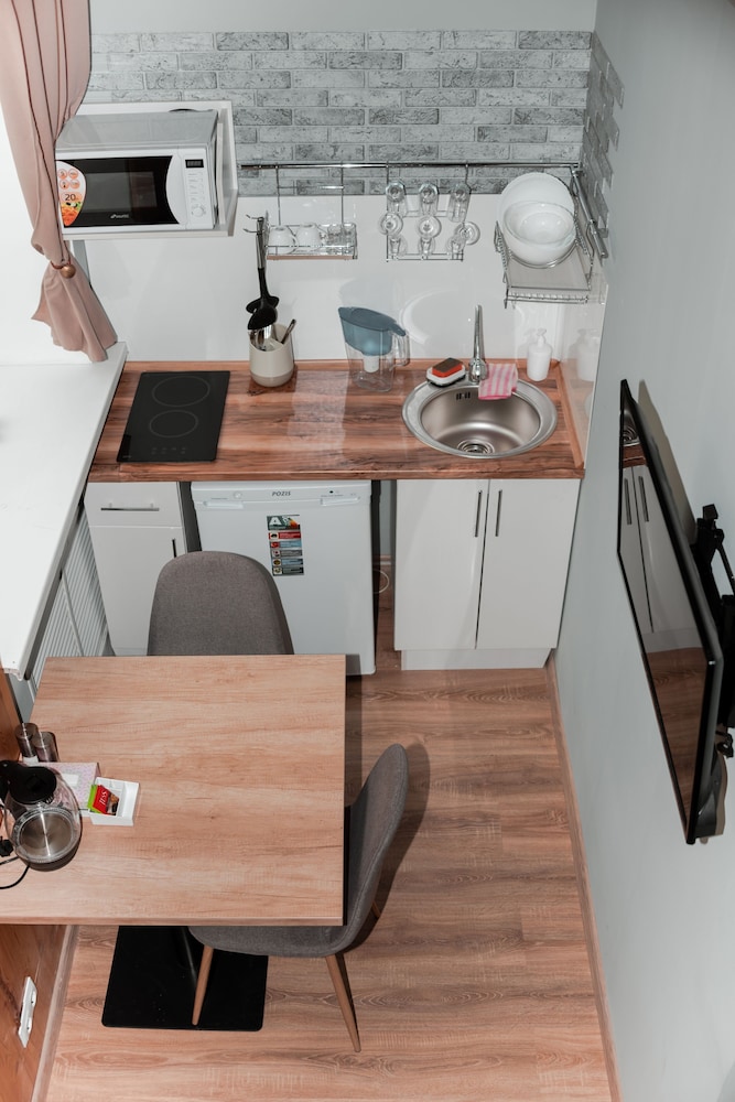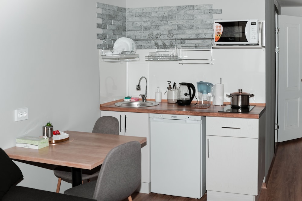 Relax in one of the 12 guestrooms with heated floors and LCD televisions. The kitchenettes are equipped with stovetops and microwaves, providing a cozy atmosphere for your stay.