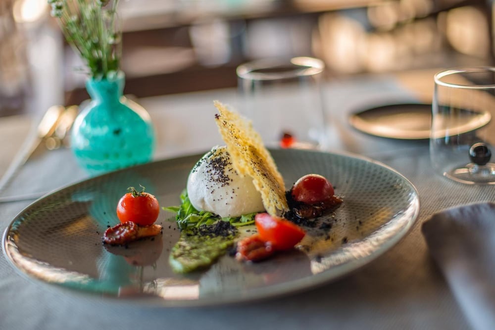 I cannot praise this hotel enough. The staff were amazing. They were gracious, courteous, helpful and kind. The room was immaculate. The breakfast was included (we had an omelette that was excellent). We had dinner at the attached restaurant, Tramonto, on our last night and it was an exquisite experience from start to finish. The restaurant was expensive but so top class in every way that it was worth every euro!!. Service was white glove and perfect. All four of us were impressed with the quality and presentation of our respective dinners. Delicious and beautiful food. My sea bass was the best I have ever had.