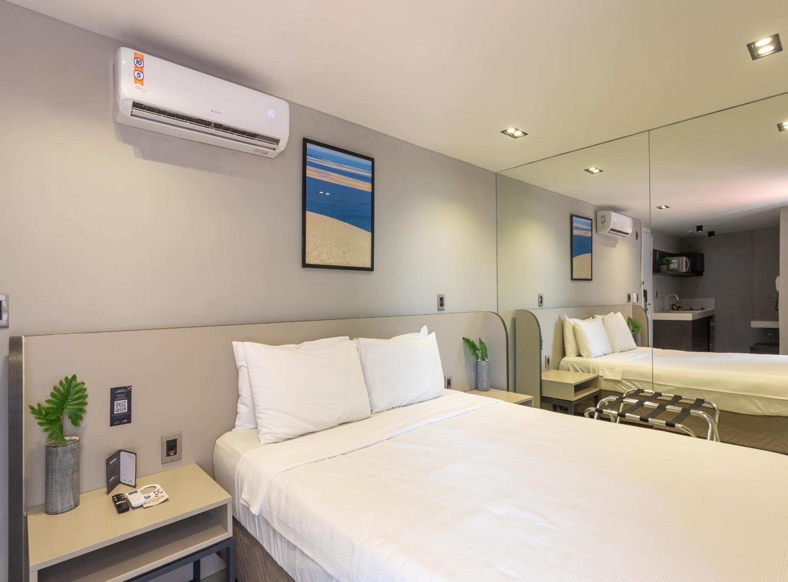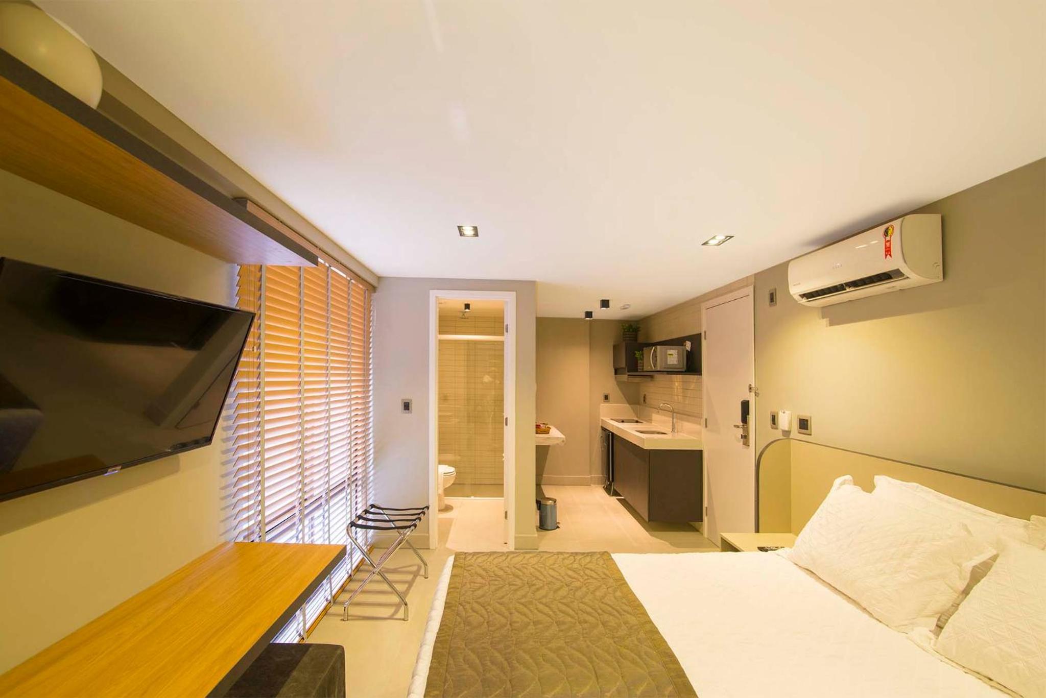 O café da manhã deixou muito a desejar para um hotel 4 estrelas, os pães eram velhos e não havia pão integral, bolachas e pães que ninguém comia. As frutas já cortadas eram reexpostas no outro dia, mesmo fermentadas. Até reclamei, mas o funcionário disse que era assim mesmo, assimpático. Os sucos também, eram medíocres. No carnaval dois dias ficamos sem a tapioca feita na hora,que era única coisa que podíamos comer. Decepção pelo preço da diária, mais de 600 reais. A cozinha no quarto não podíamos utlilizar, pois não havia utensílhos (panela, chaleira, nada) Propaganda enganosa.