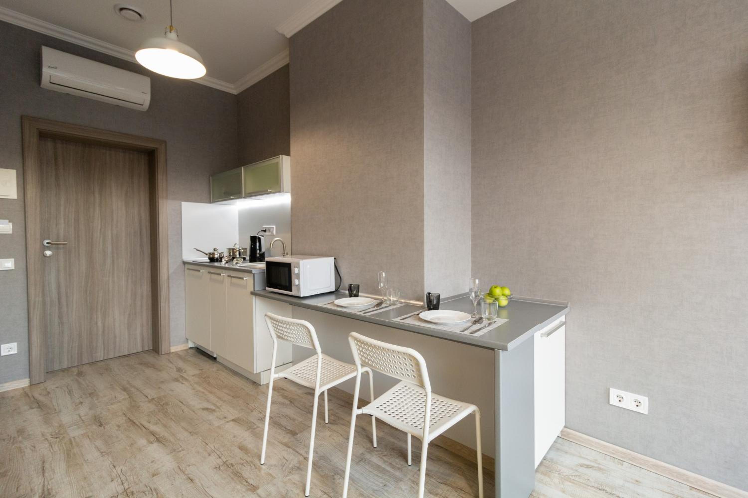 Choose from 18 well-equipped apartments or 8 cozy hotel rooms, all featuring modern amenities such as air conditioning, kitchen facilities, and complimentary WiFi, ensuring a comfortable stay for every guest.
