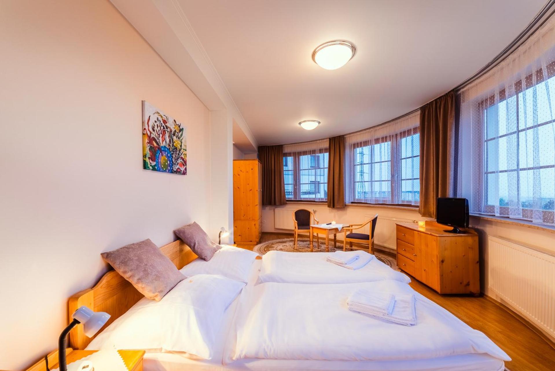 Pokoj neodpovídal nabídce. Dvoupokojový místo jednopokojového, televize v druhé místnosti. Výhled na silnici místo na Brno. Strašný hluk od dopravy, to mi za ty peníze vadilo.