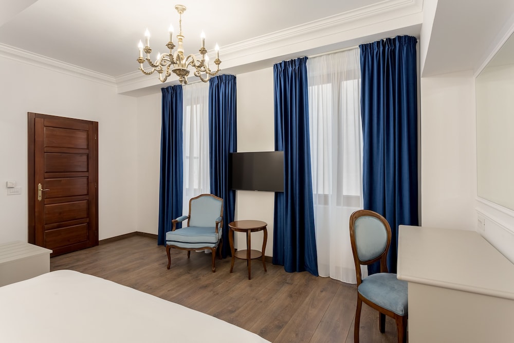 The hotel is the old home of a famous Romanian family. So the rooms are big and the ceilings are high...unusual for Europe. The included breakfast was very good. The staff were very friendly despite some language uncertainty. The hotel is located not far from the old town in an area that appears to being redeveloped. We had a great stay.