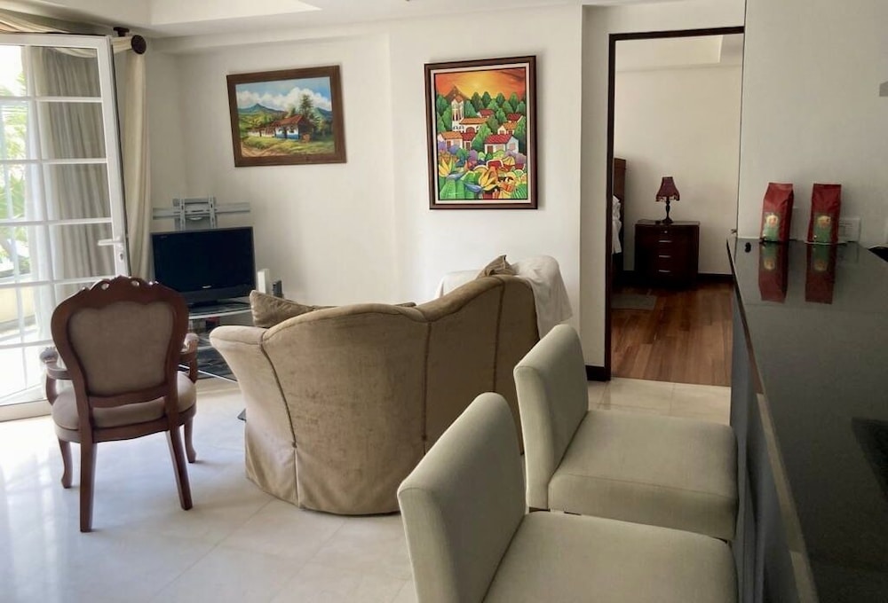 Make yourself comfortable in this individually decorated apartment, featuring a kitchen with a refrigerator and a microwave. There's a private furnished balcony. A 32-inch flat-screen television with cable programming provides entertainment, while complimentary wireless internet access keeps you connected. Conveniences include a safe and a separate sitting area.