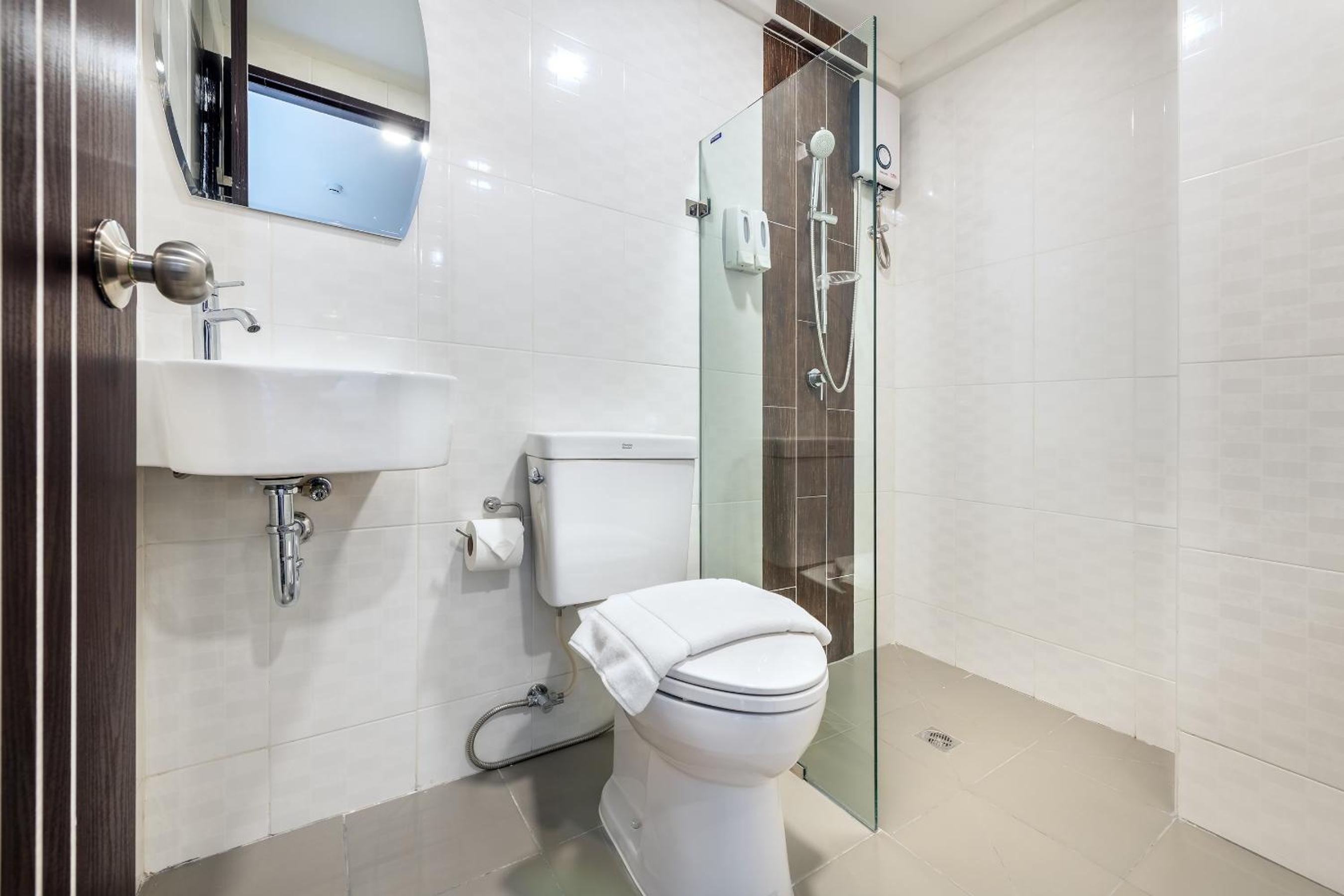 Unwind in our cozy air-conditioned rooms featuring modern amenities, including a flat-screen TV and private bathroom essentials for an enjoyable stay.