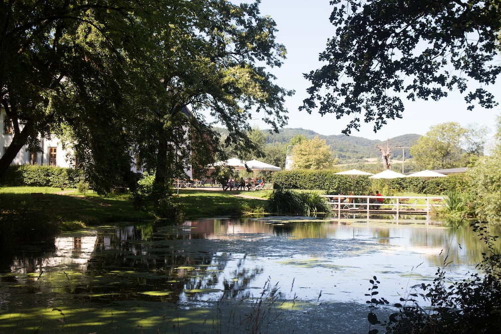To revel in lakeside tranquility near Creuzburg Castle, book your stay at Biohotel Stiftsgut Wilhelmsglücksbrunn today.