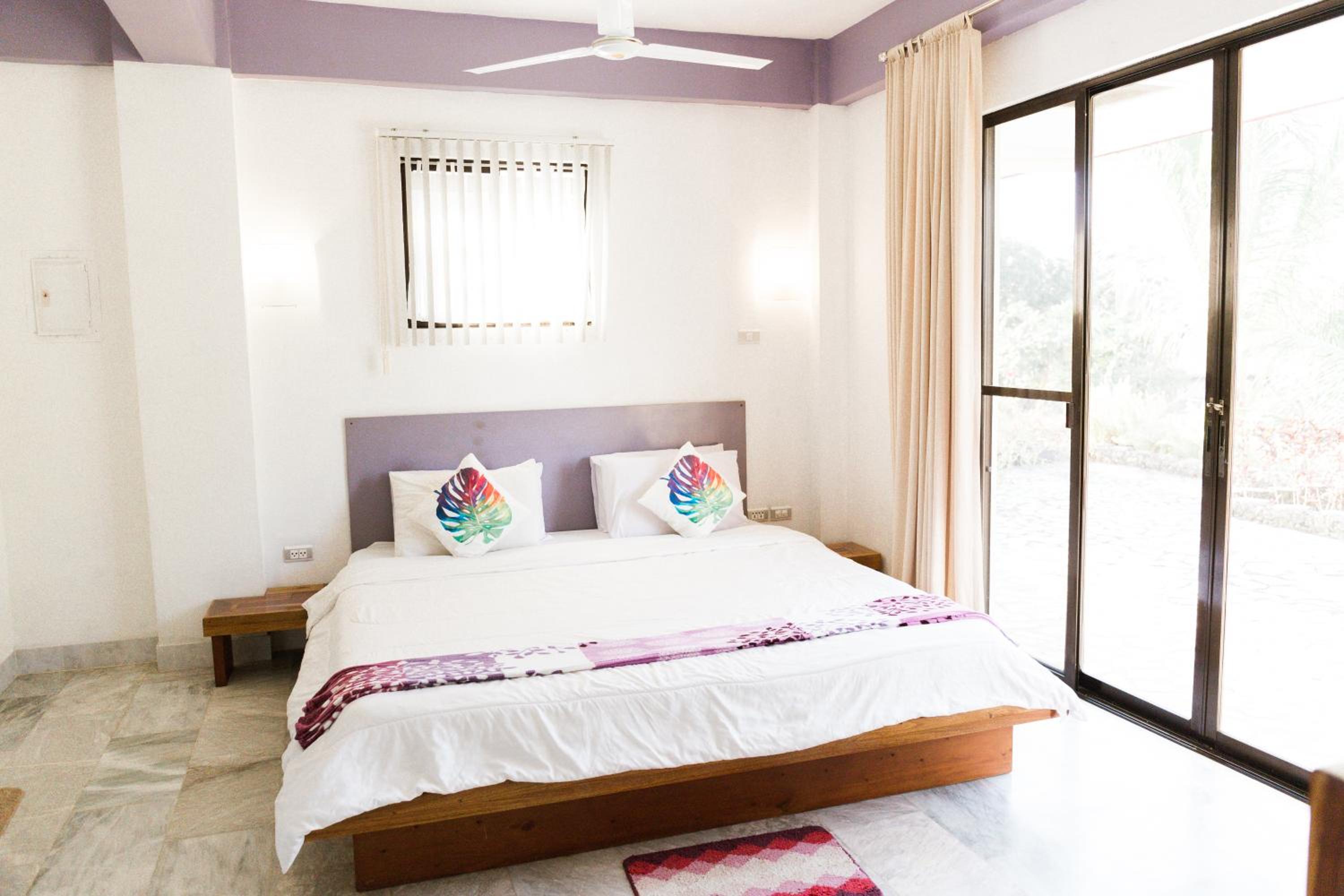 Food is easily available with Grab and comes quickly. Be aware that the little cat on site demands a substantial fraction of your dinner.