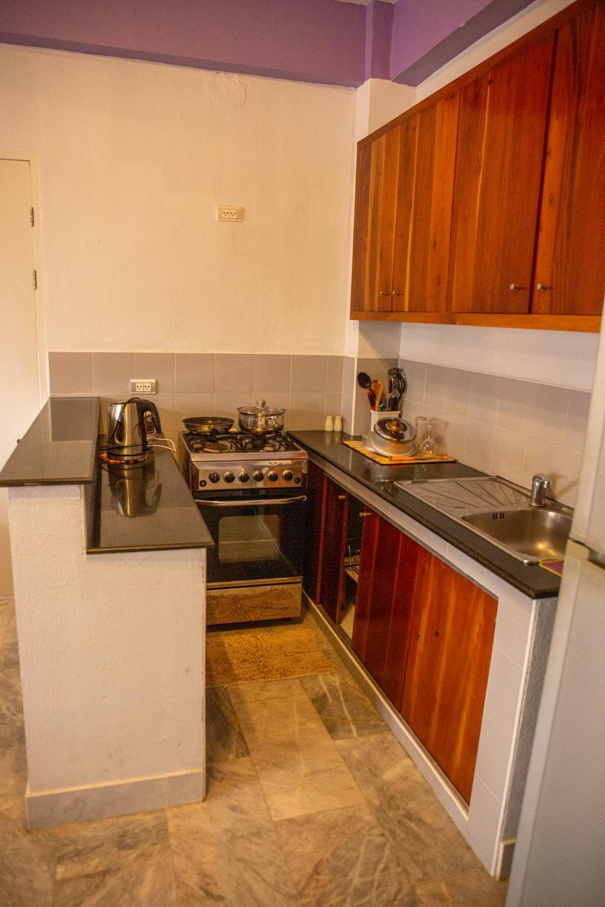 The fully equipped kitchen and fridge made it convenient for me to prepare my own meals.
