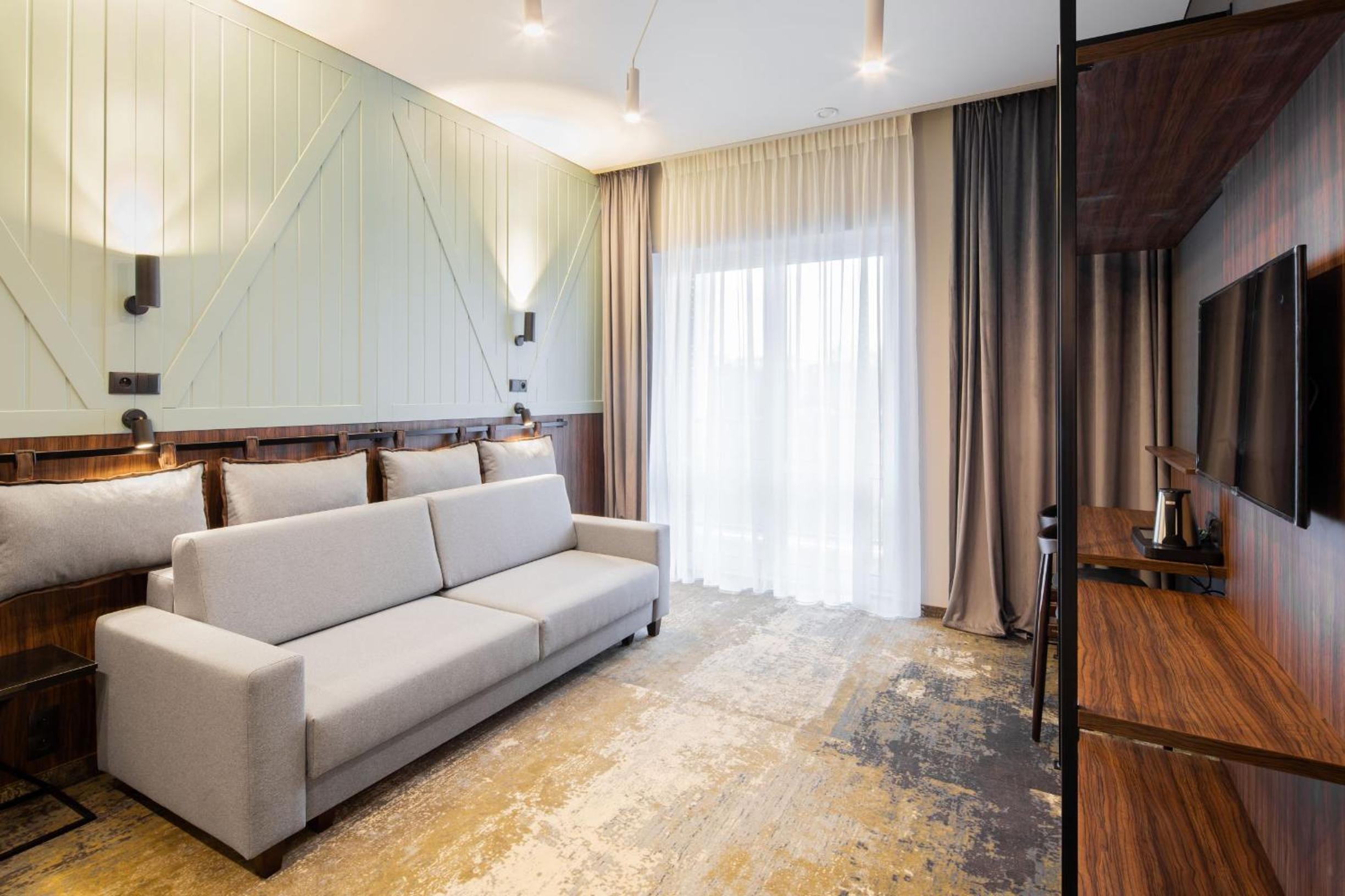 Unwind in the hotel's sauna or enjoy a drink at the bar. Guests can also take advantage of the terrace and shared lounge for a cozy evening.