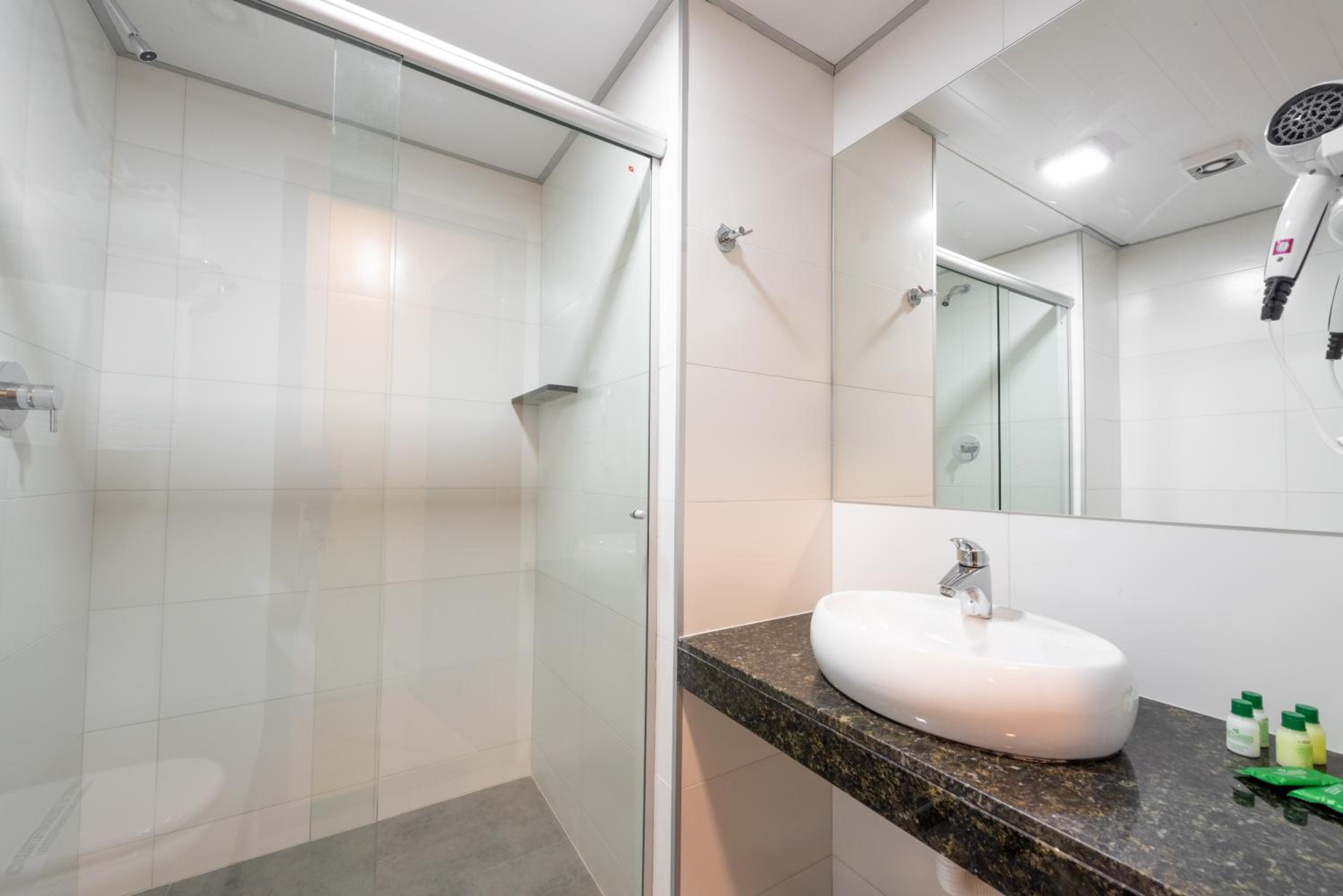 Bom , acho que a opção de ter no banheiro o shampoo e condicionador e uma touca descartavel é importantissimo ! aquela papeleira de papel higienico ? aquilo é muito ruim ! kkkkk
