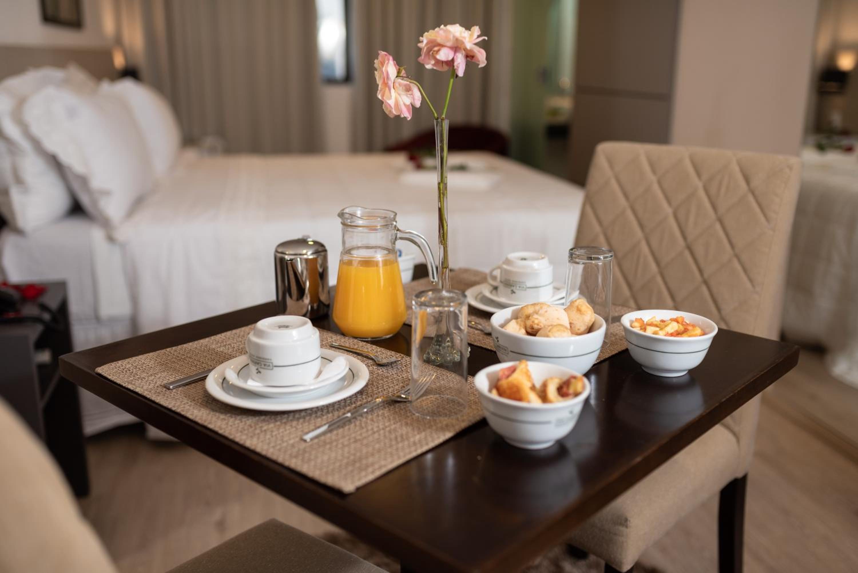 Conforto do quarto e café da manhã muito bem servido.