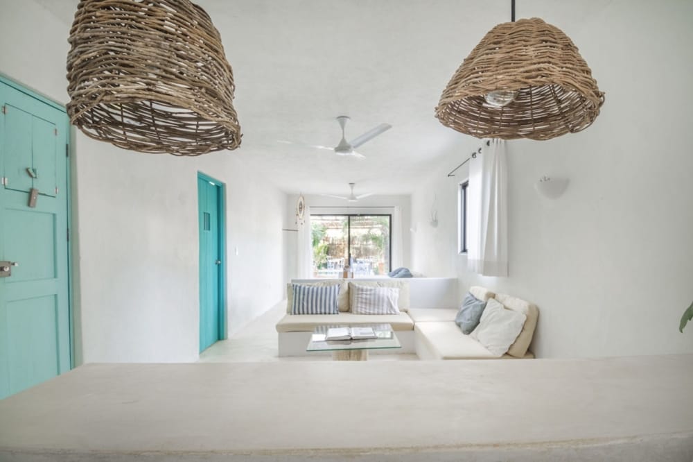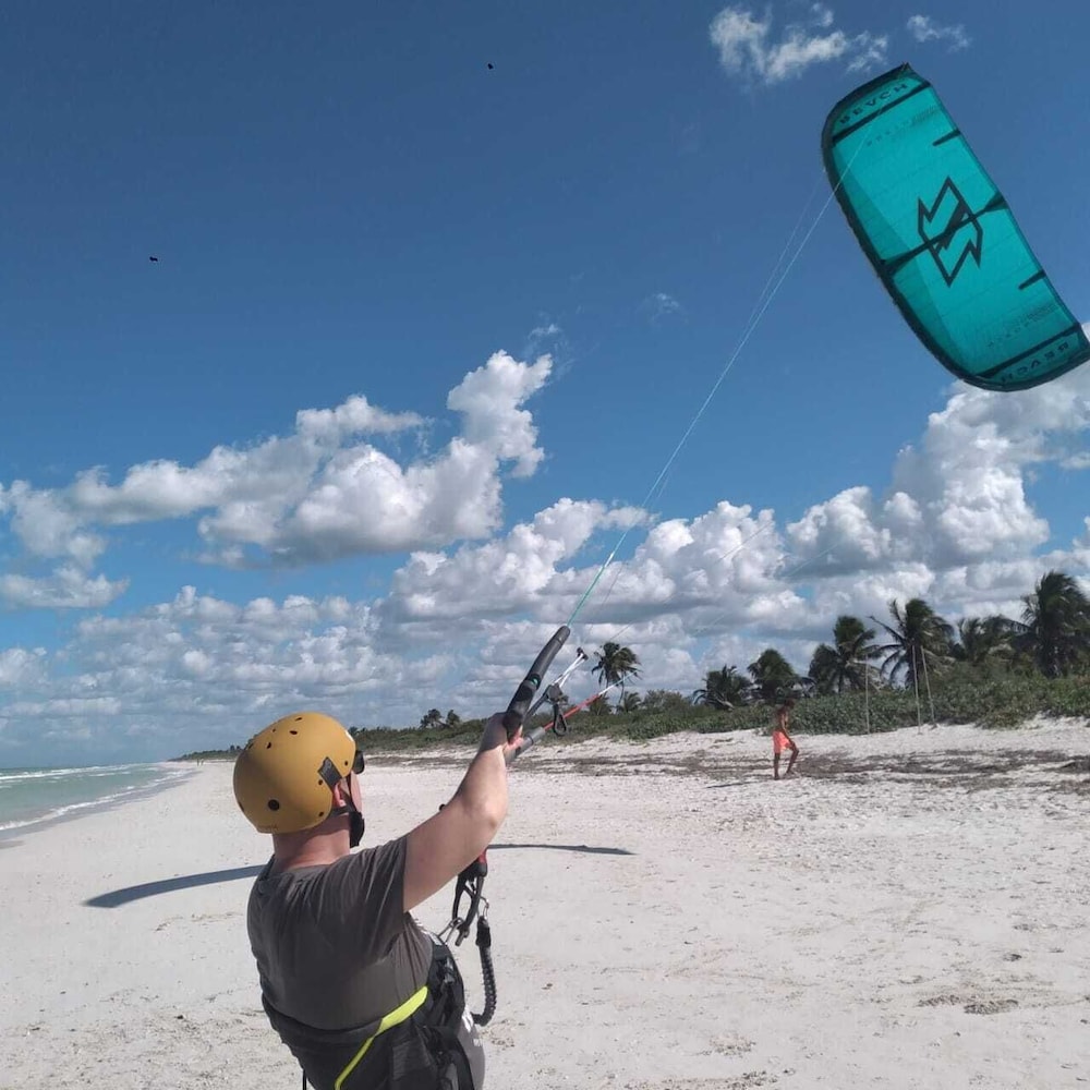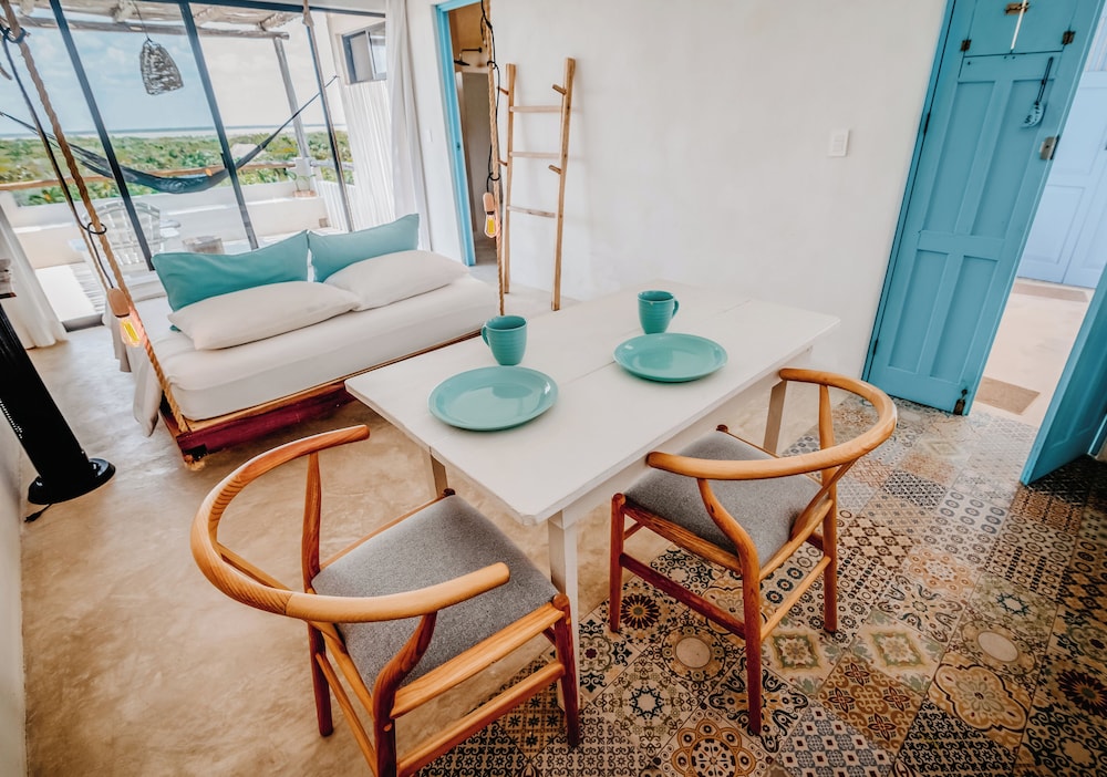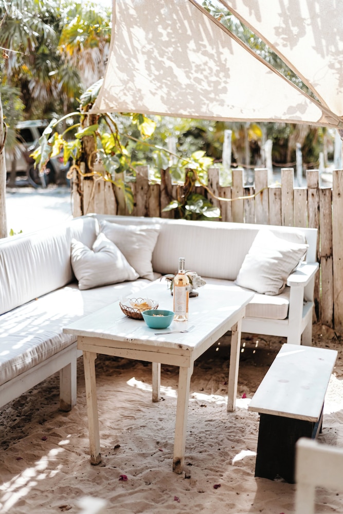 Solo recomendaría poner ventiladores en el comedor pues en la mañana pega mucho el sol, y es incomodo tomar el desayuno por tanto calor y mucho mosco. Poner velas de citronella o algo parecido. Y en la zona de la playa poner una lona que no sea translúcida, para que tape mejor el sol.