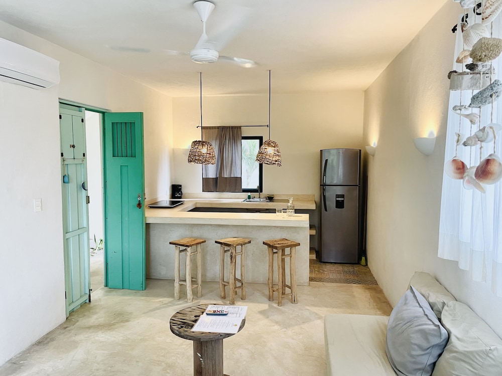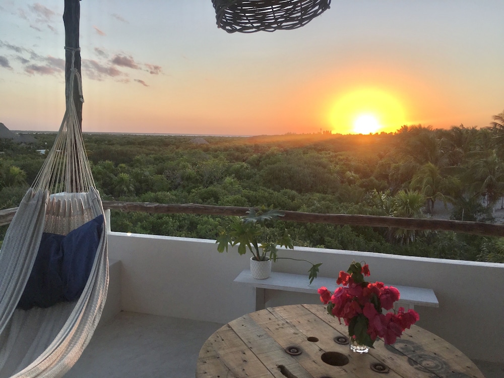 Being just out of the main area in a preserved nature reserve is exactly what I wanted. The hotel is designed to fit into this environment not take over it and the lay out of the space well thought out. I just found it strange the amenities of a “kitchen” was on paper only. Only one “kitchen” had a refrigerator and none of them had any utensils , plates, bowls, cooking equipment, etc. I saw multiple rooms to know this is fact. Our balcony had no furniture so all I could do was stand went I went outside for the beautiful view and to listen to the morning birds. I will go back but just with a better understanding of what to expect. Carrying a chair to the beach is no big deal especially when it’s right there and such an amazing beach with perfect sunsets and fine soft sand.