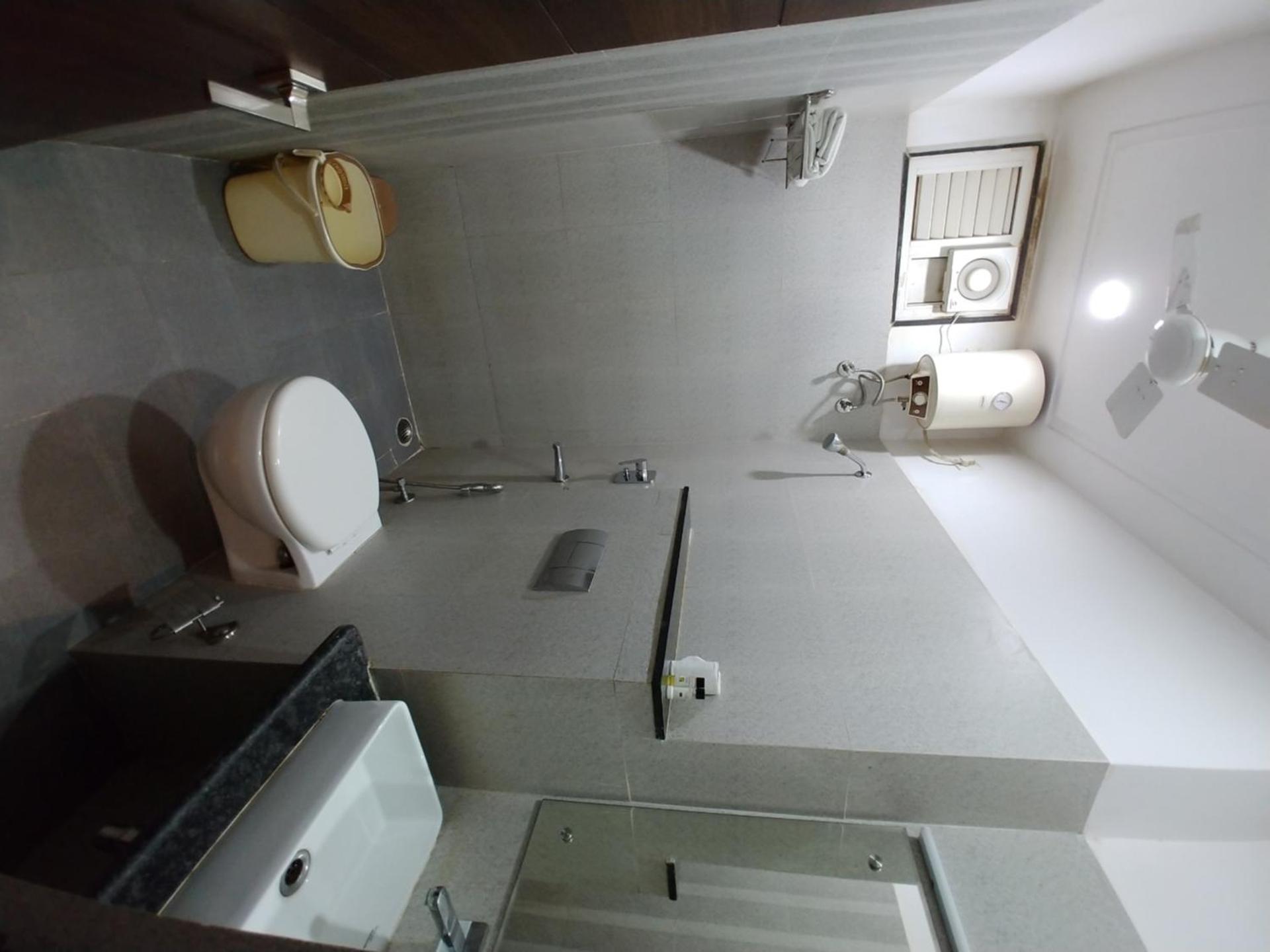 The only surprise thing is that there is a ceiling Fan in Bathroom...