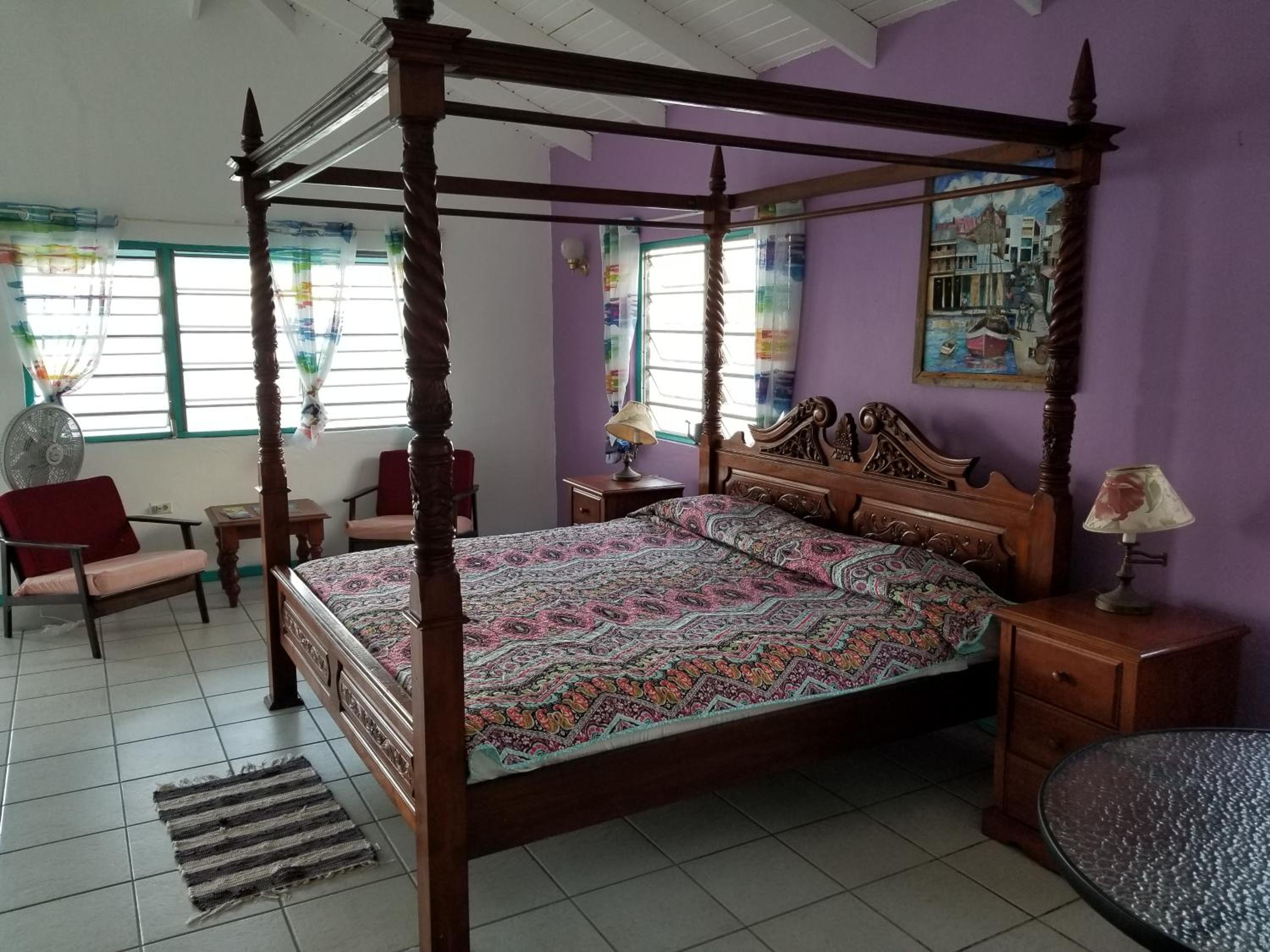 The room has a very comfortable bed. It’s a large room, with homely touches.Fantastic balcony with an amazing view of glorious sunsets. Shawn even put up a hammock for me! Good
