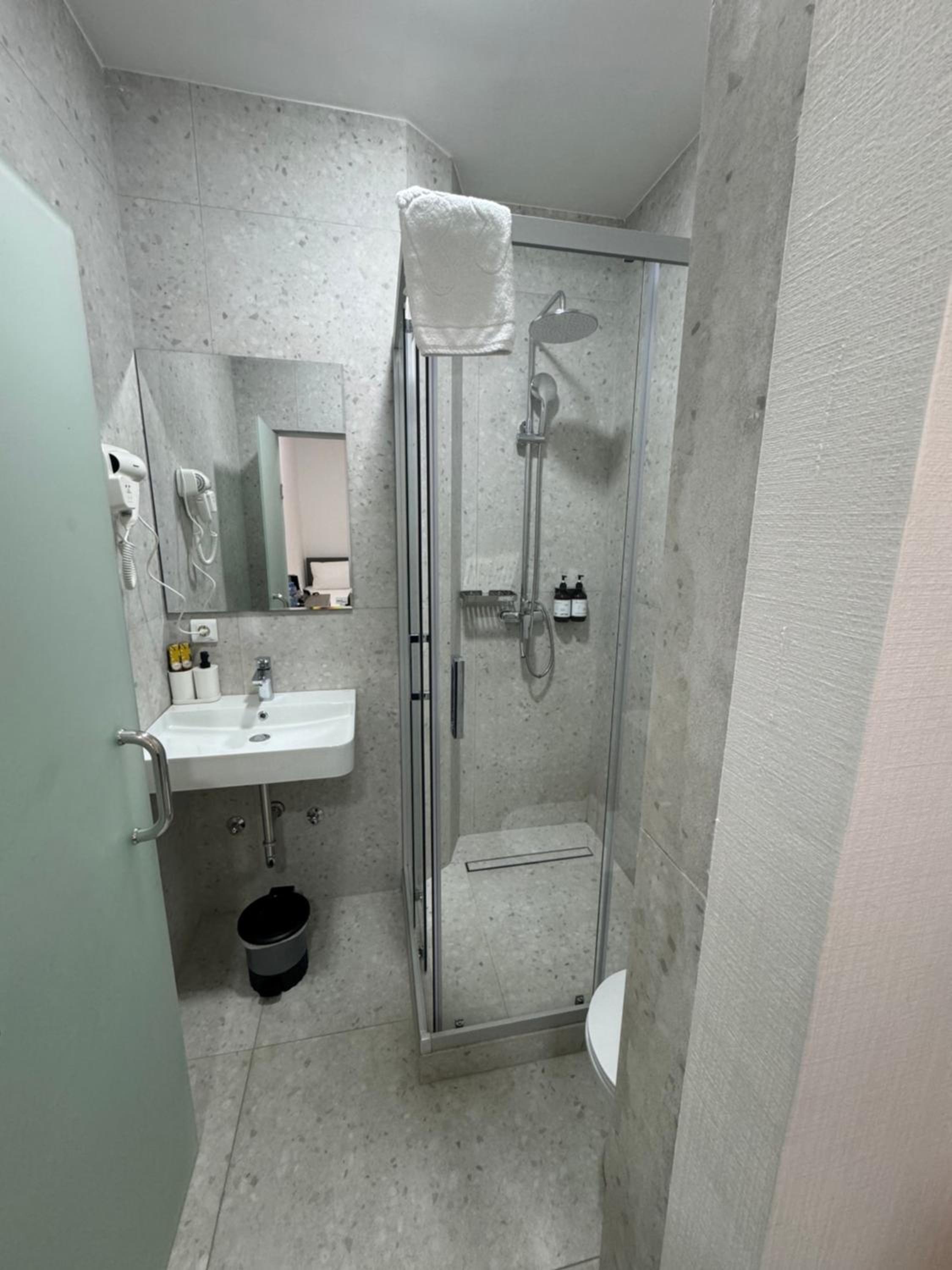 Hemen yanında sabah 4e kadar açık bir cafe restorant var. Benim icin oldukça iyiydi. Is sonrası otele dönüp biraz dinlendikten sonra kafeye gitmek şahaneydi .. Right next door there's a cafe/restaurant open until 4 am. That was great for me. Going to the cafe after work, returning to the hotel and relaxing a bit was wonderful.