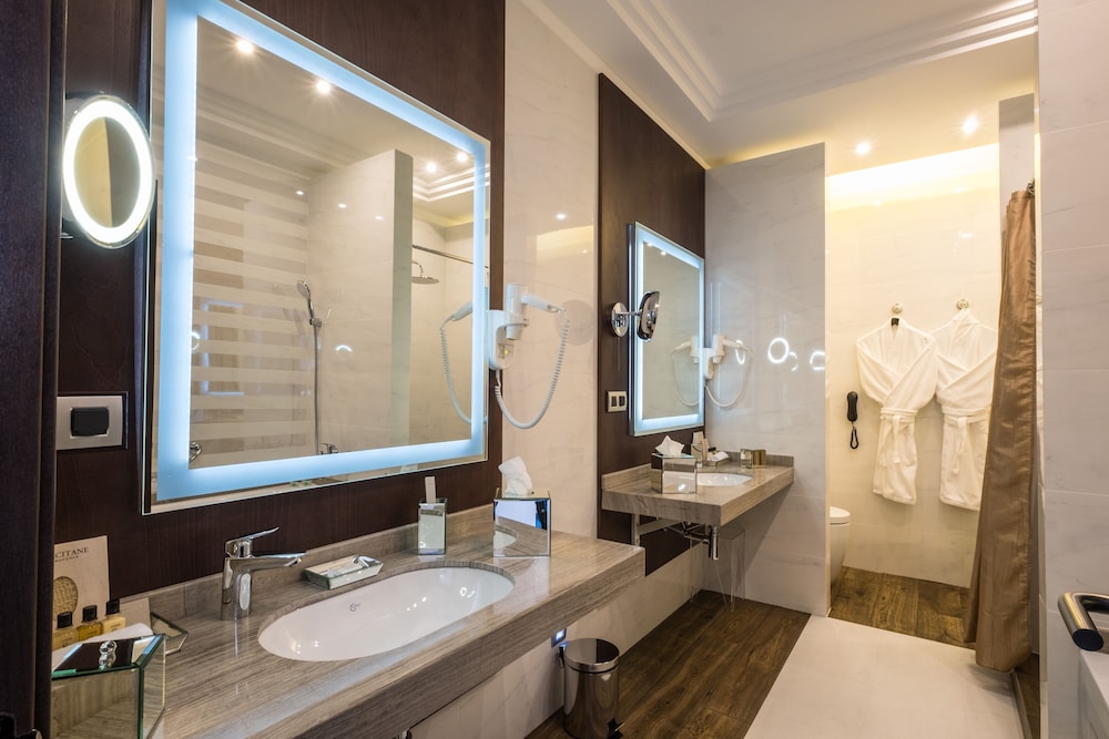 Relish in individually decorated guestrooms with heated floors and flat-screen TVs. Stay connected with complimentary Wi-Fi and make use of amenities like a business center and concierge services.