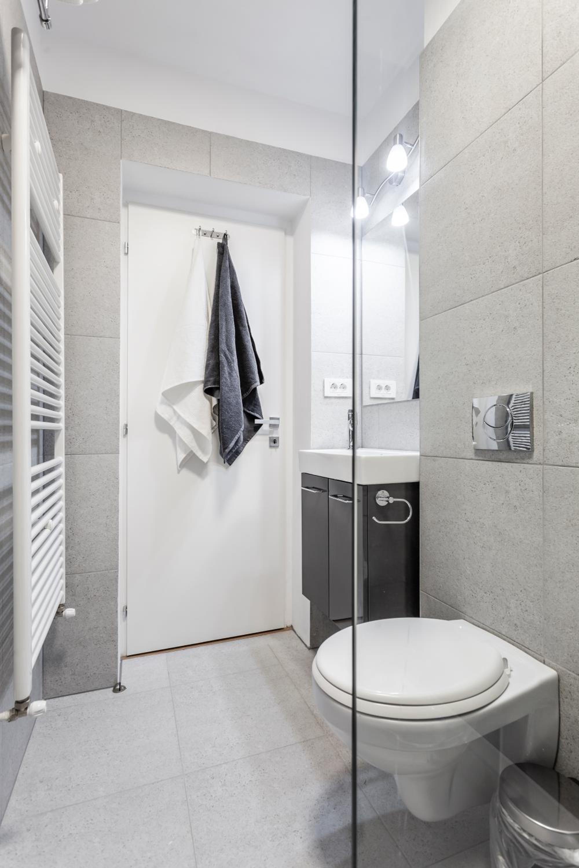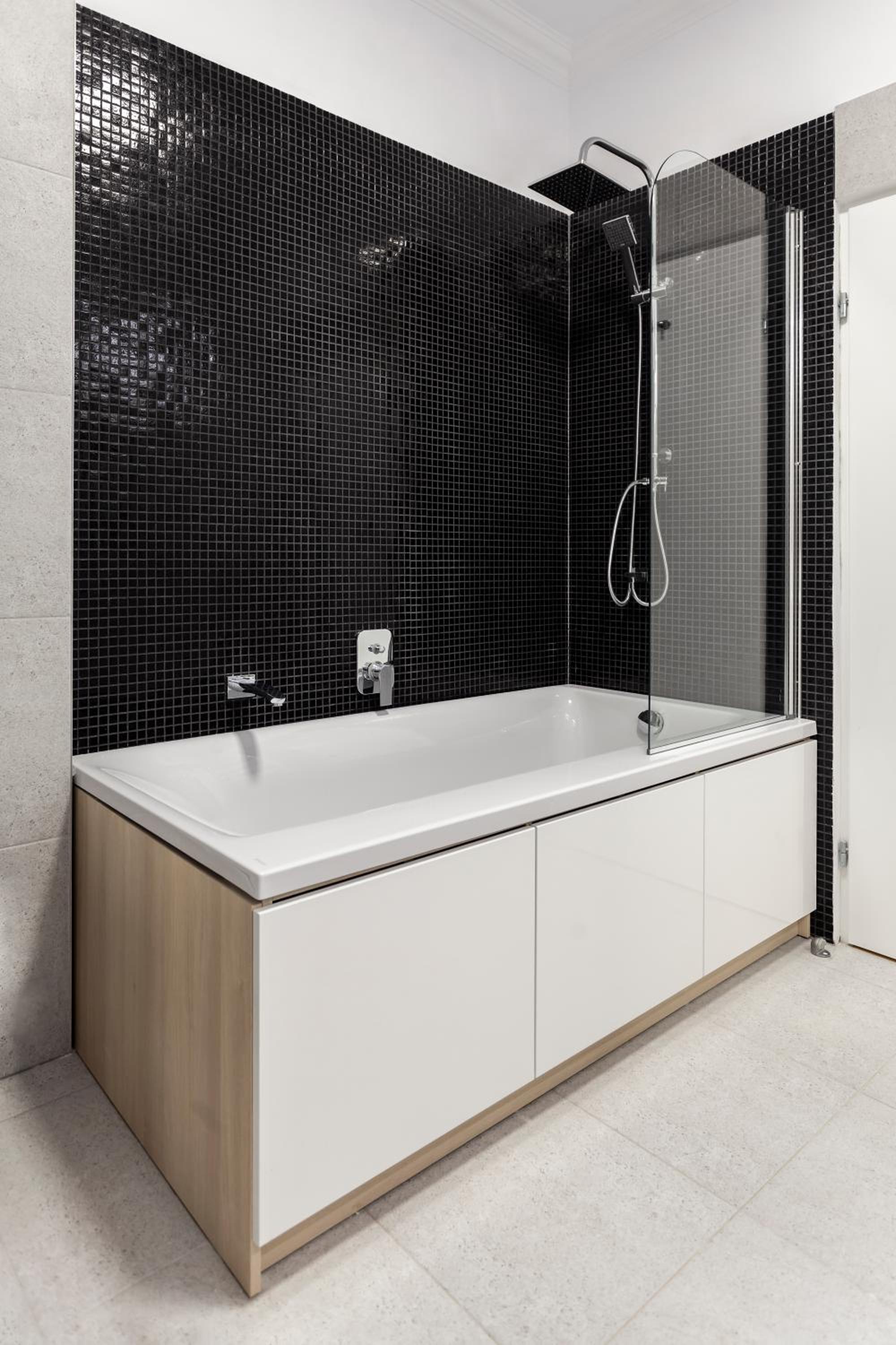 Modern and clean, has a balcony and bathtub. Quiet place.