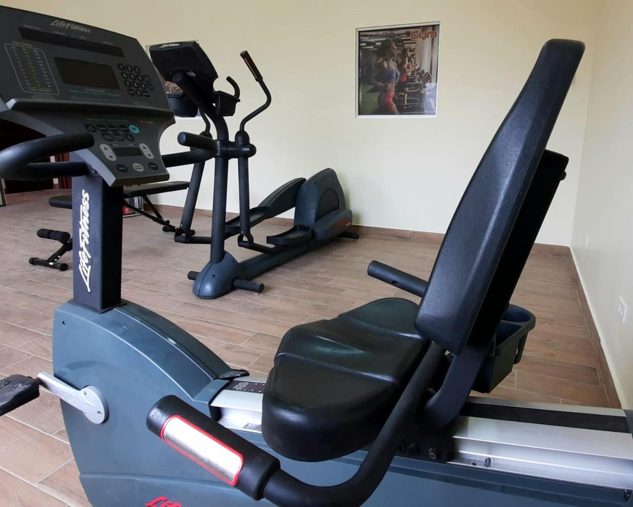El gimnasio tiene 2 caminadoras pero solo 1 funciona, igualmente la elíptica